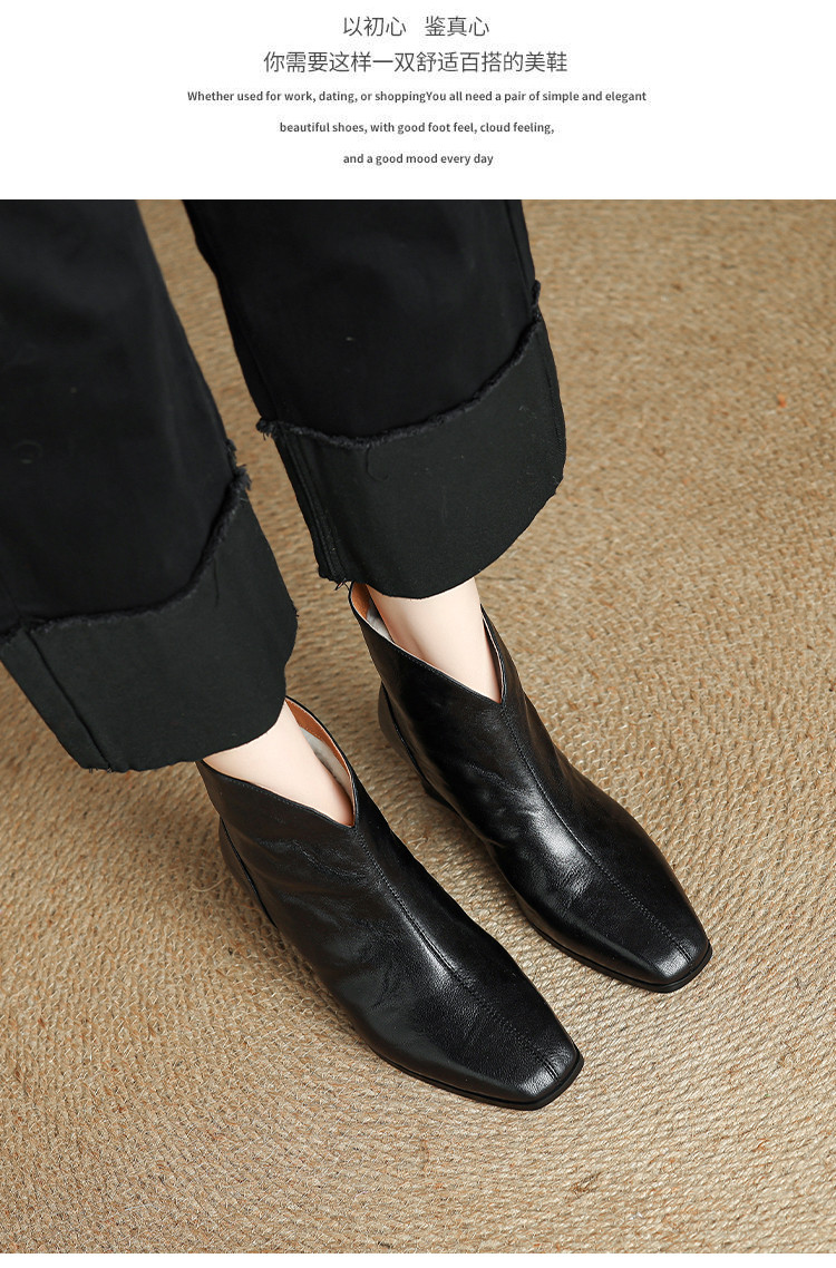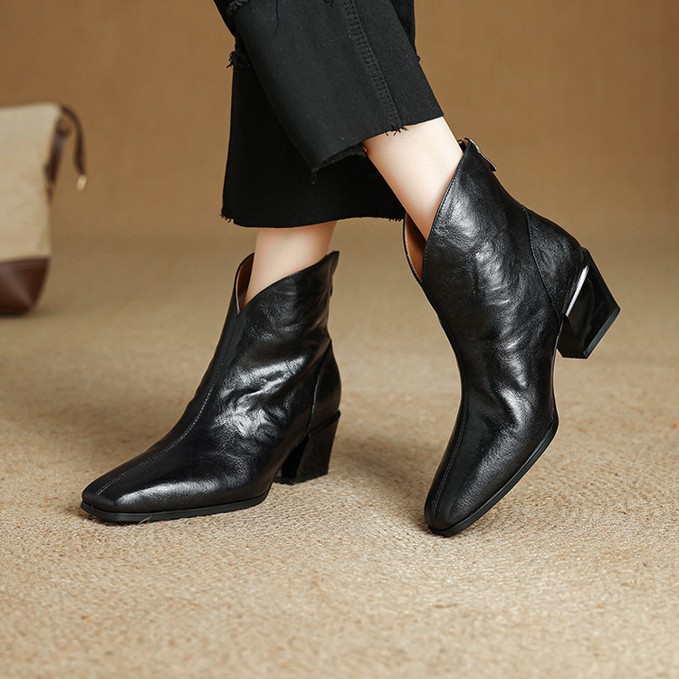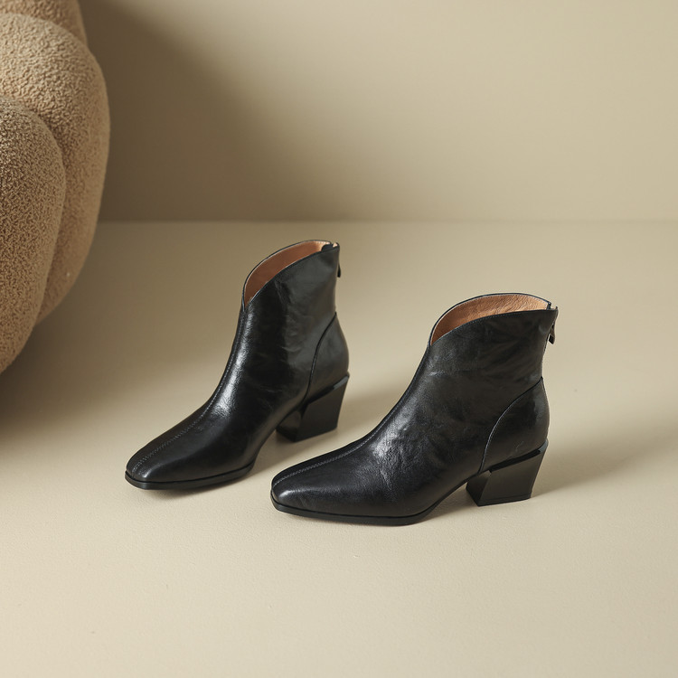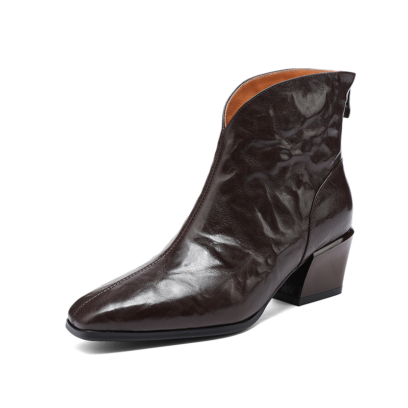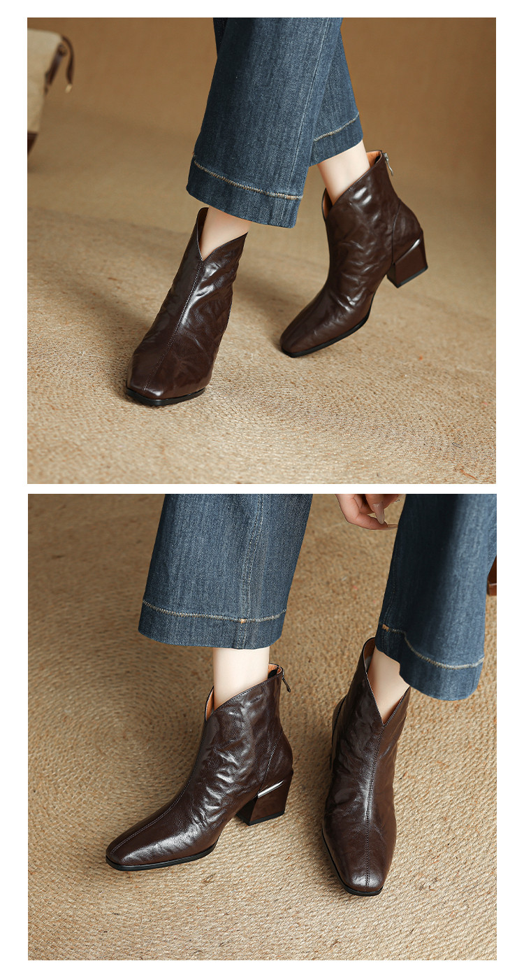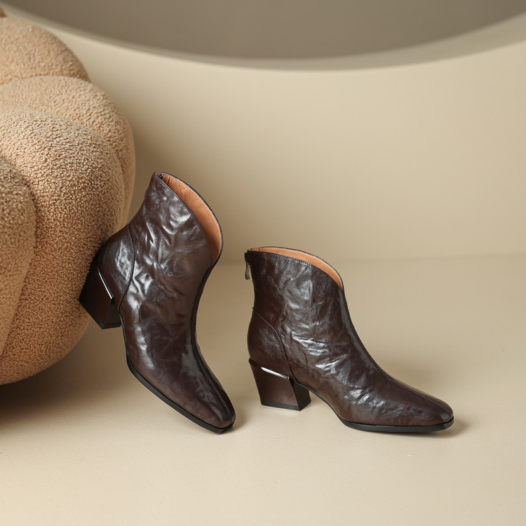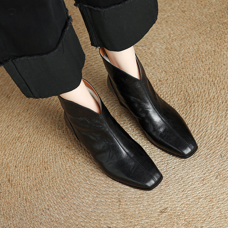 【预售5天】真皮真毛粗跟羊皮短靴女冬季羊羔毛雪地靴方头高跟瘦瘦靴保暖大棉鞋MLJ&C210