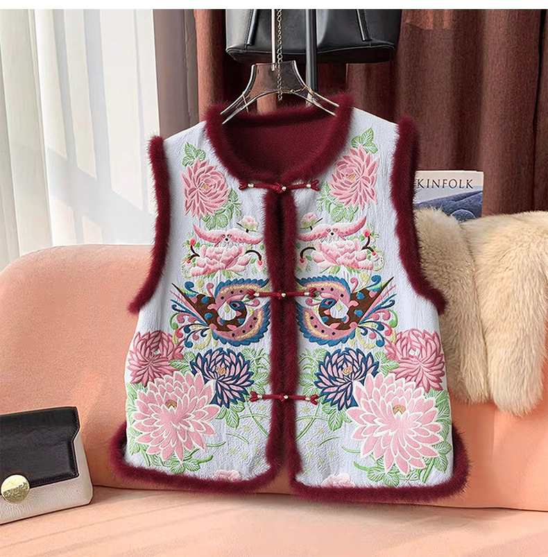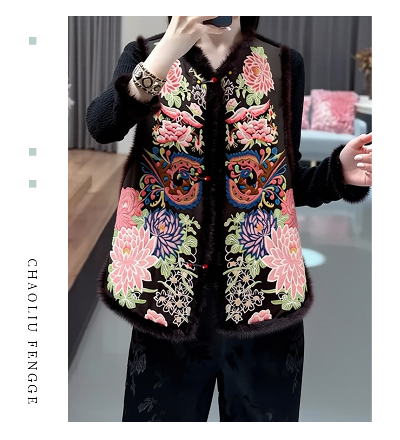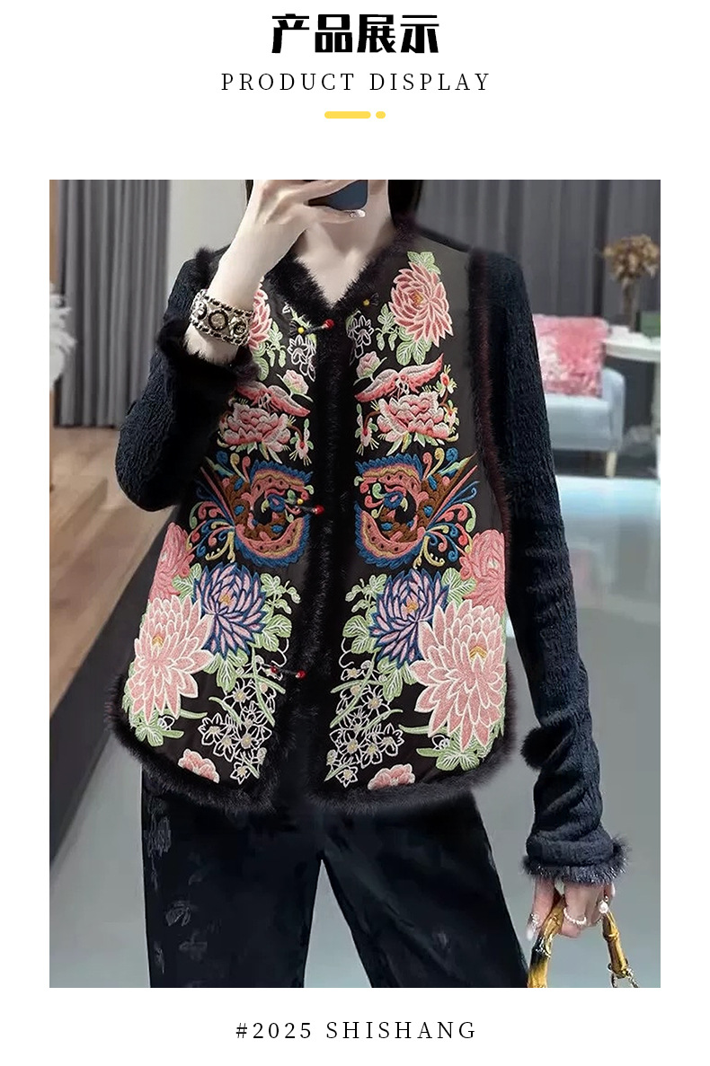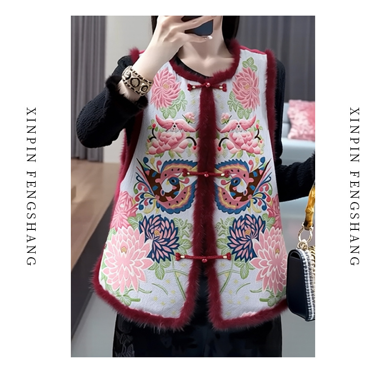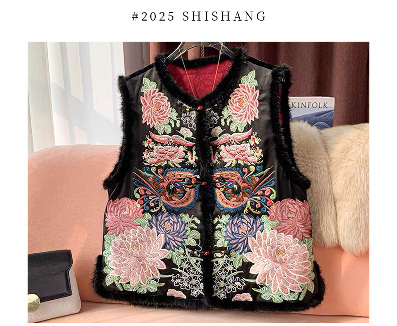 丁摩 醋酸新中式马甲棉服女秋冬款马夹重工国风刺绣背心夹棉外套5ZF-9678