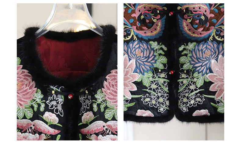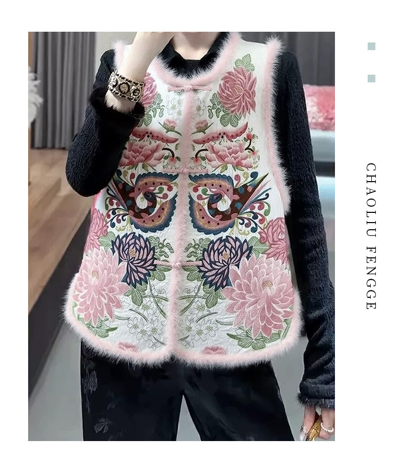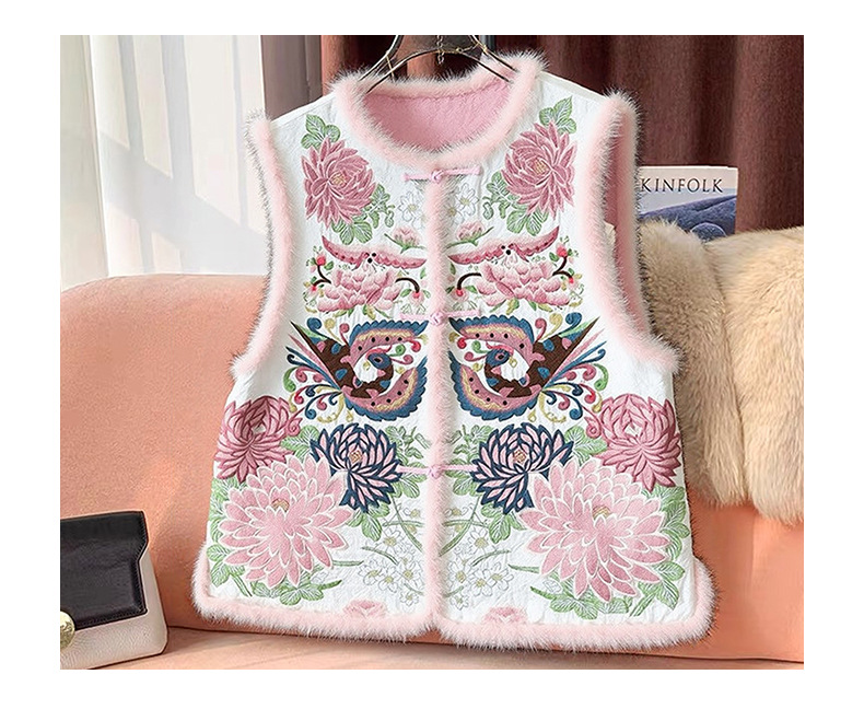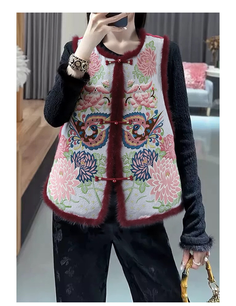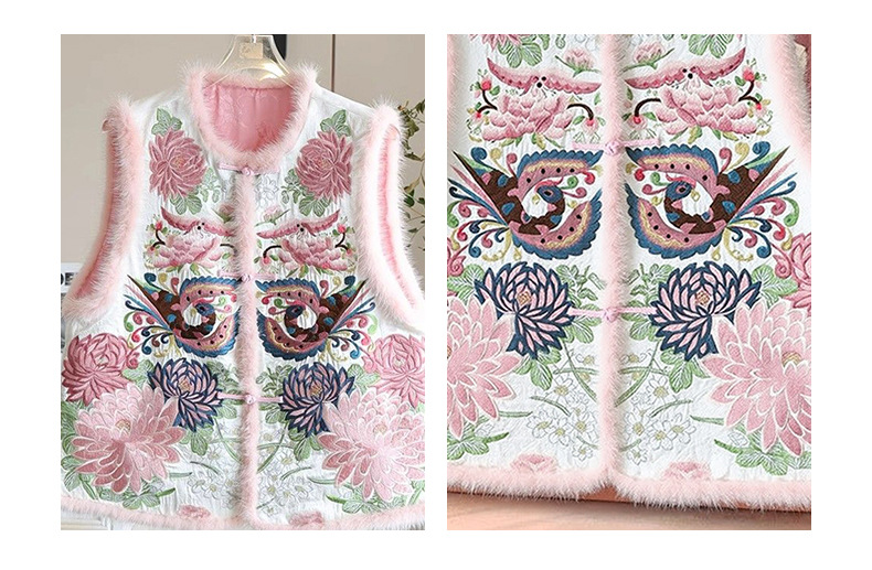 丁摩 醋酸新中式马甲棉服女秋冬款马夹重工国风刺绣背心夹棉外套5ZF-9678