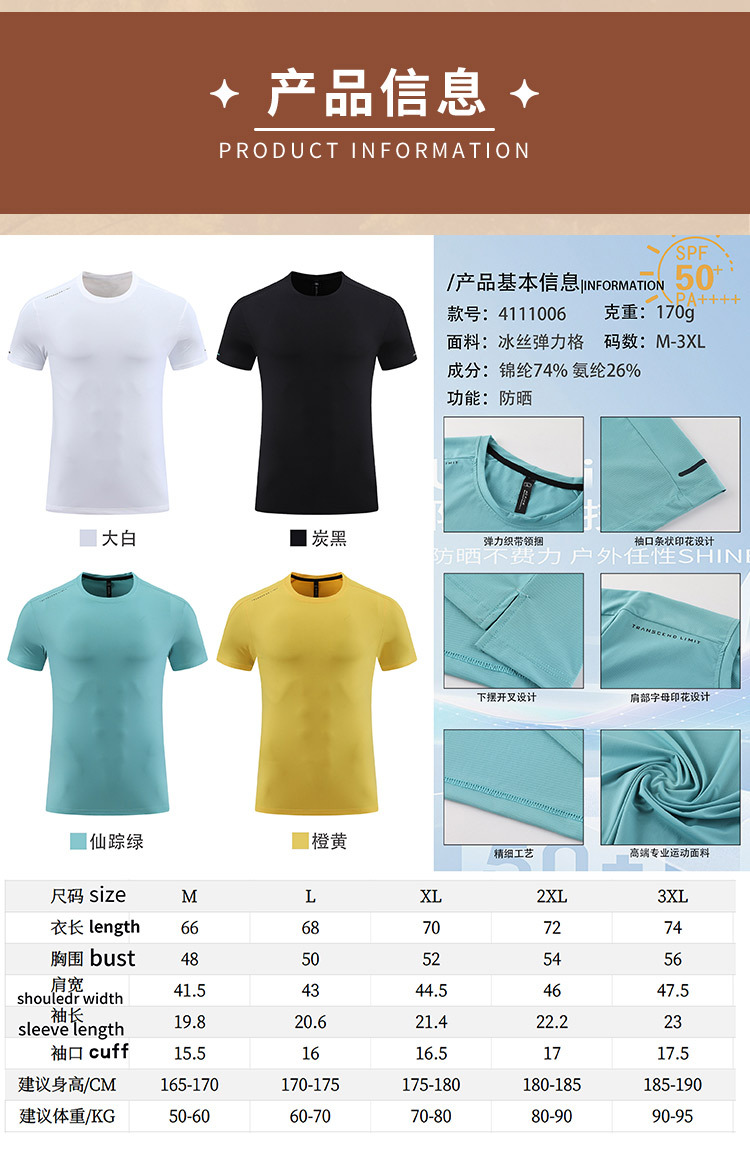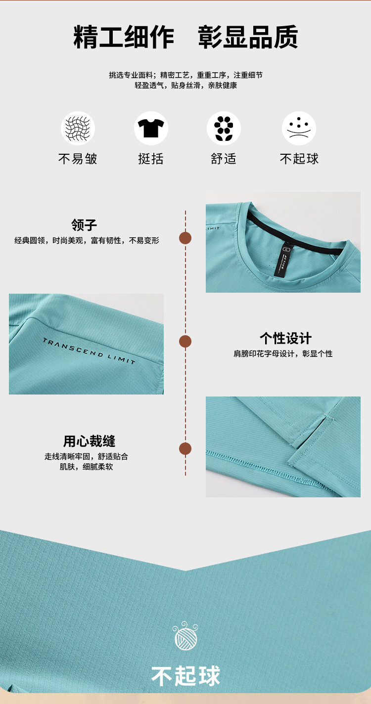 跃牌【跃LEAP-ACTIVE】系列 夏季圆领纯色速干冰丝透气T恤4111006