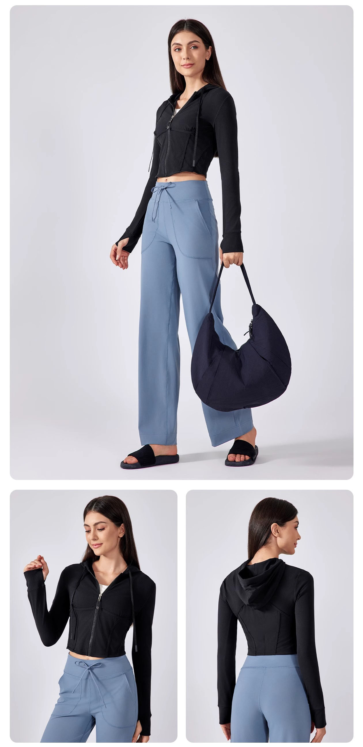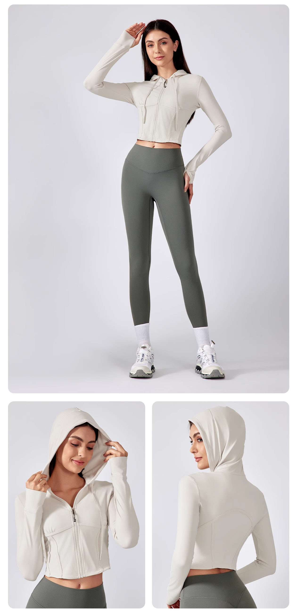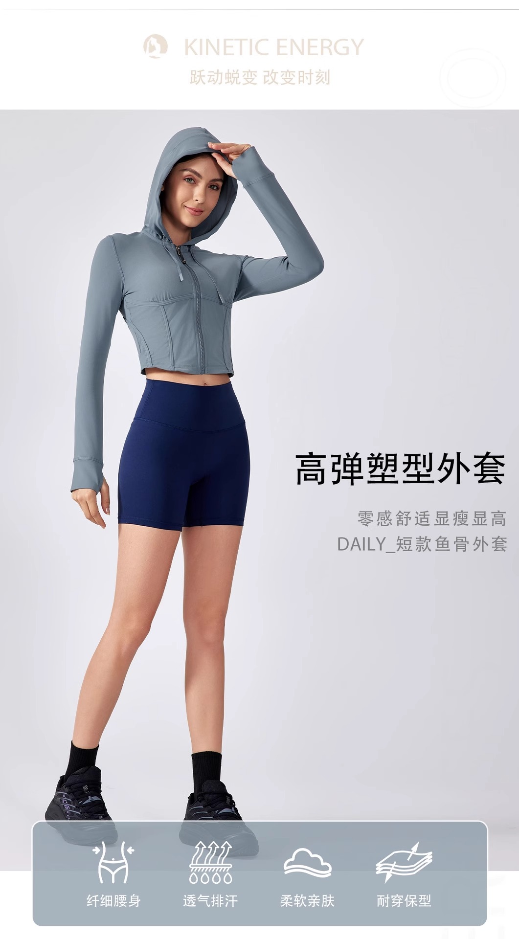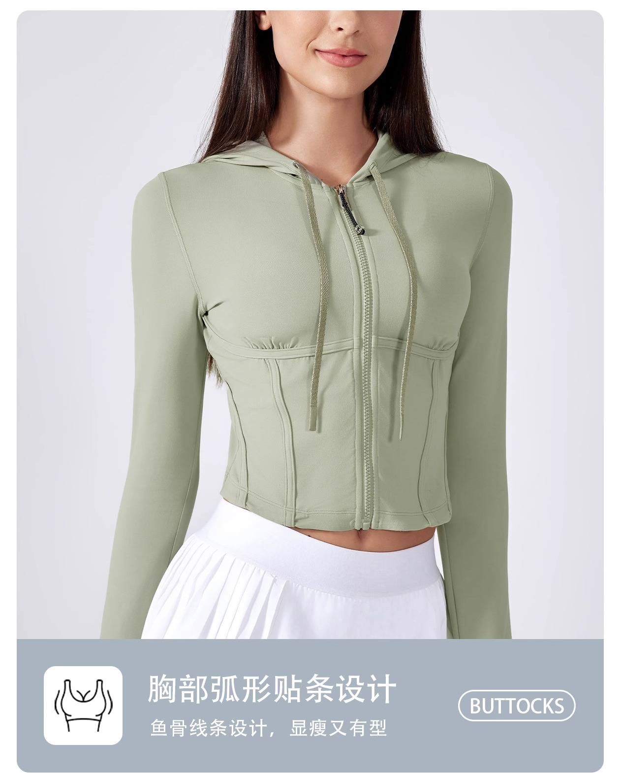 跃牌【美西西系列】新款运动外套鱼骨拉链连帽衫秋冬短款修身显瘦瑜伽服上衣WT-307
