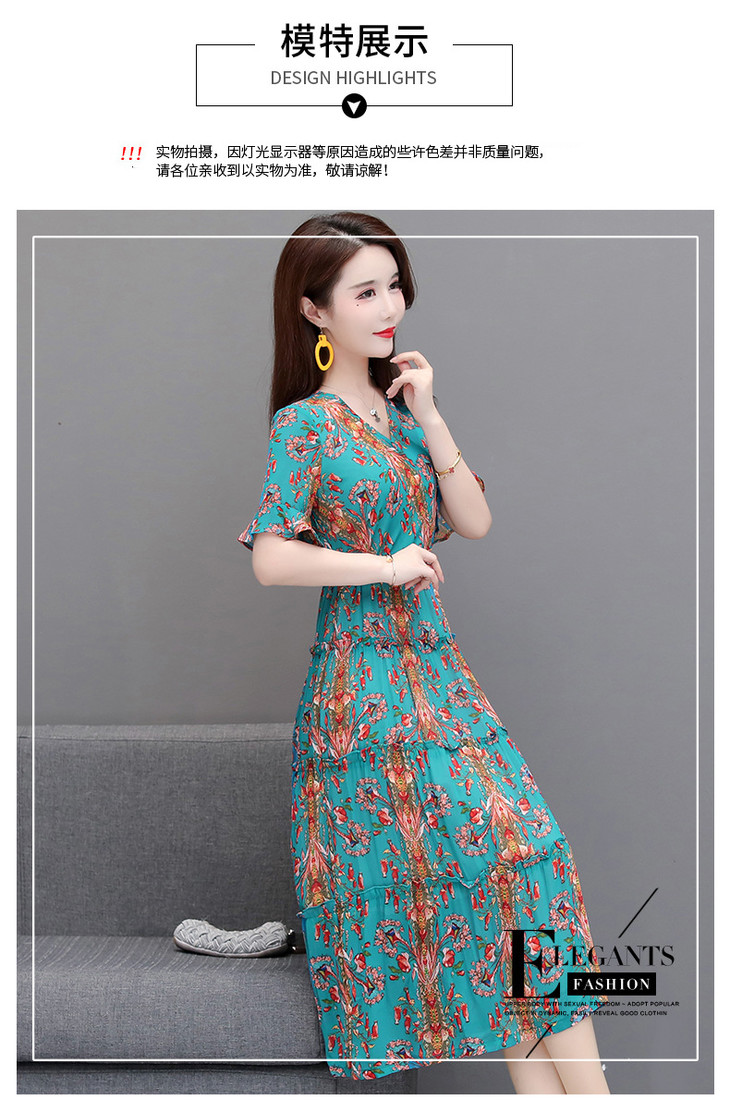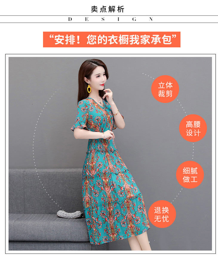 YW-XH-QZ20A19印花时尚气质修身中长款连衣裙