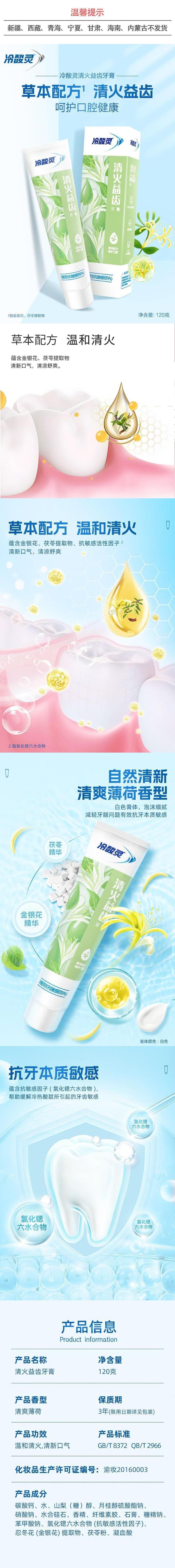 冷酸灵 清火益齿抗敏感牙膏120克 6902132085990