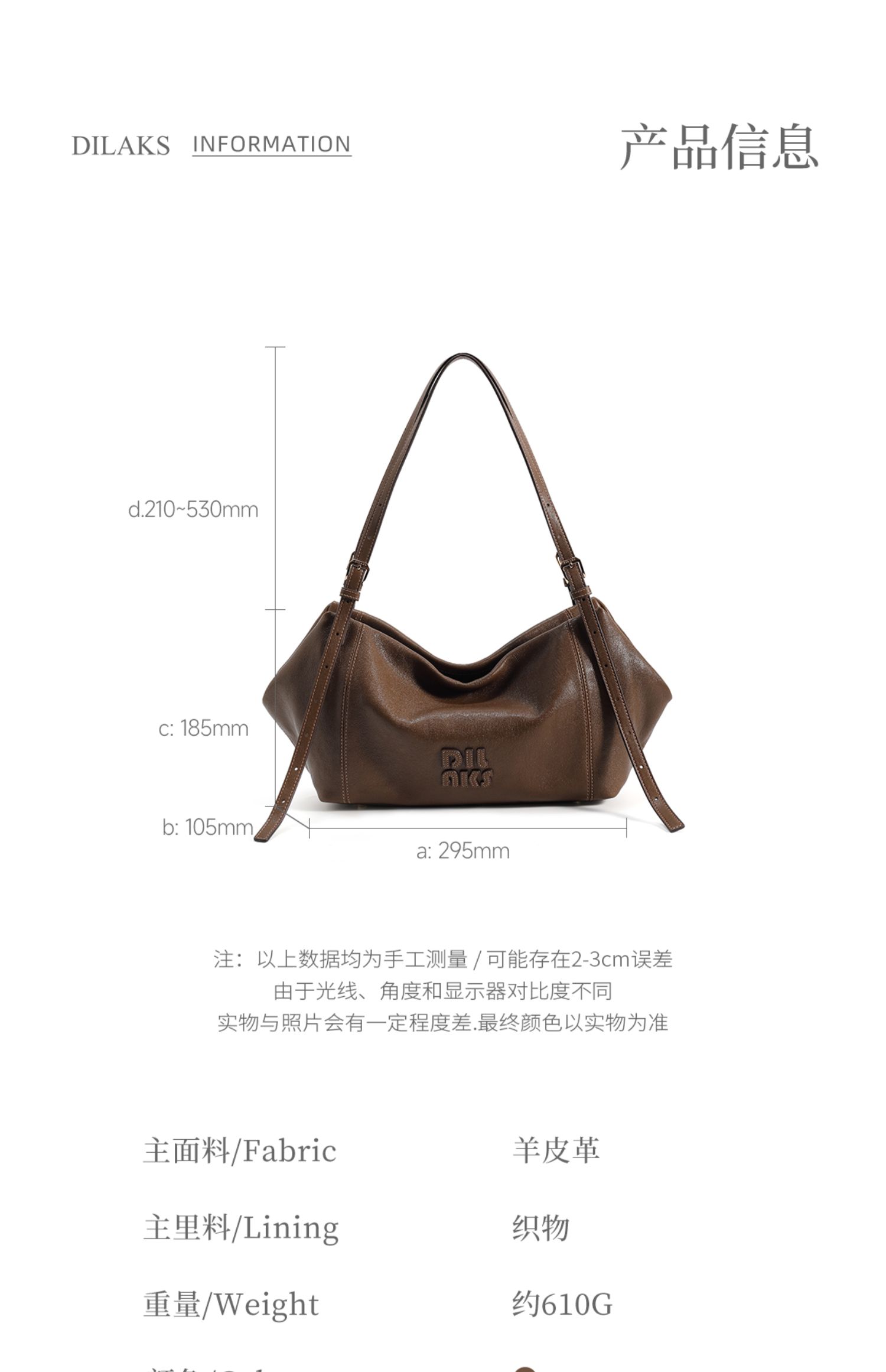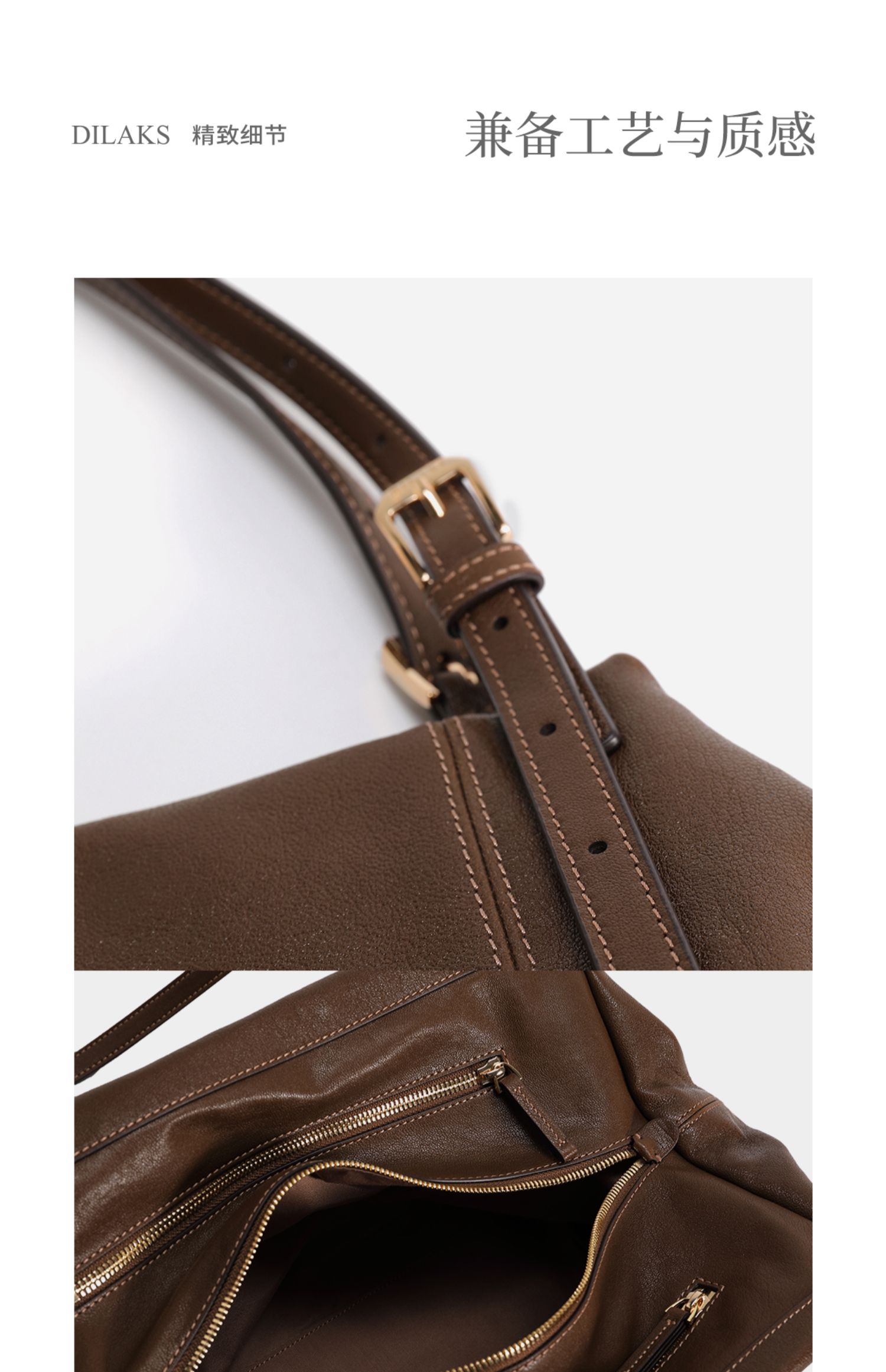 DILAKS迪莱克丝 2025年新款植鞣绵羊皮托特包大容量拉链单肩斜挎包