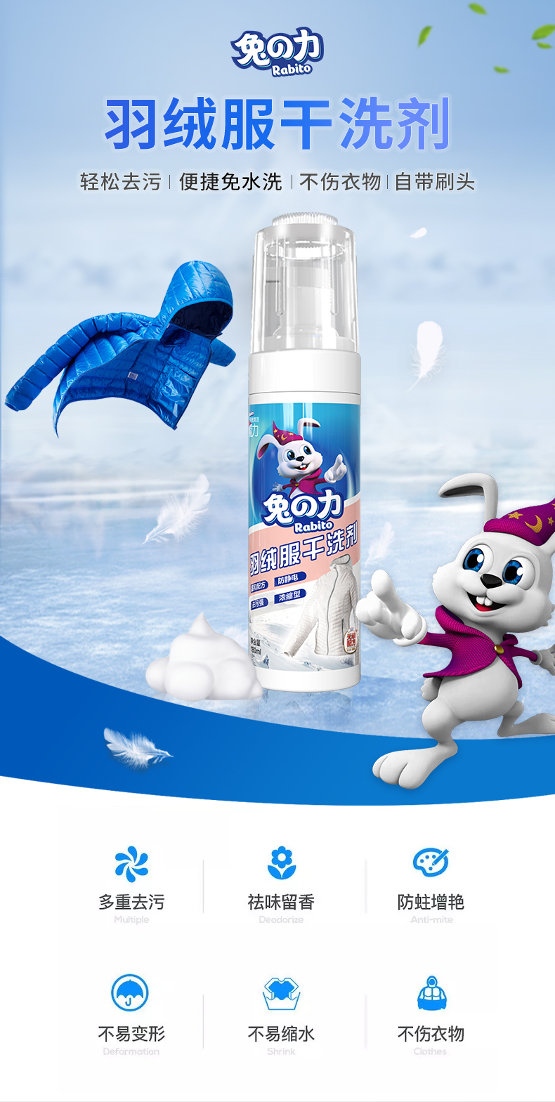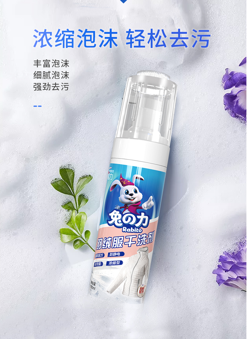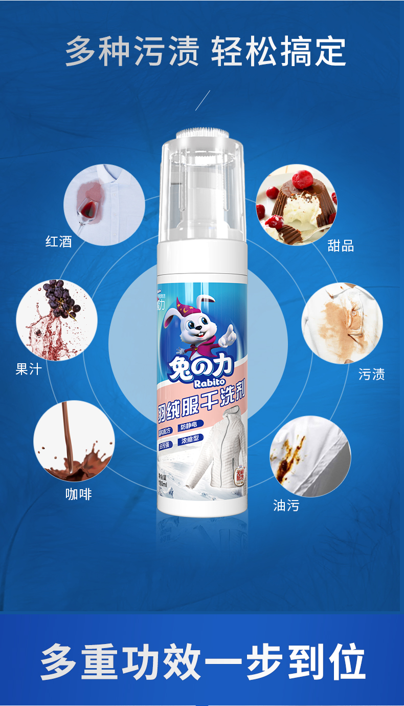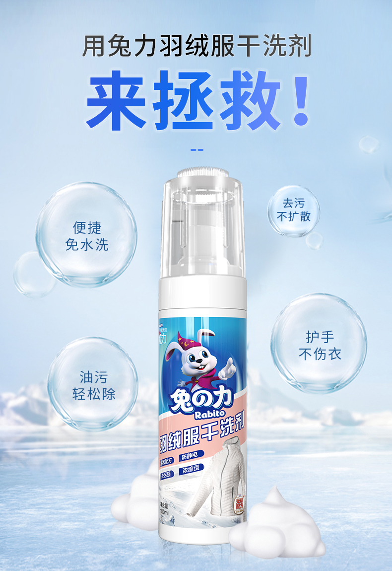 兔力羽绒服清洗剂 干洗剂免水洗家用去污渍去油渍清洁棉服棉衣泡沫清洗剂喷雾 180ml/瓶