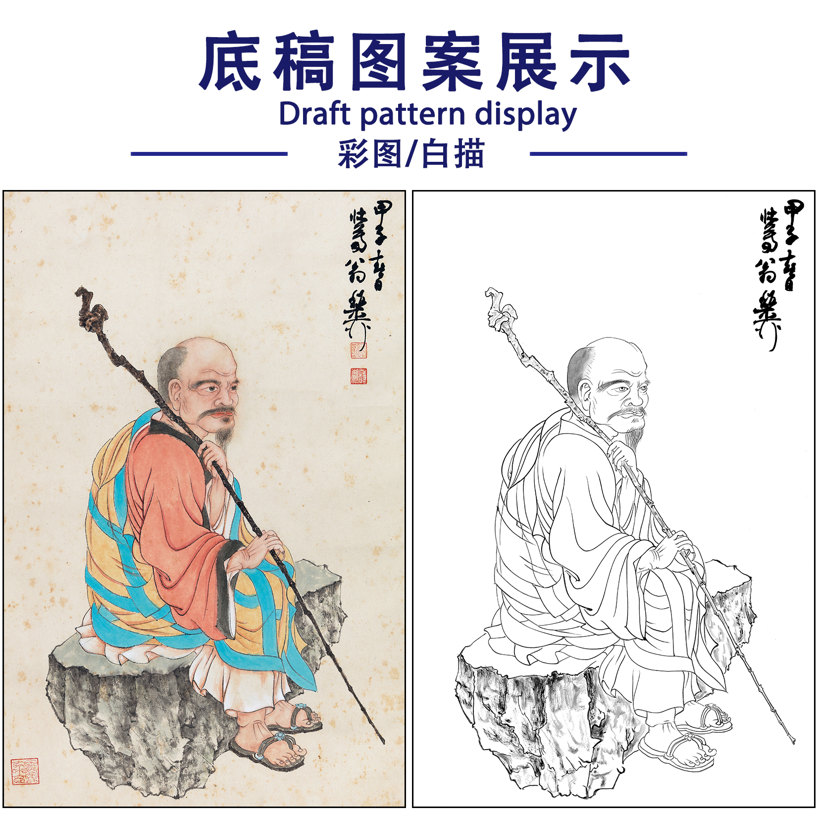 谢稚柳人物工笔画白描底稿《罗汉图》临摹勾线高清打印稿XZ28