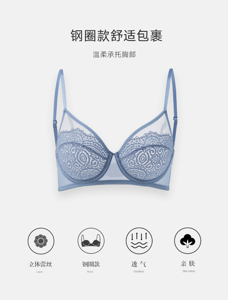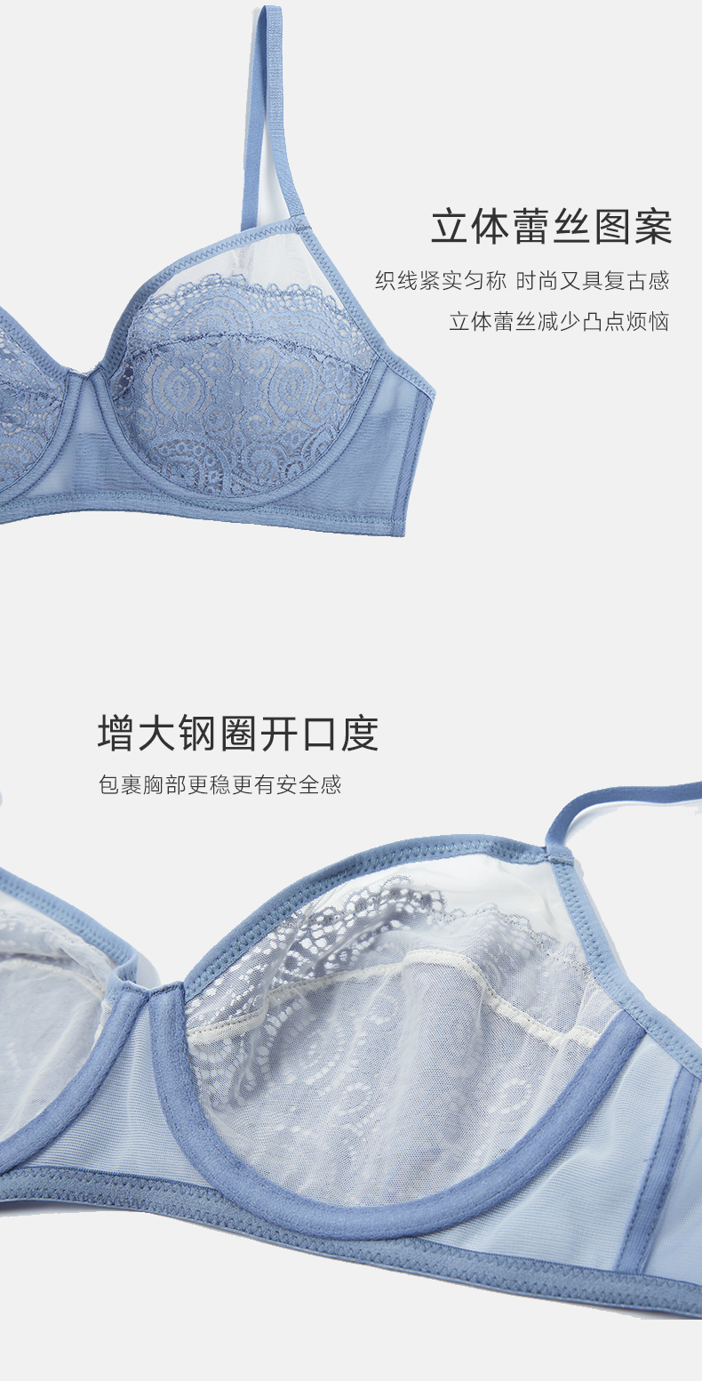 弗利少女法式蕾丝性感小胸内衣女 钢圈文胸少女超薄bra承托感胸罩