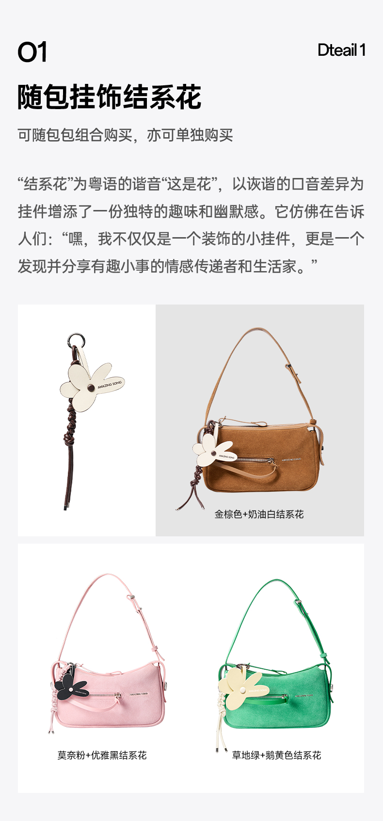 Amazing Song乙颂结系花挂饰新款小众时尚甜美挂件花花包包配件女