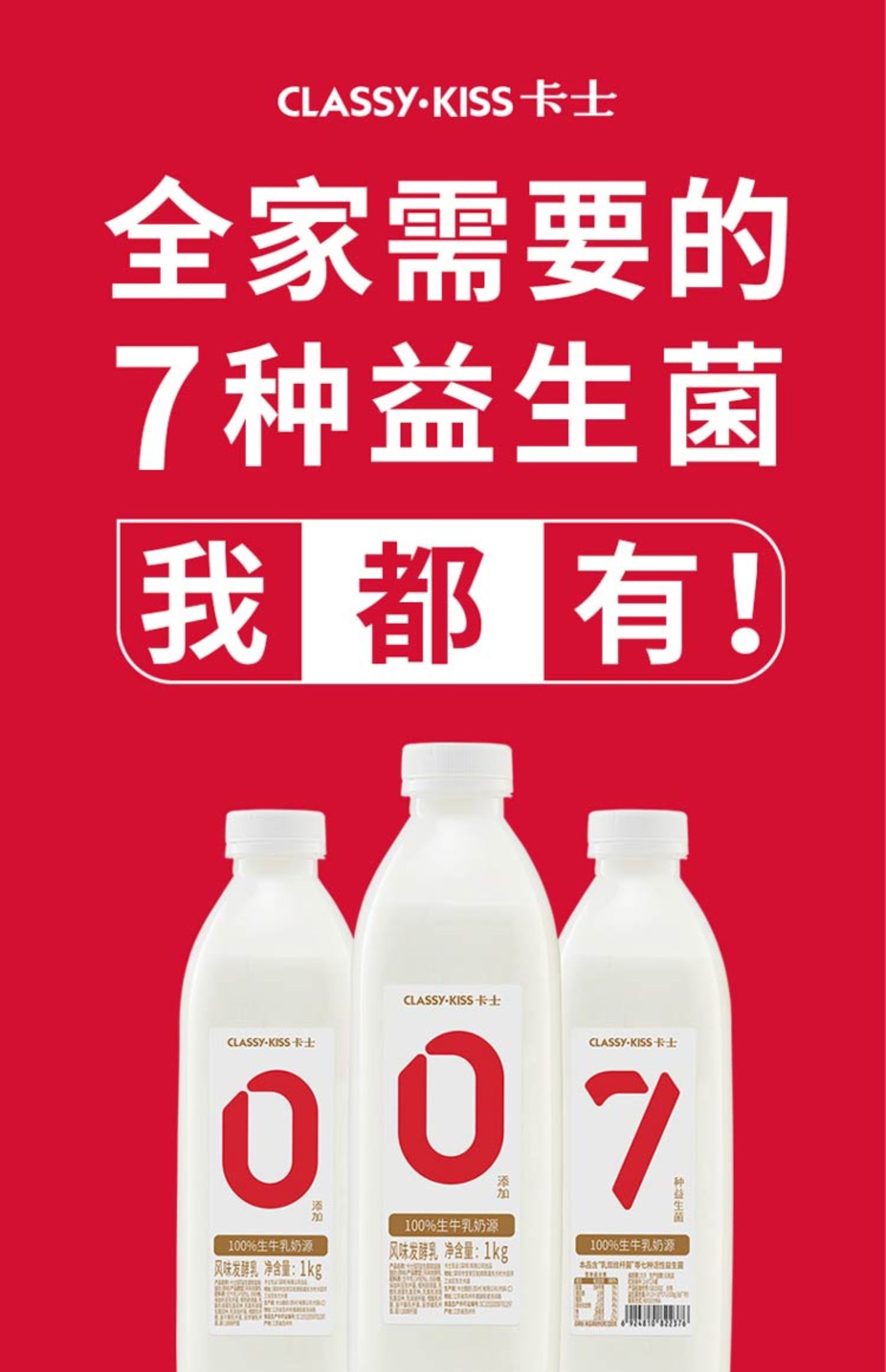 1kg卡士007家庭装原味酸奶 100%生牛乳