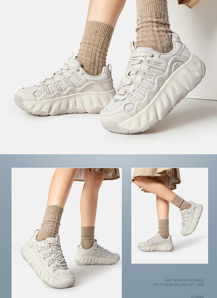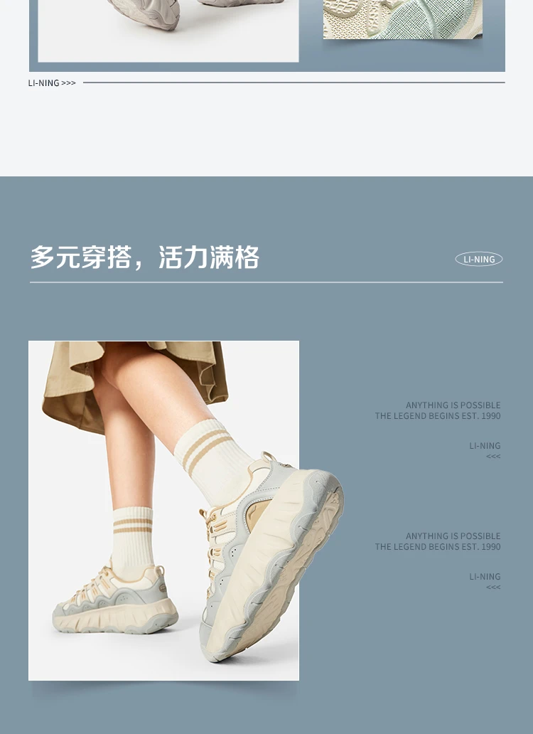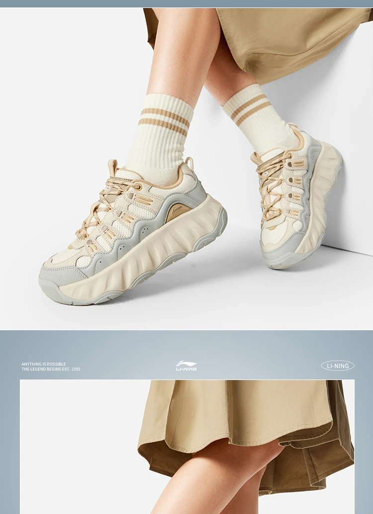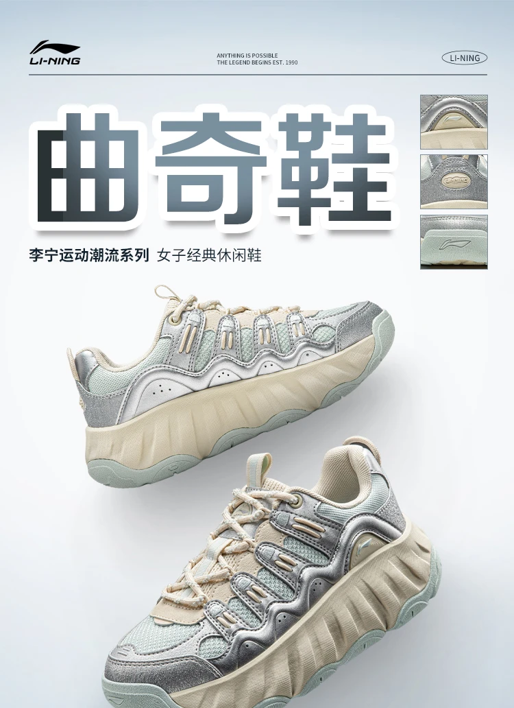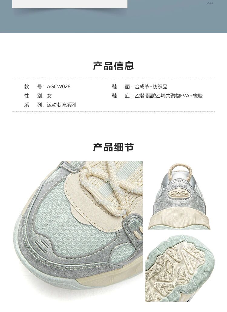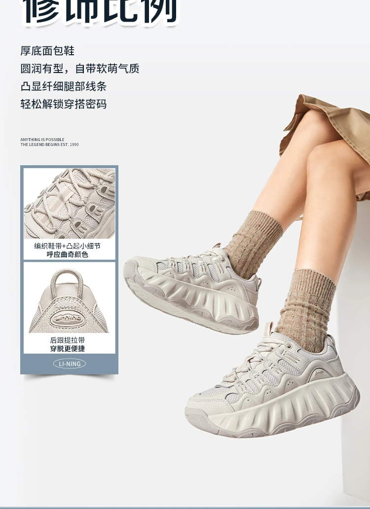 李宁曲奇鞋女子减震轻质回弹经典休闲鞋AGCW028