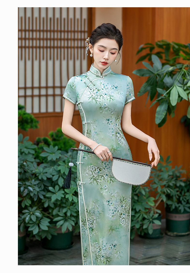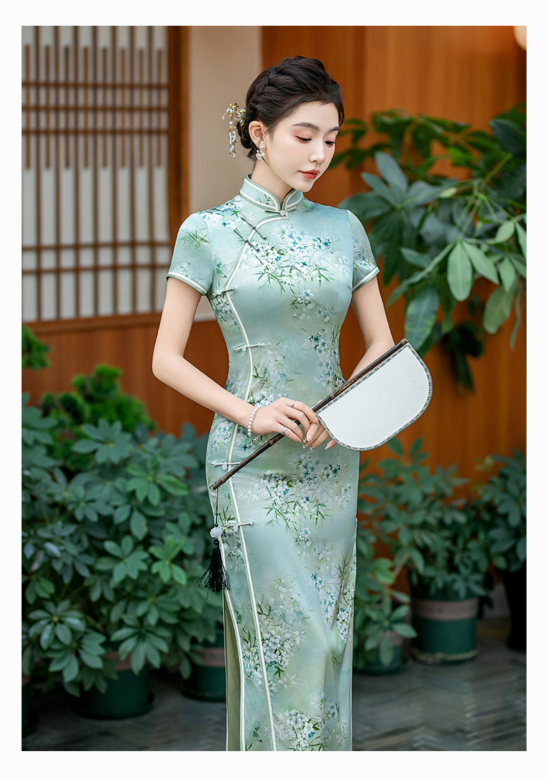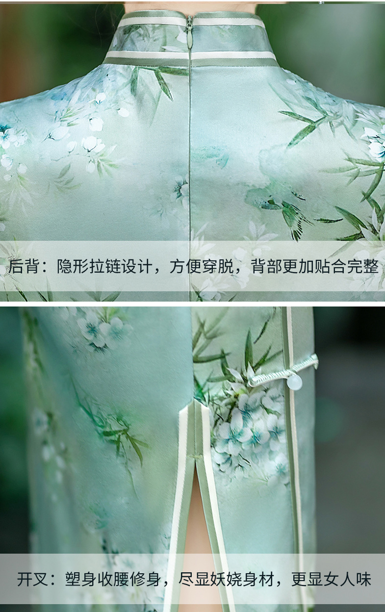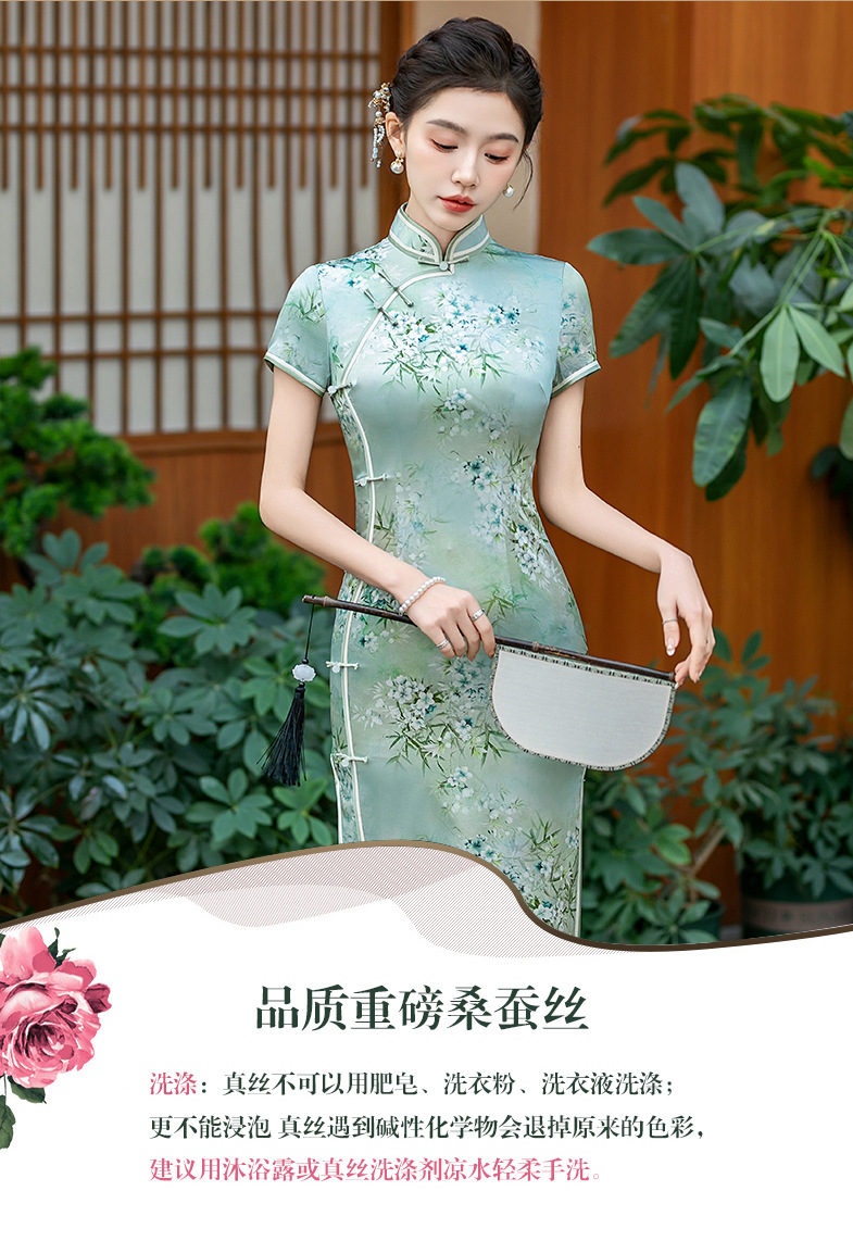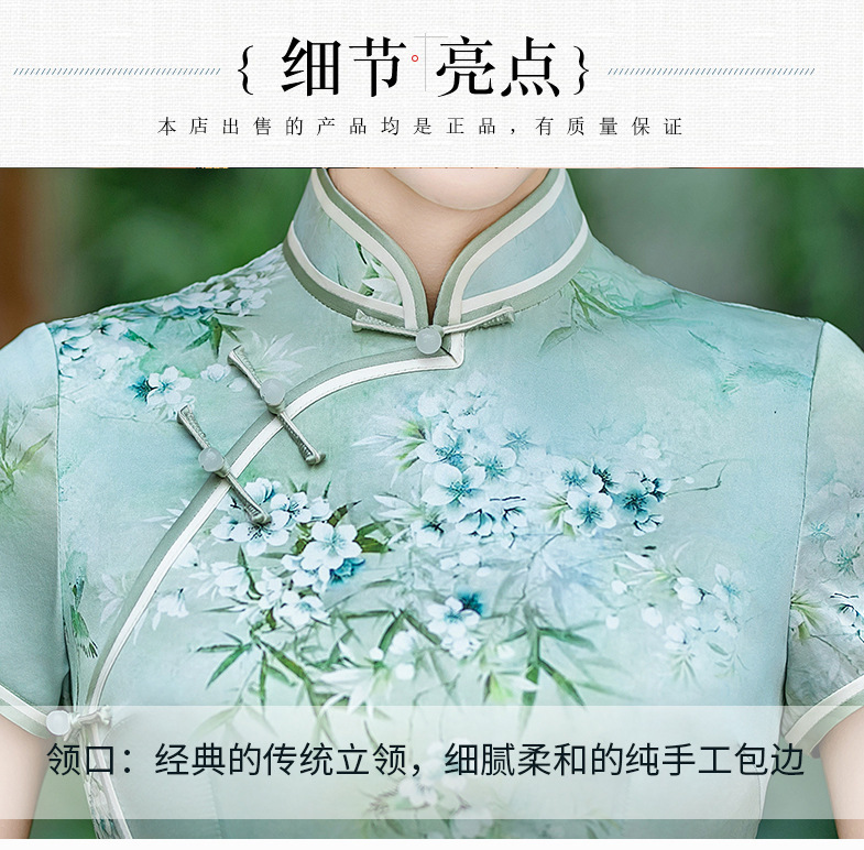 WX-ZS-25012春季新款真丝旗袍中式桑蚕丝连衣裙手工缝制送考宴席日常可穿