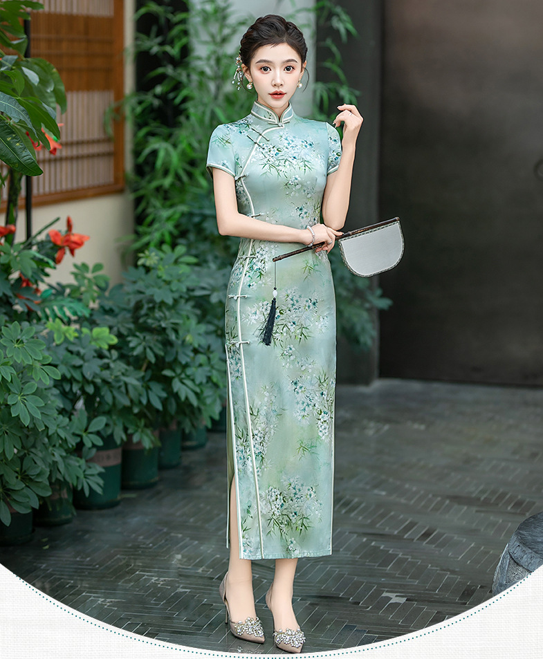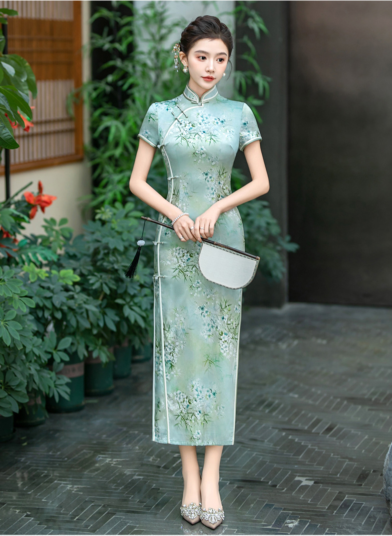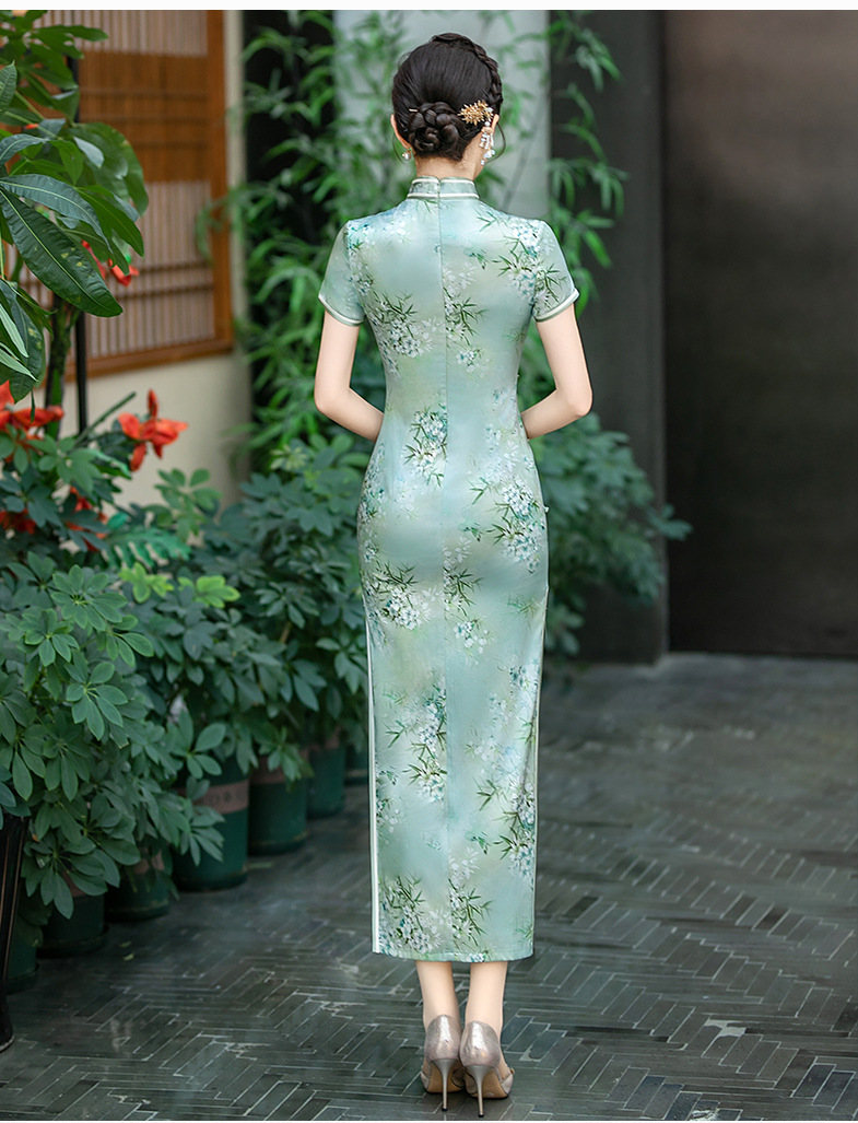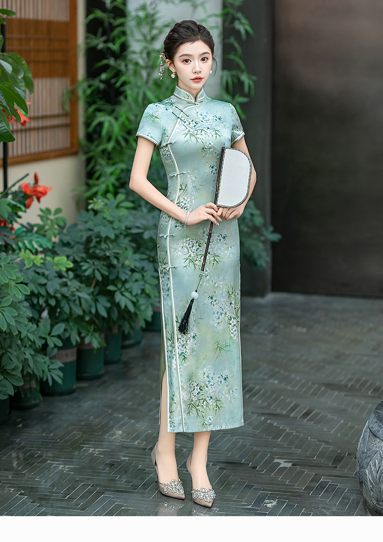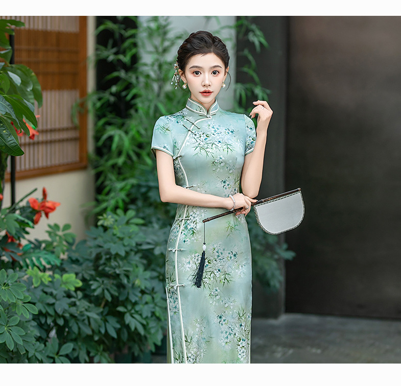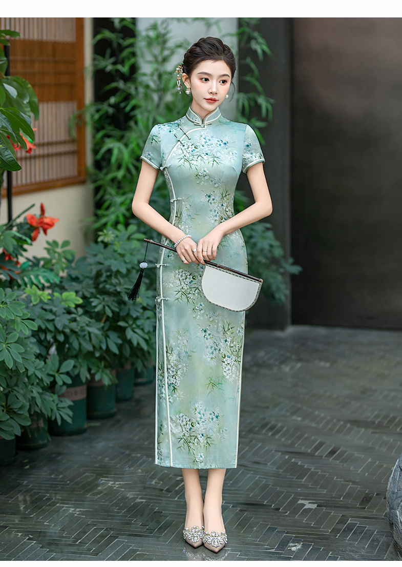 WX-ZS-25012春季新款真丝旗袍中式桑蚕丝连衣裙手工缝制送考宴席日常可穿