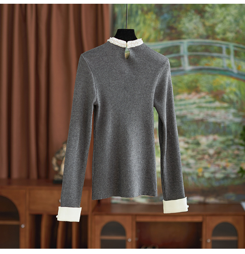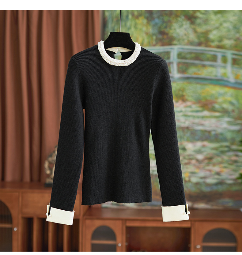 【高货wl】全新升级【铂金会员183/天猫239/差价56】(10607) 洛诗琳秋冬新款高级感轻奢珍珠领优雅修身羊毛针织衫女