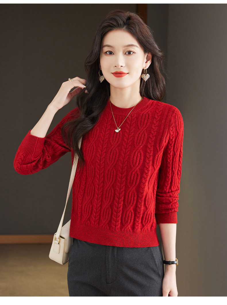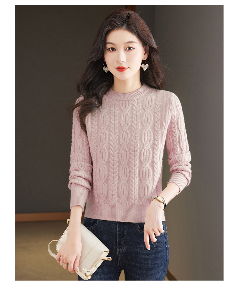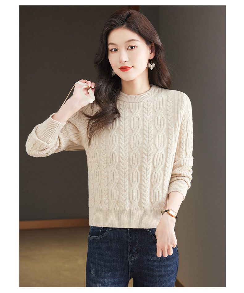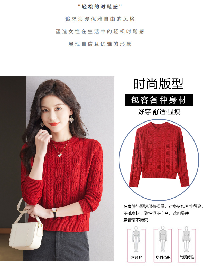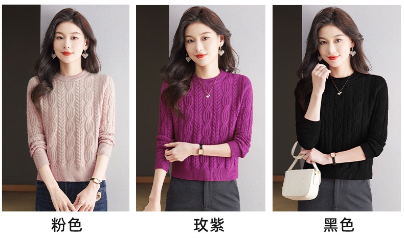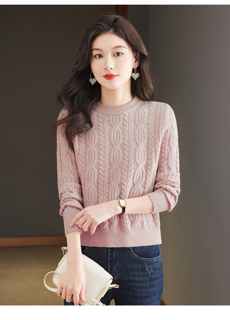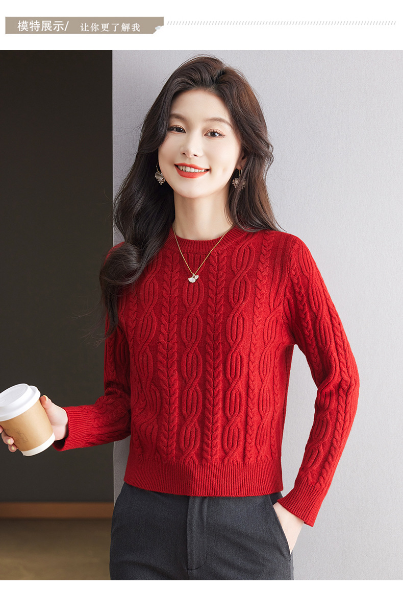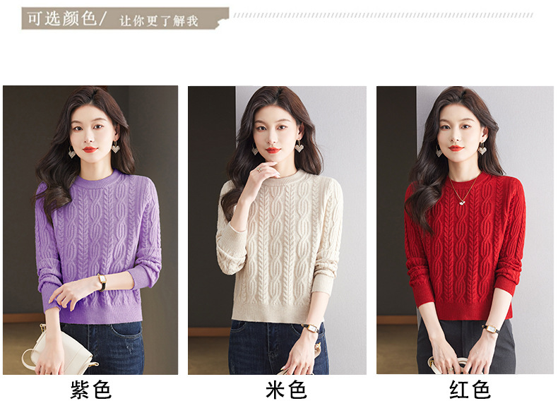CC-9-6927秋冬内搭外穿气质短款上衣套头复古圆领麻花毛衣女厚打底针织衫