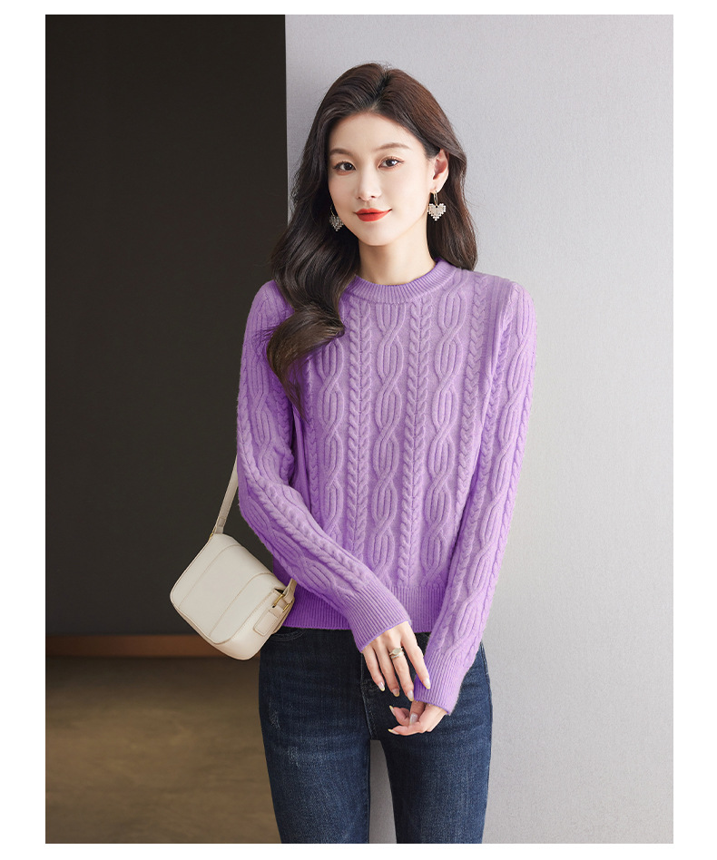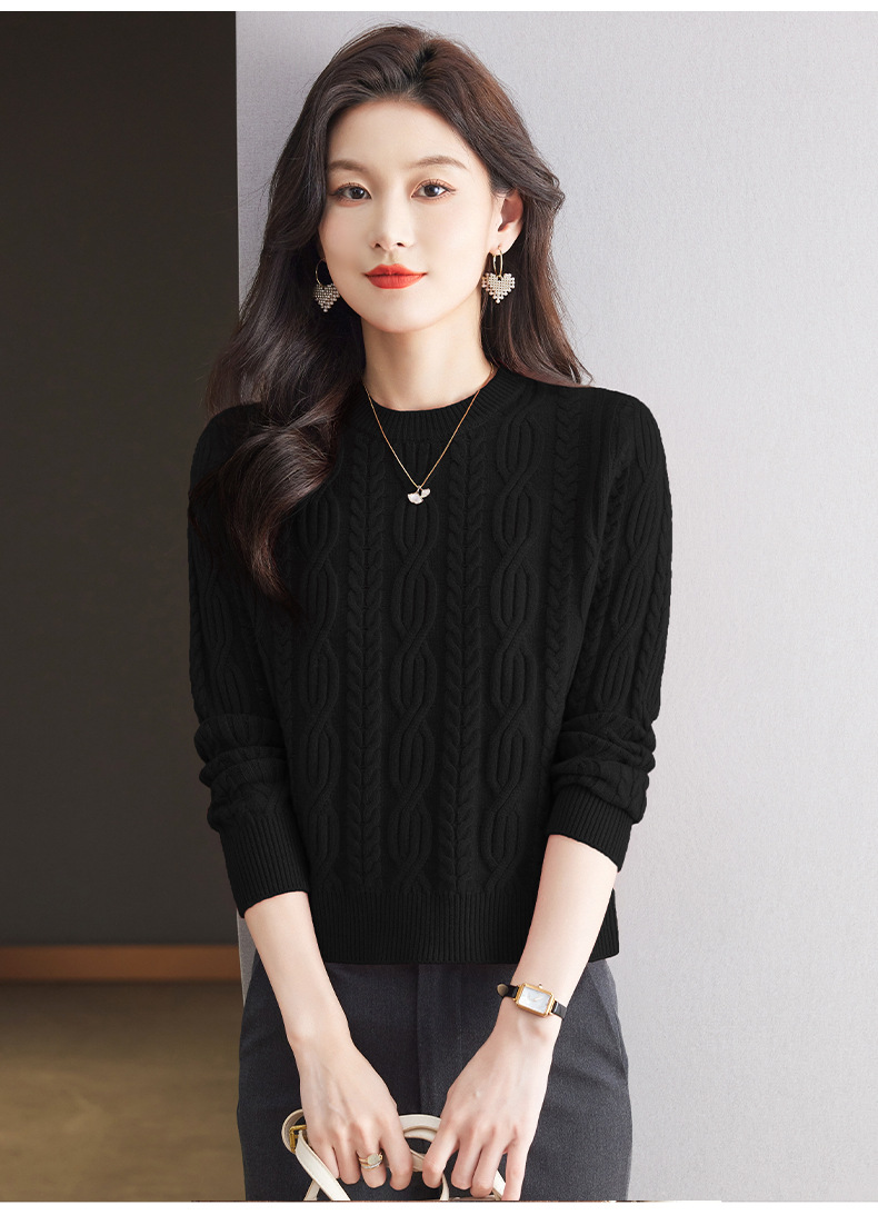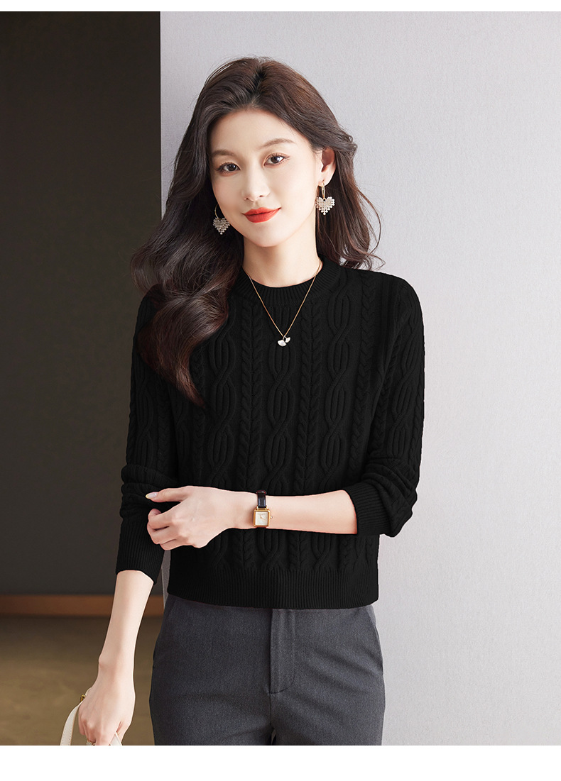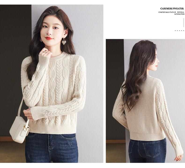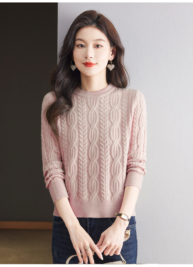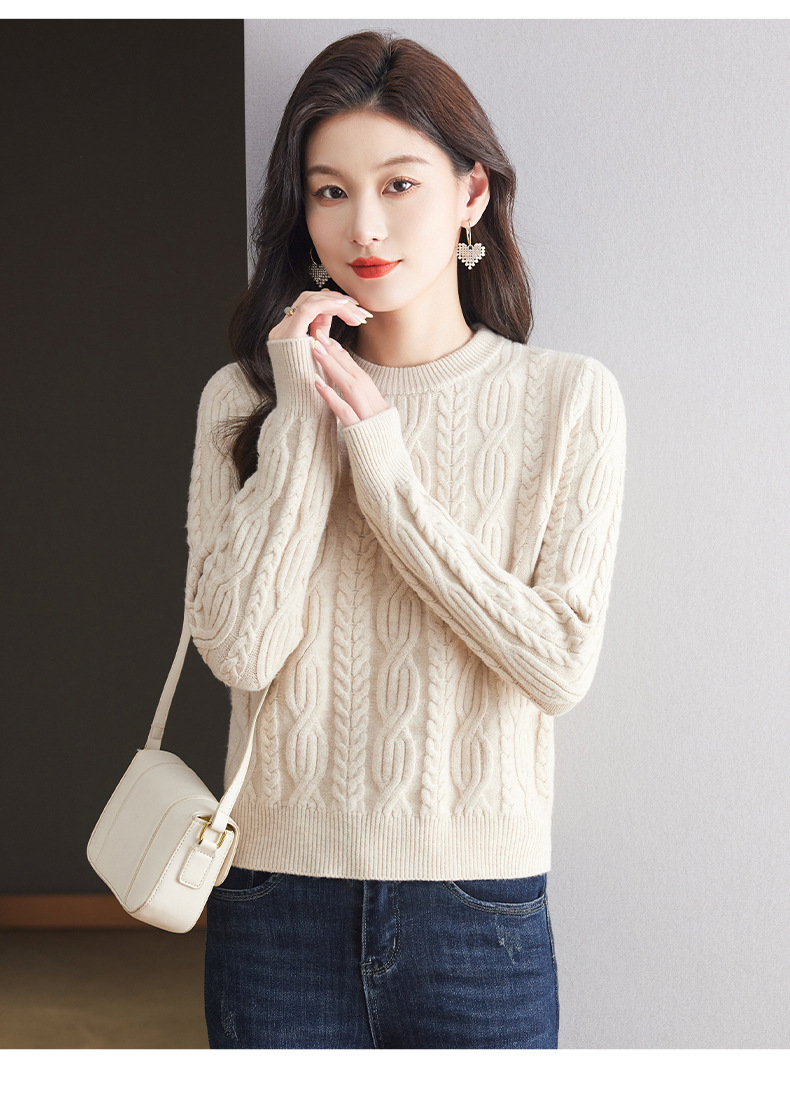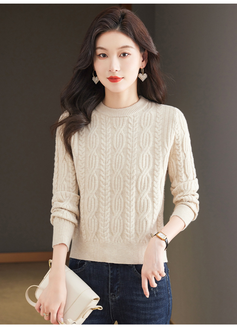CC-9-6927秋冬内搭外穿气质短款上衣套头复古圆领麻花毛衣女厚打底针织衫