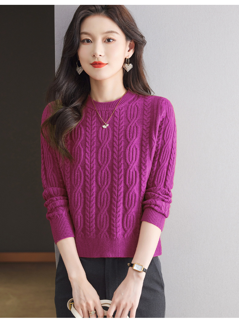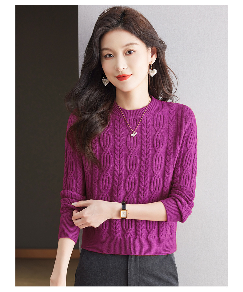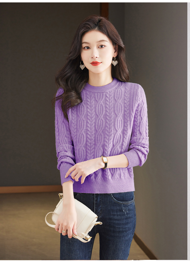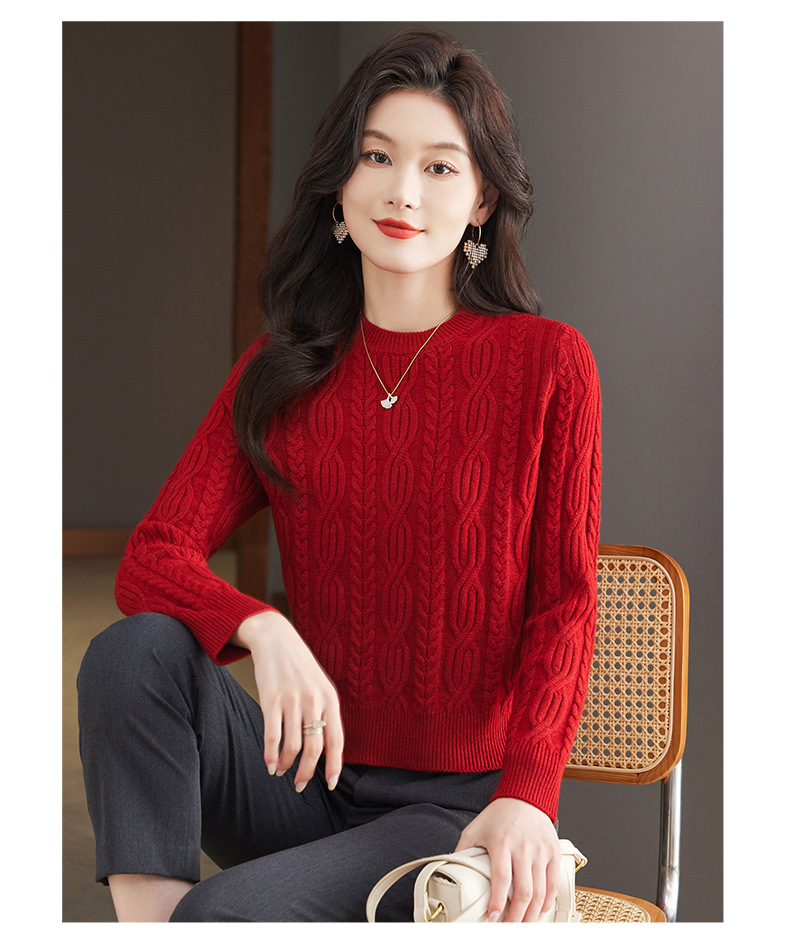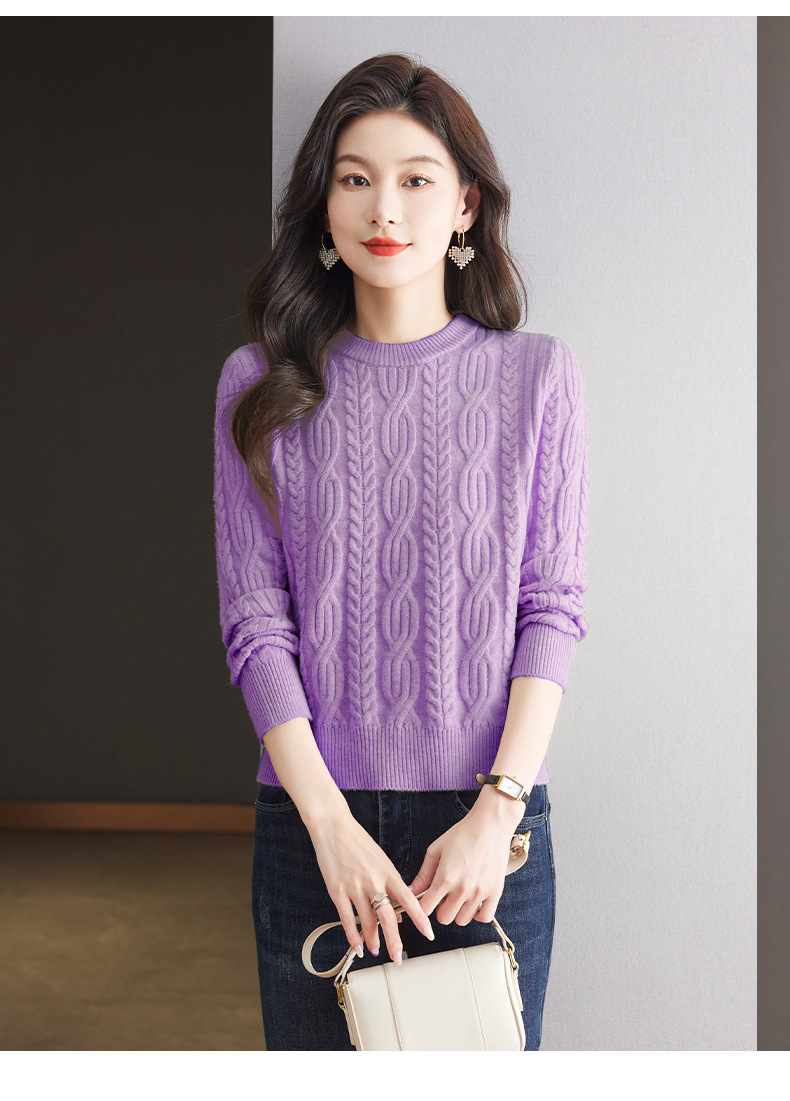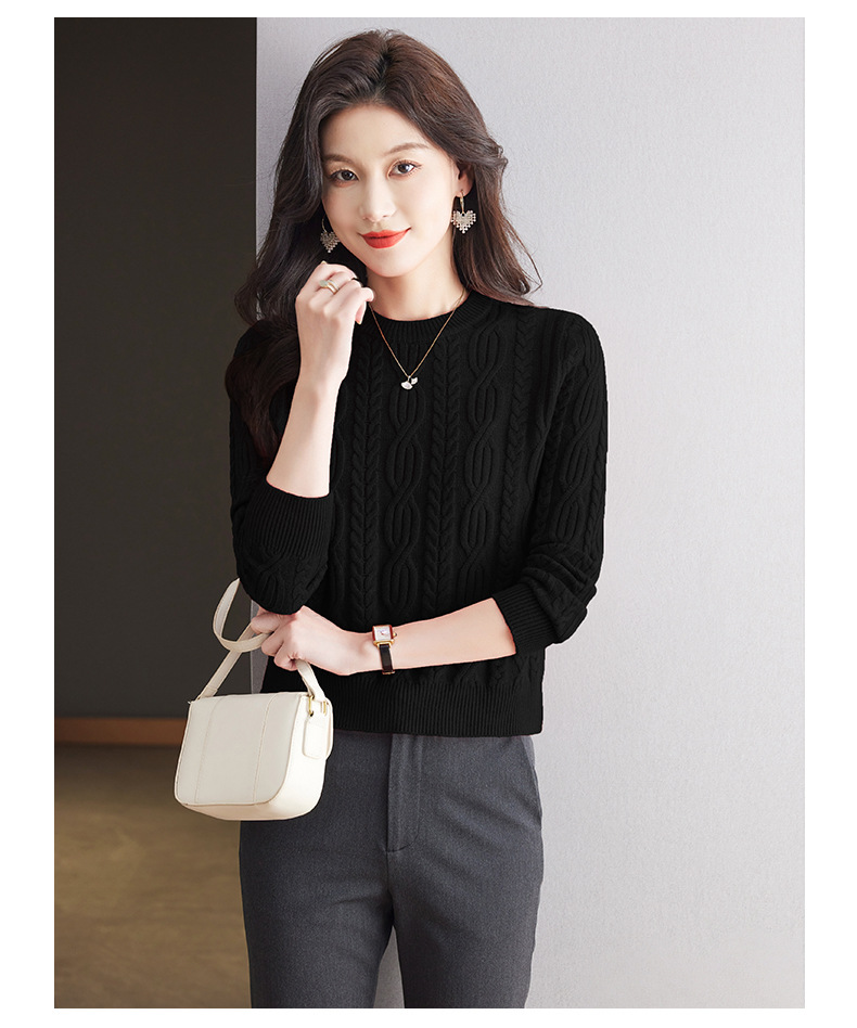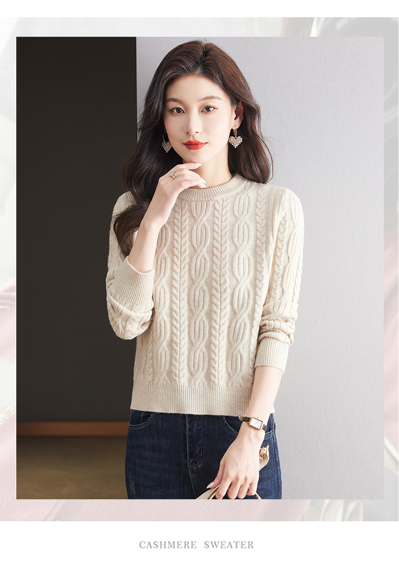 CC-9-6927秋冬内搭外穿气质短款上衣套头复古圆领麻花毛衣女厚打底针织衫