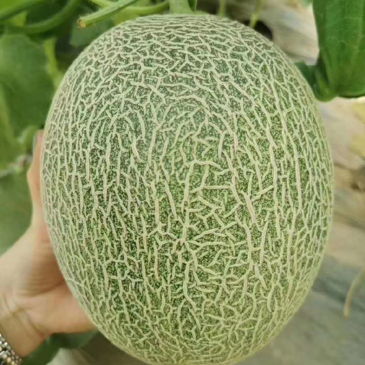 【卖点】 风味独特,瓜肉肥厚,清脆爽口、浅麻绿、绿道,网纹细密全,果肉橘红,肉质细、松脆,风味好