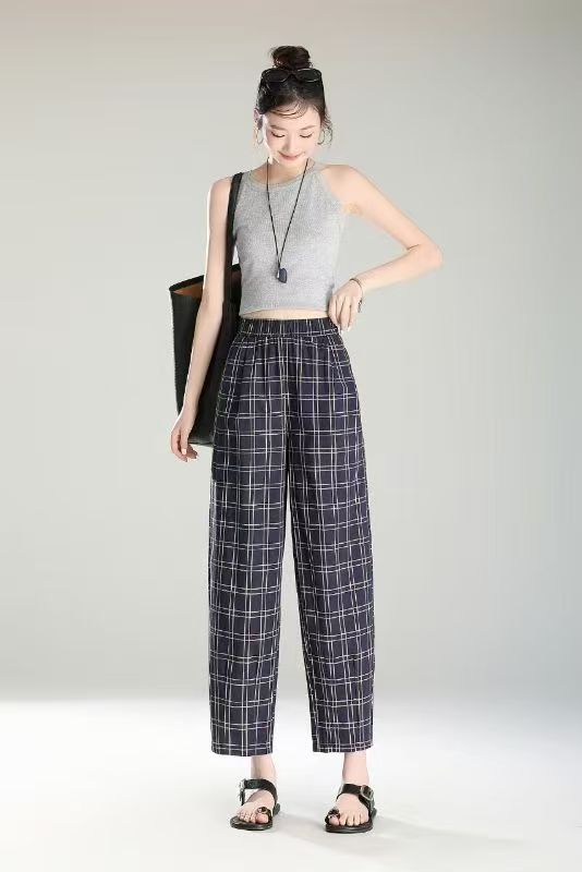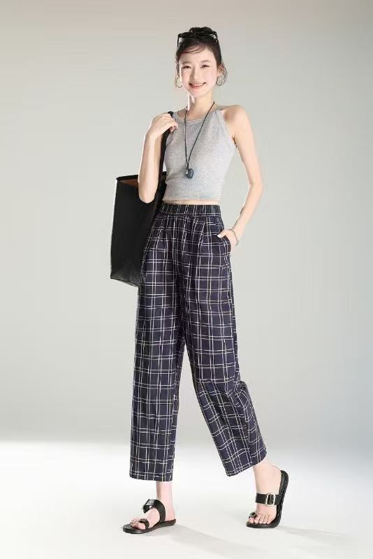【品名】LS竹纤维女士时尚复古轻盈格子裤16754