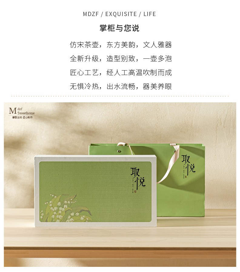 摩登主妇仿宋茶壶耐热玻璃泡茶器执壶茶杯家用绿茶带过滤茶具套装