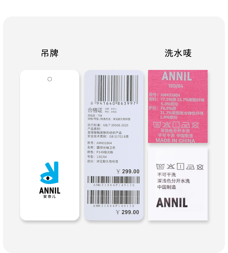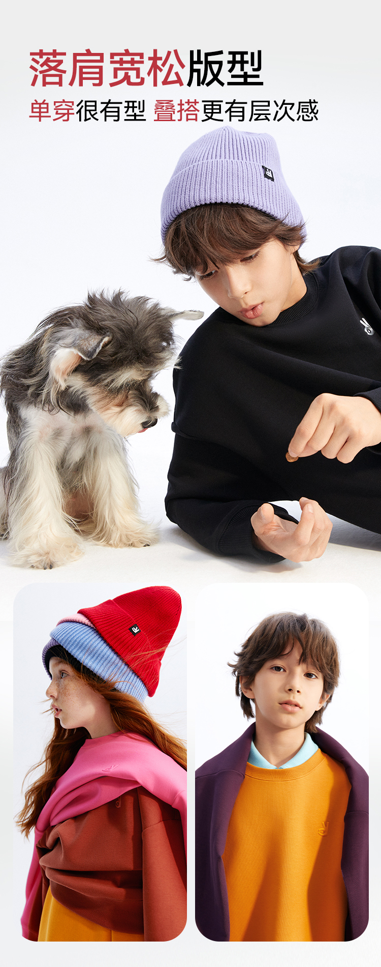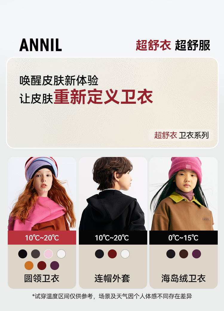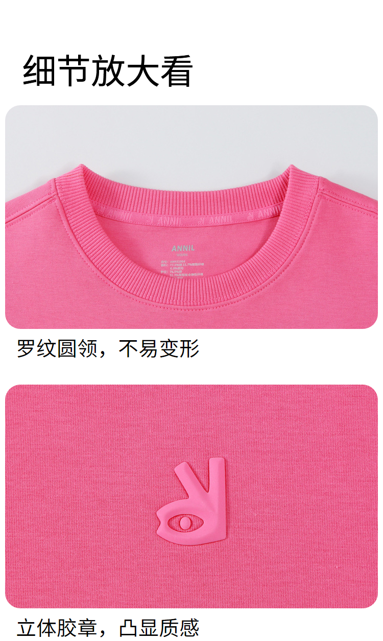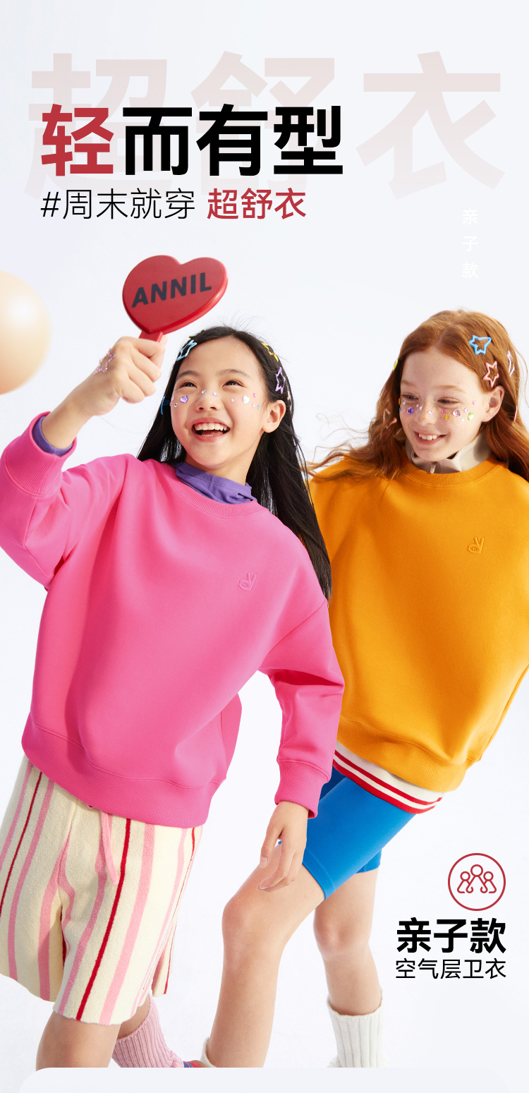 【超舒衣·圆领卫衣】男女童休闲长袖卫衣柔滑轻盈秋季新款安奈儿童装实体店同款AM431864