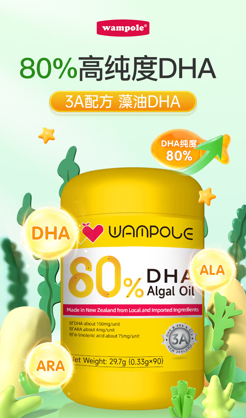万哺乐乐睿星DHA藻油凝胶糖果80%【90粒】