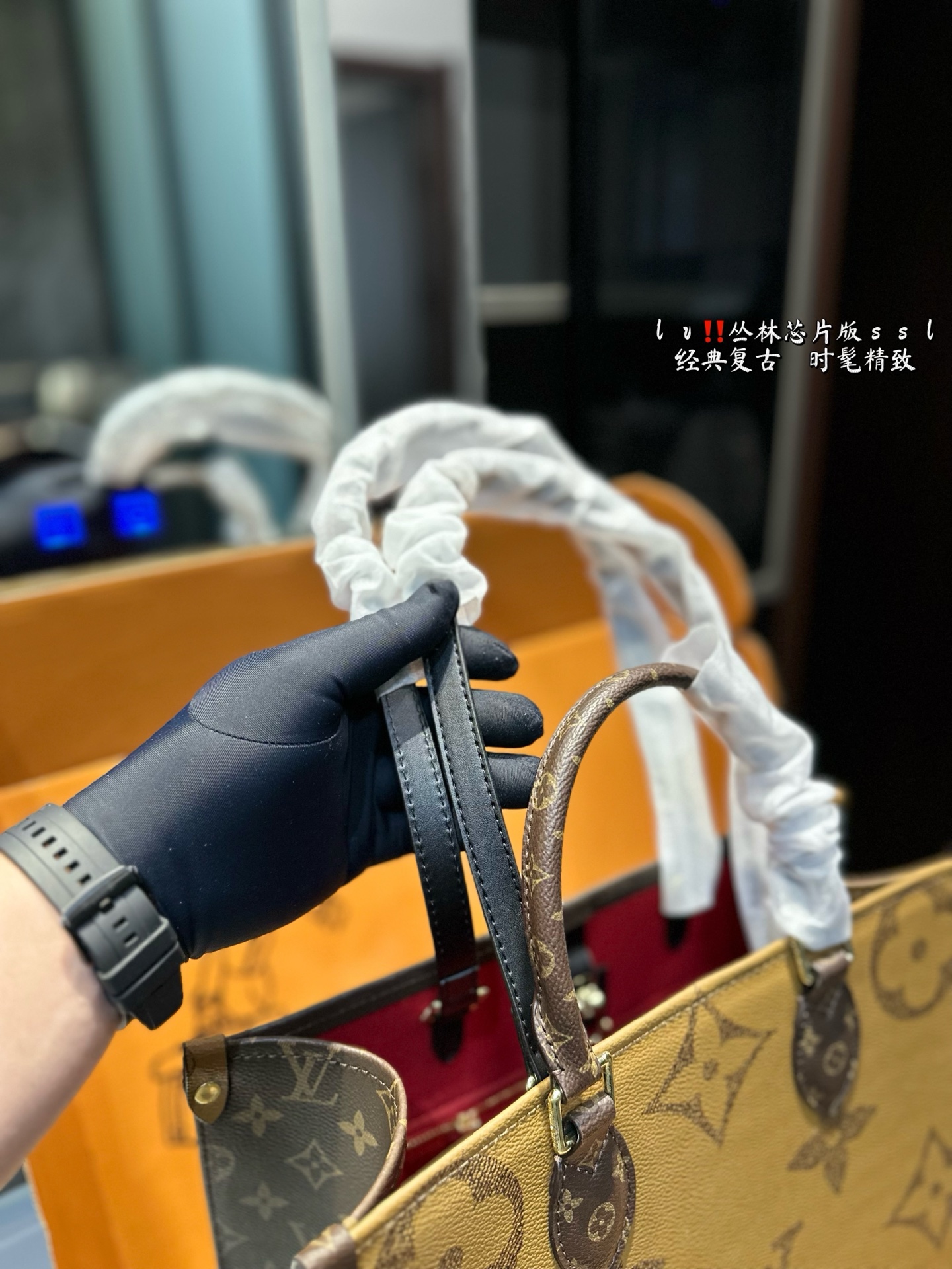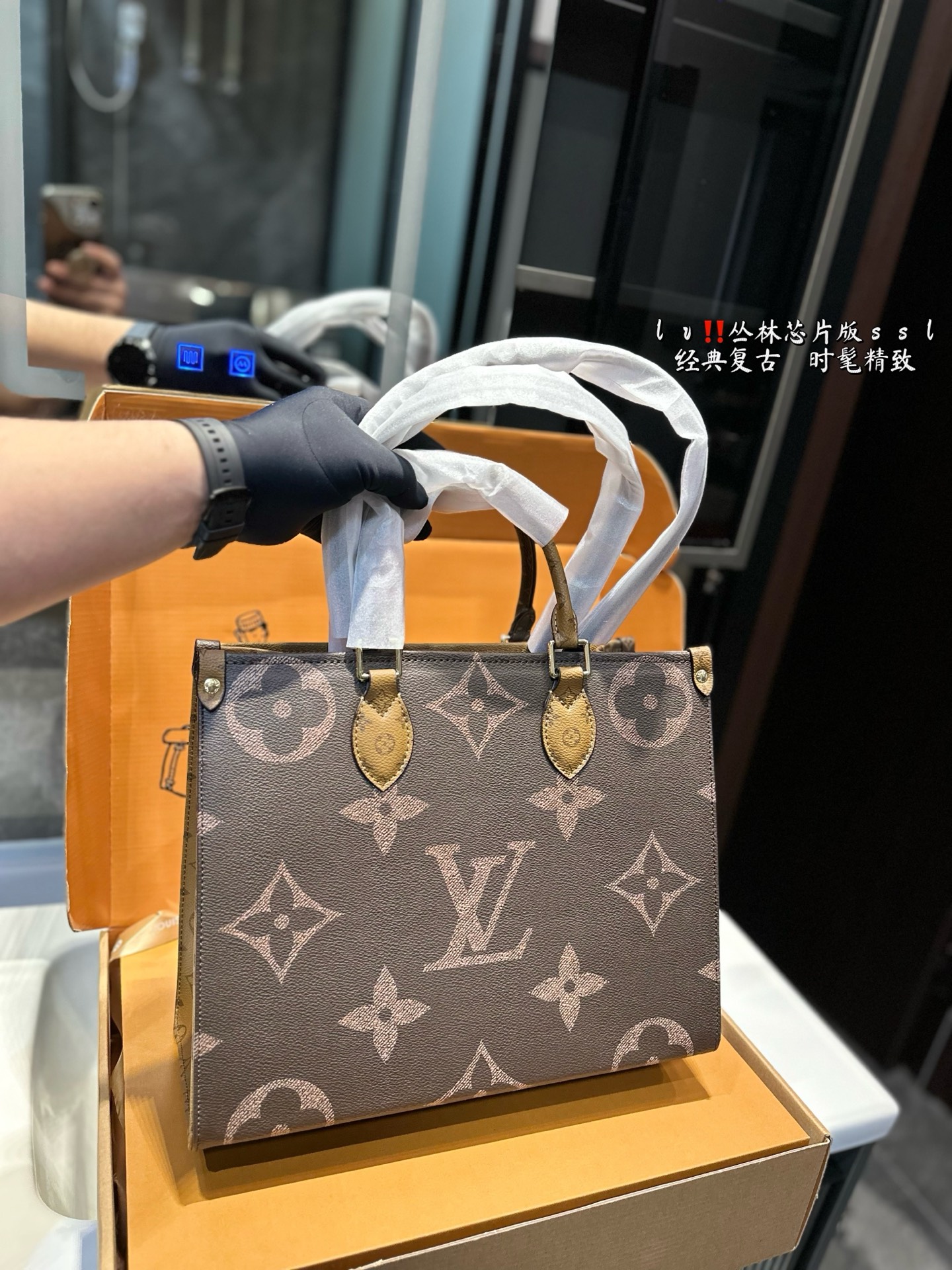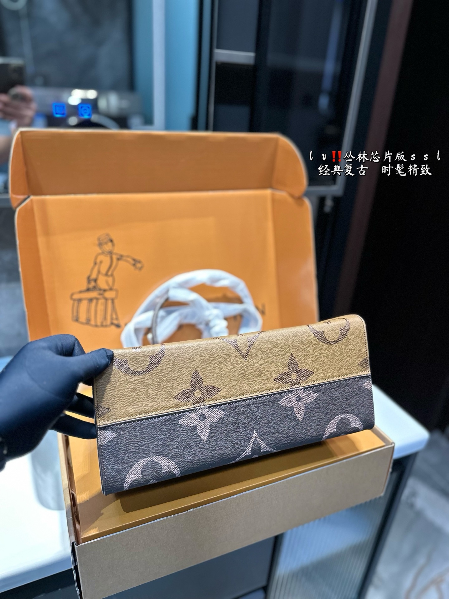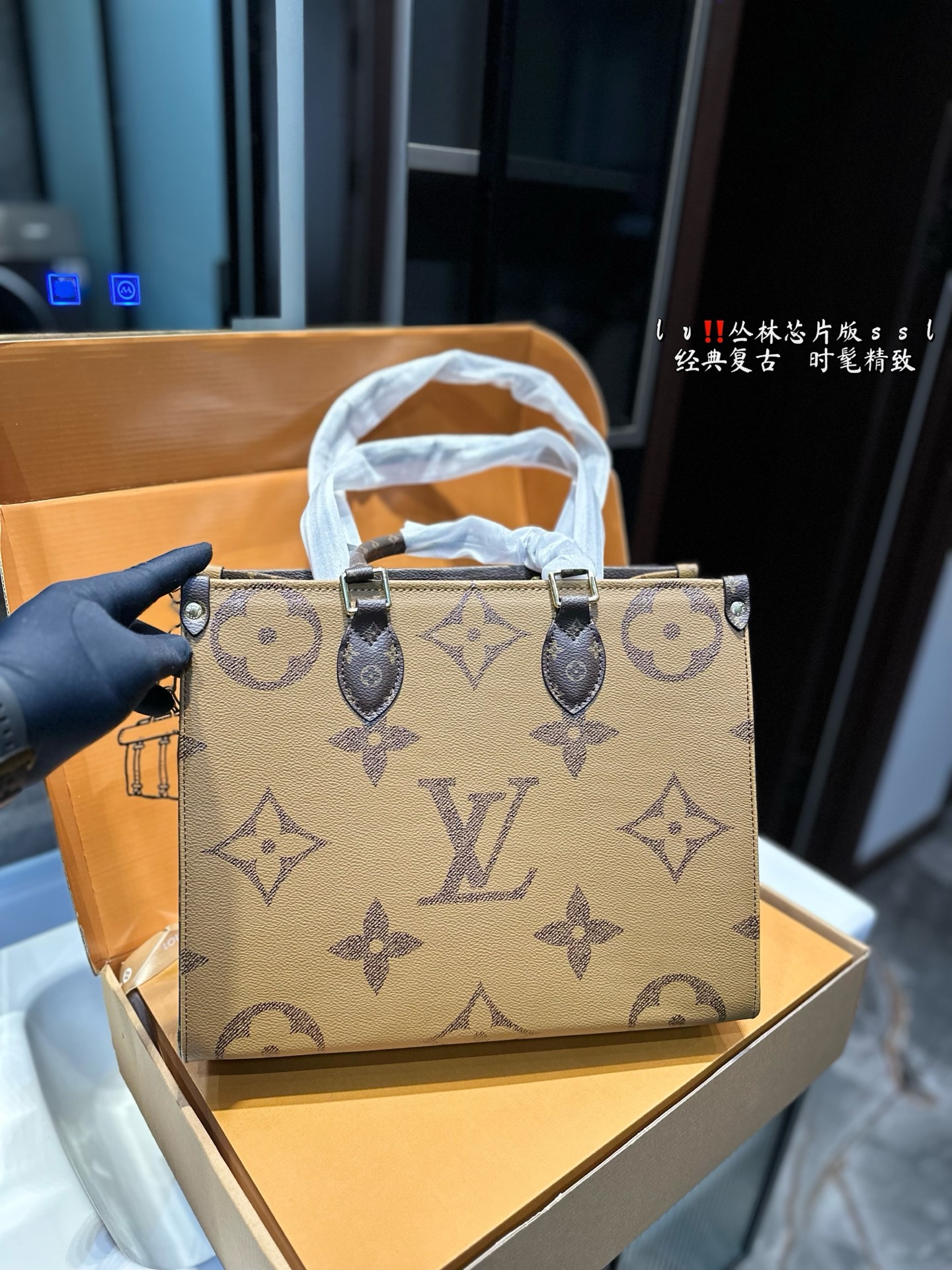 LV 爆款购物袋 丛林系列 购物袋 Mini Onthego 购物或周末出游 拎起 Onthego 手袋即刻出发 Lv 新款 购物袋大花新料拼色 每一面都有不同的颜色,简装