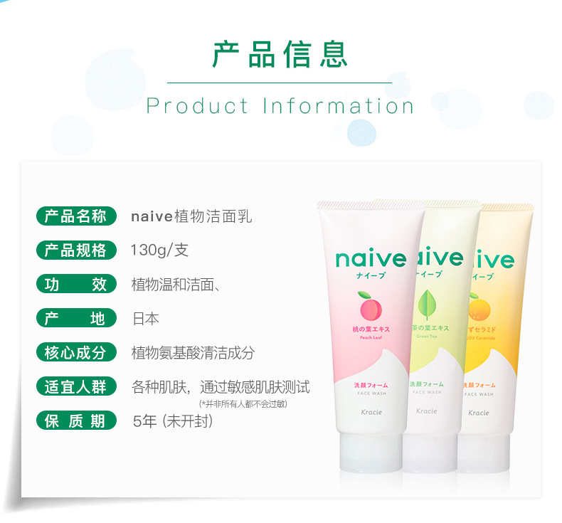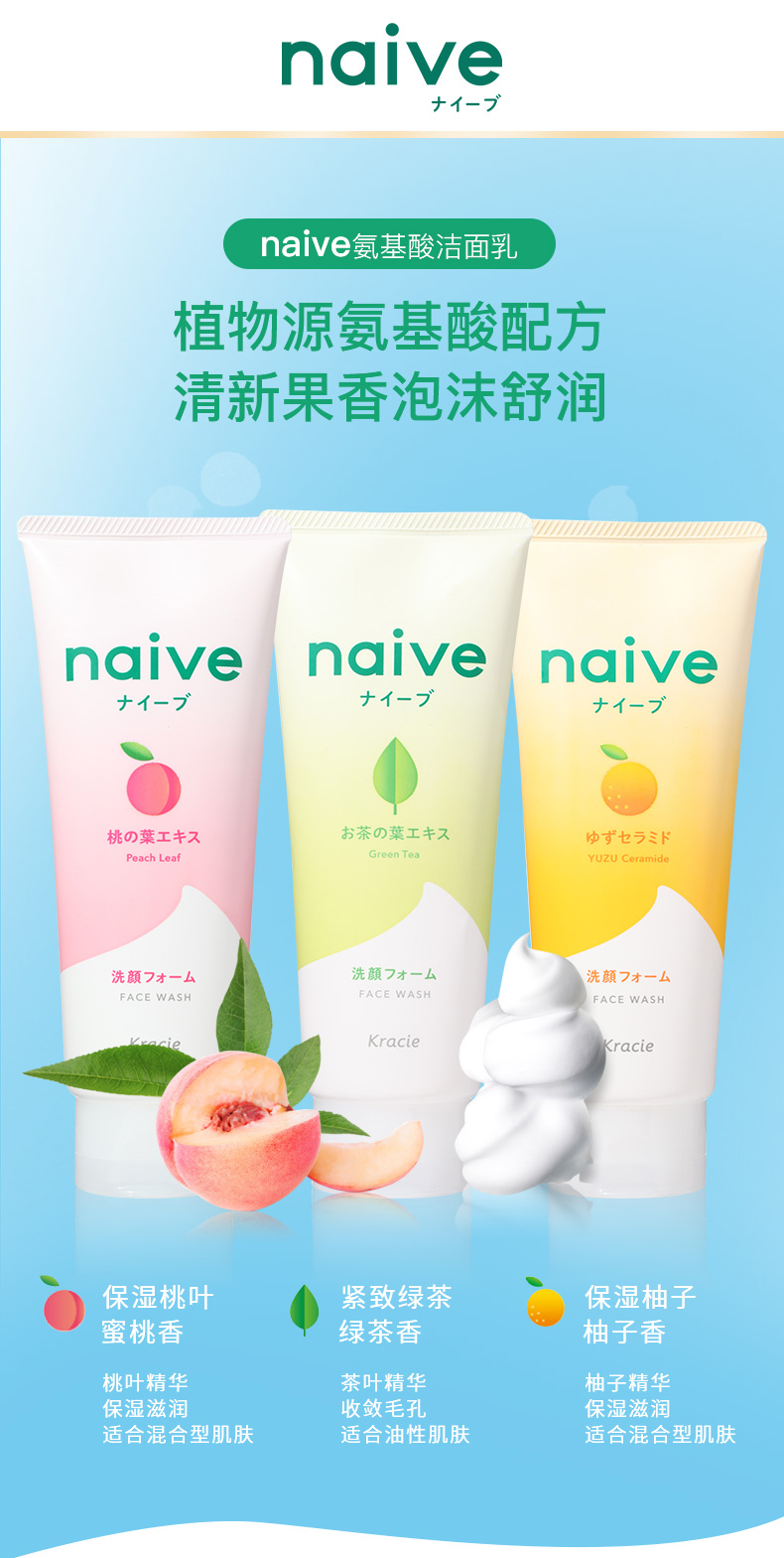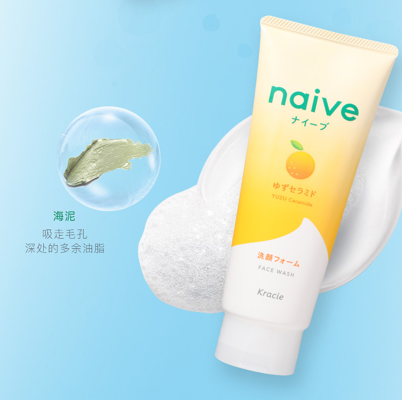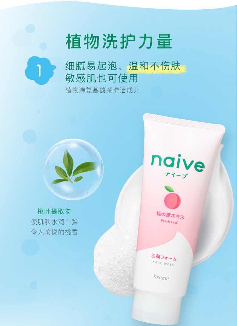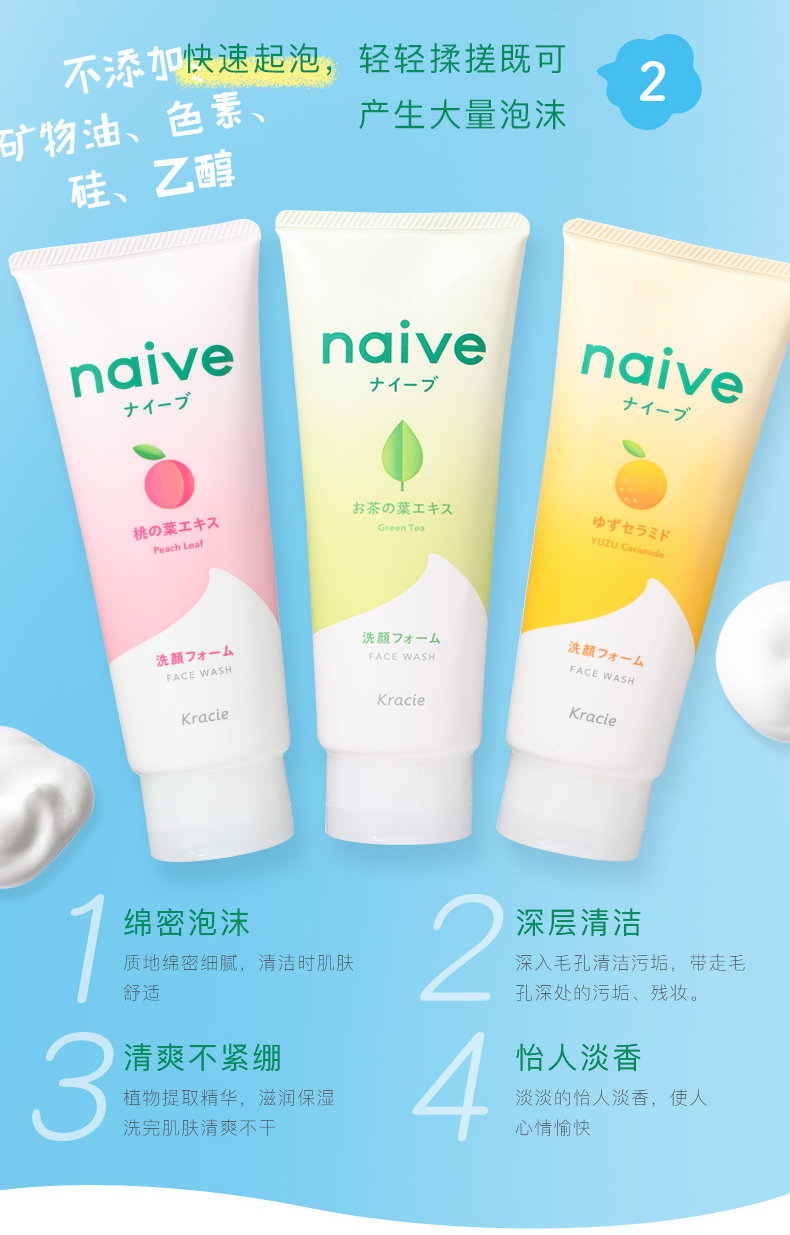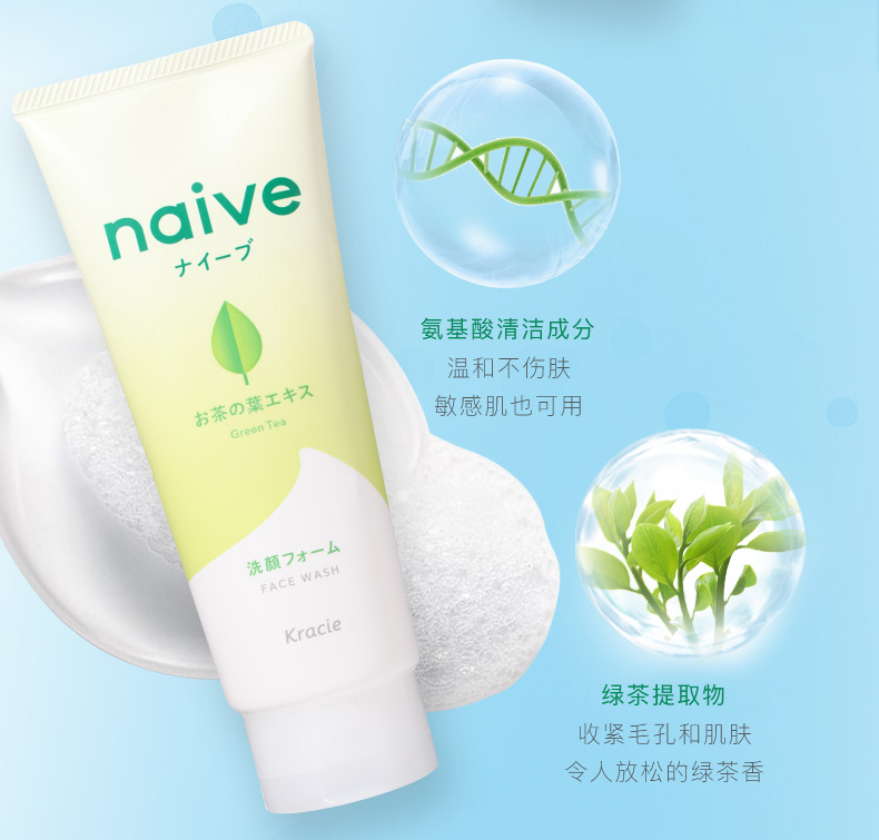 肌美精naive氨基酸泡沫洗面奶130g深层清洁收宿毛孔温和洁面