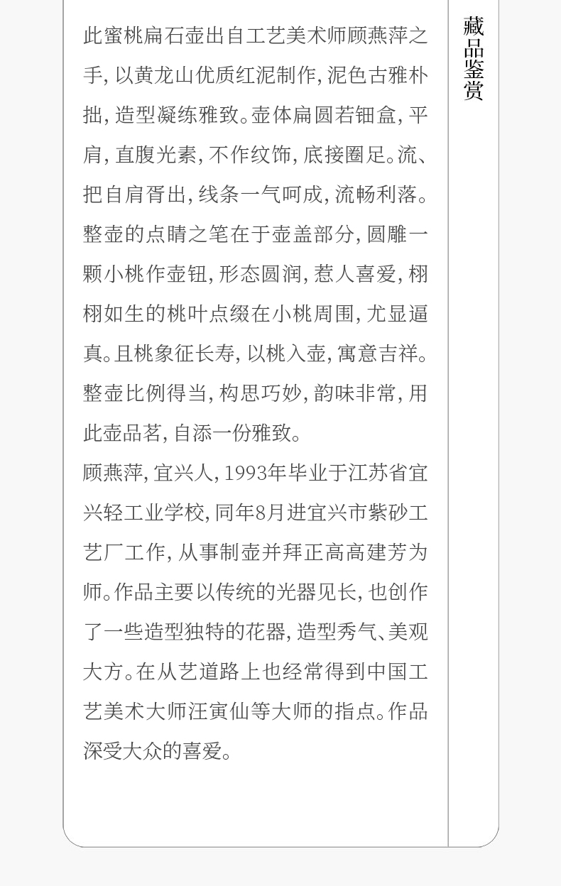 《蜜桃扁石壶》 顾燕萍 高级工艺美术师、知名中青年陶艺家