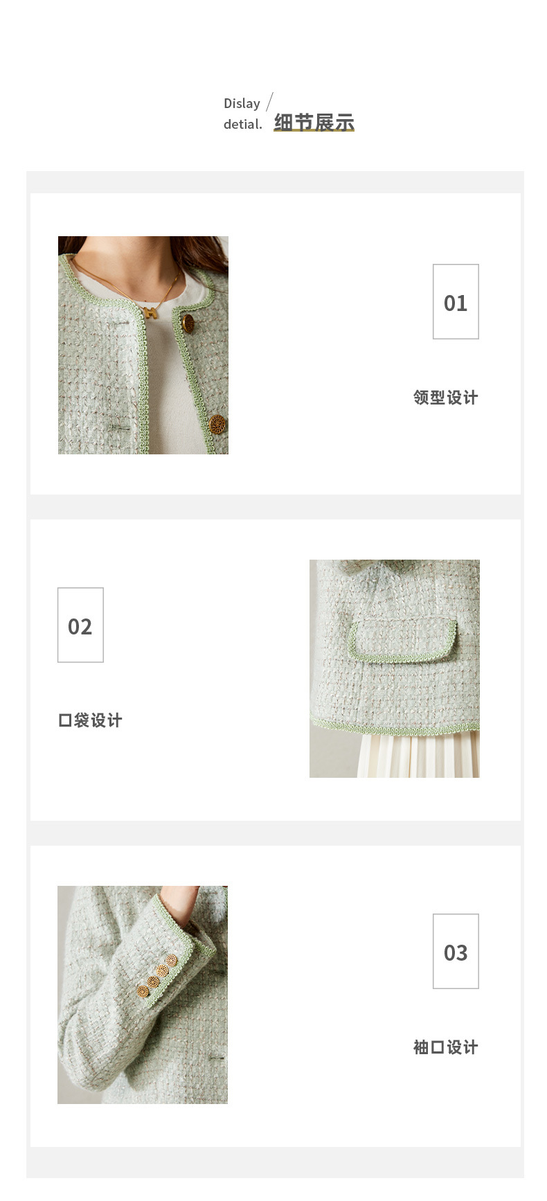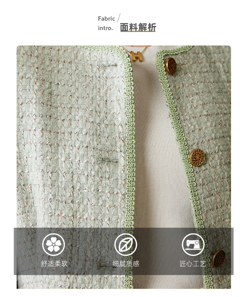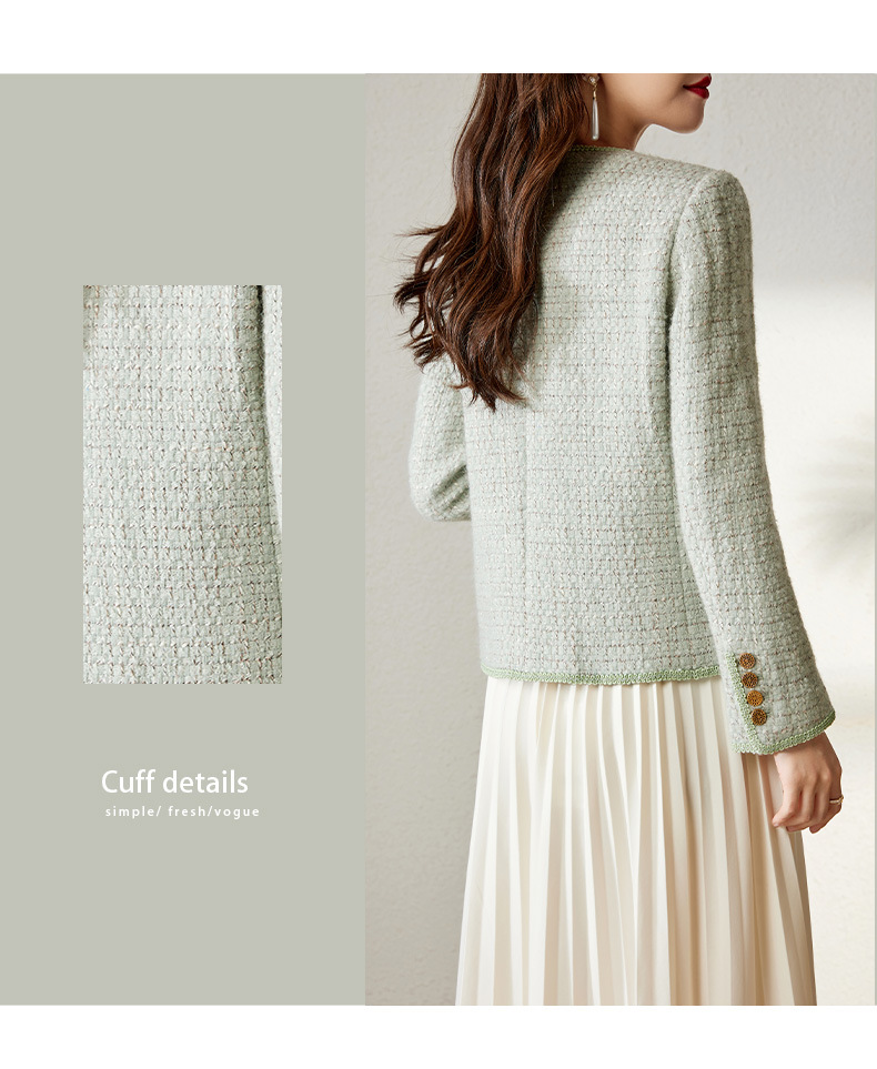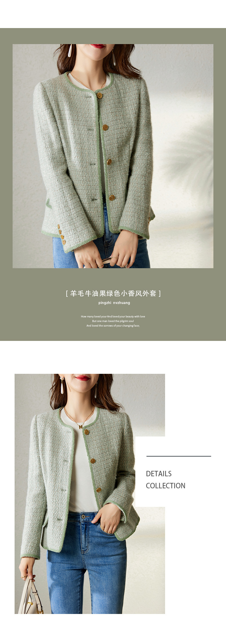 【高货ay】全新升级【铂金会员367/天猫499/差价132】(13514) 洛诗琳秋冬羊毛牛油果绿2024新款粗花呢小香风外套女