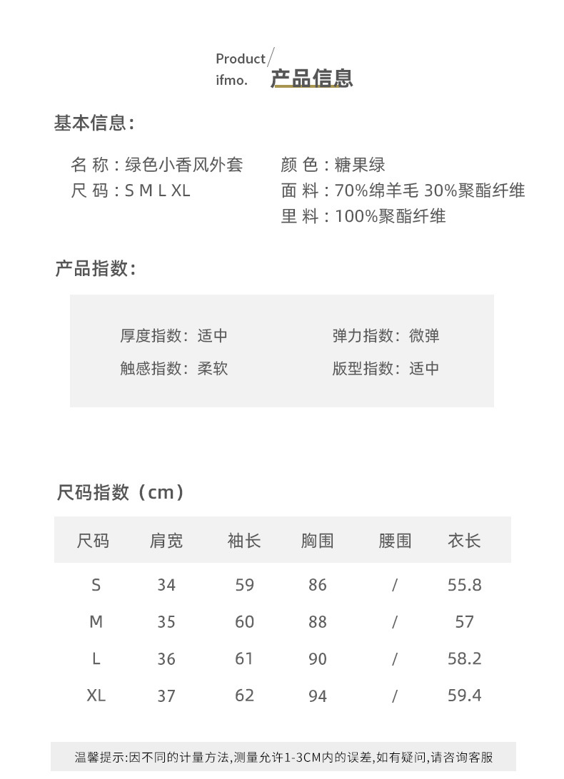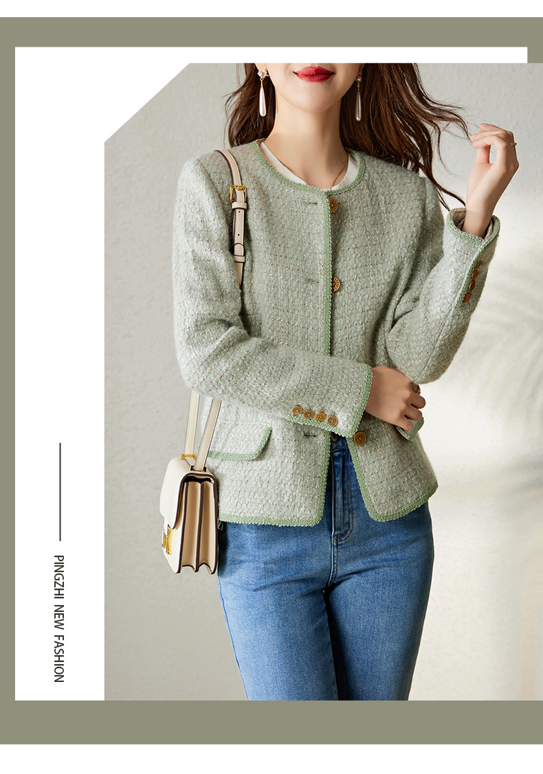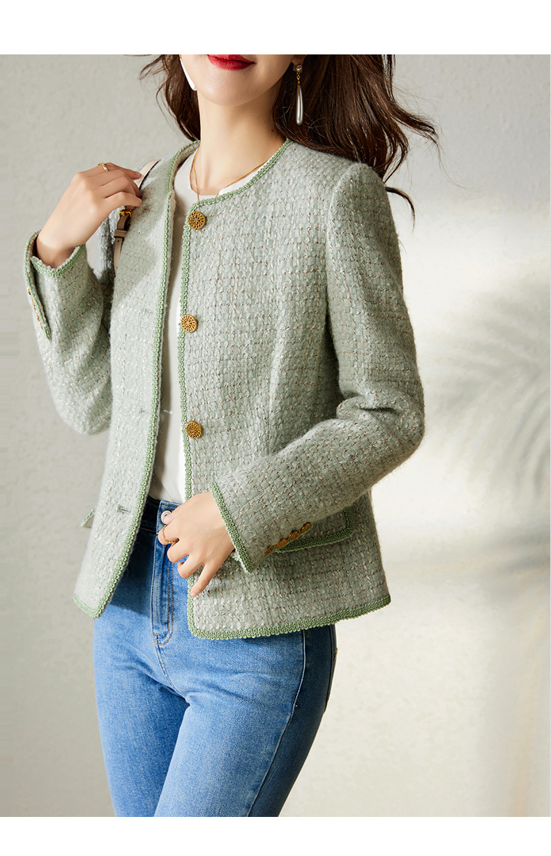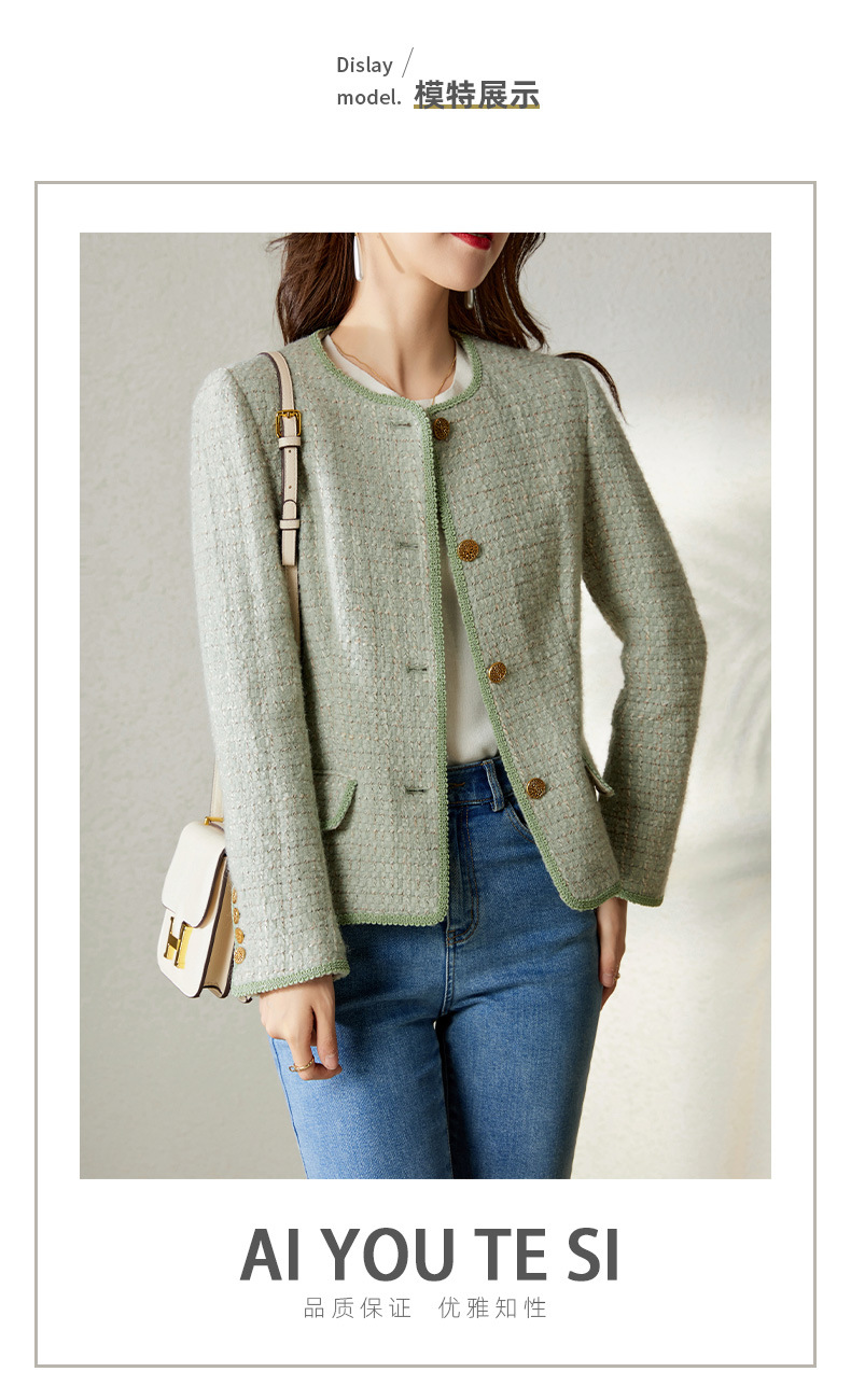 【高货ay】全新升级【铂金会员367/天猫499/差价132】(13514) 洛诗琳秋冬羊毛牛油果绿2024新款粗花呢小香风外套女