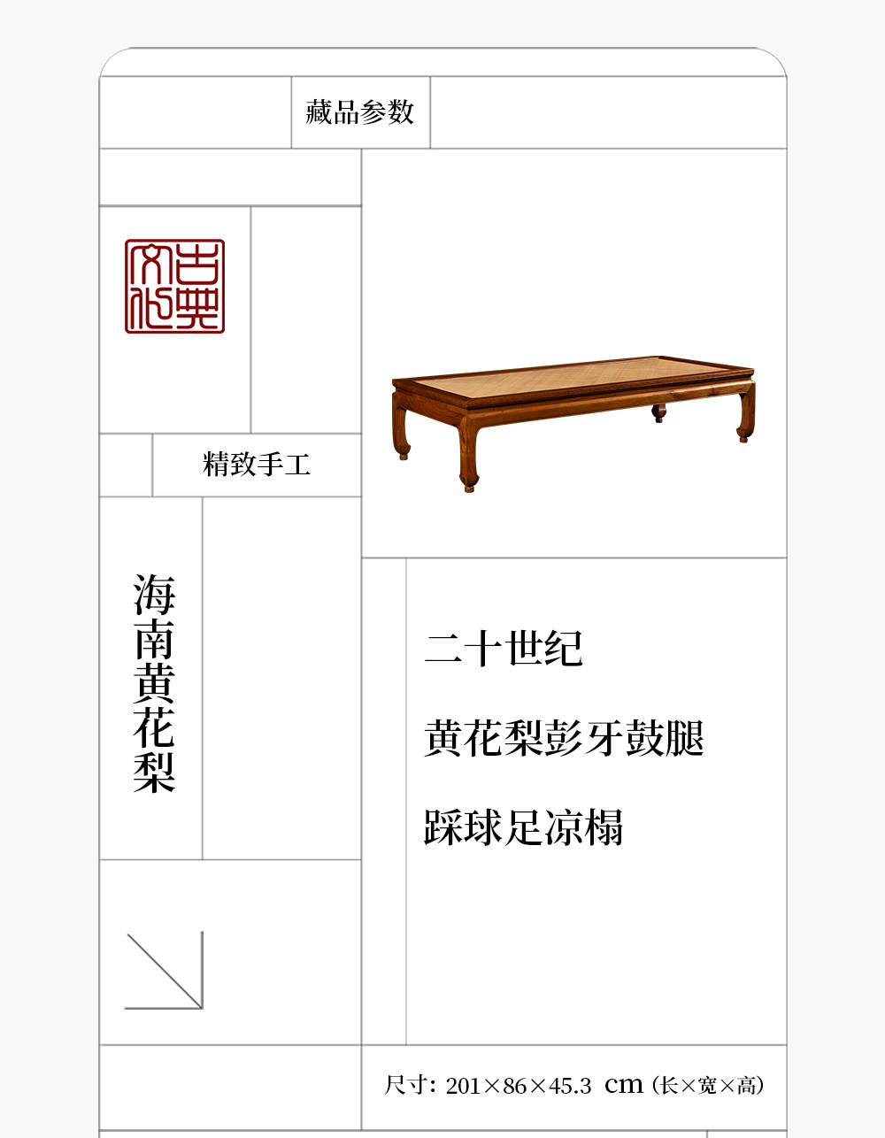二十世纪 黄花梨彭牙鼓腿踩球足凉榻