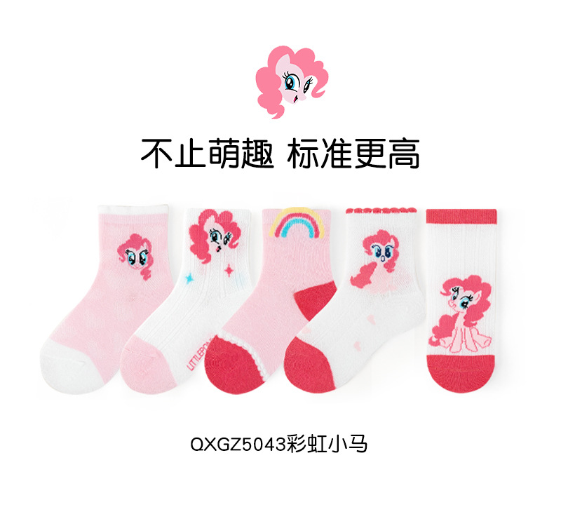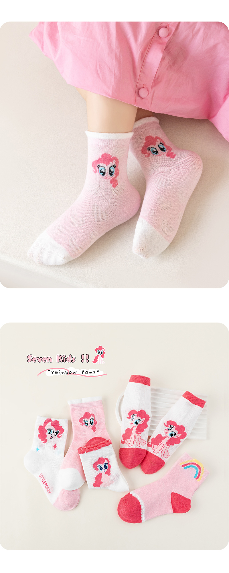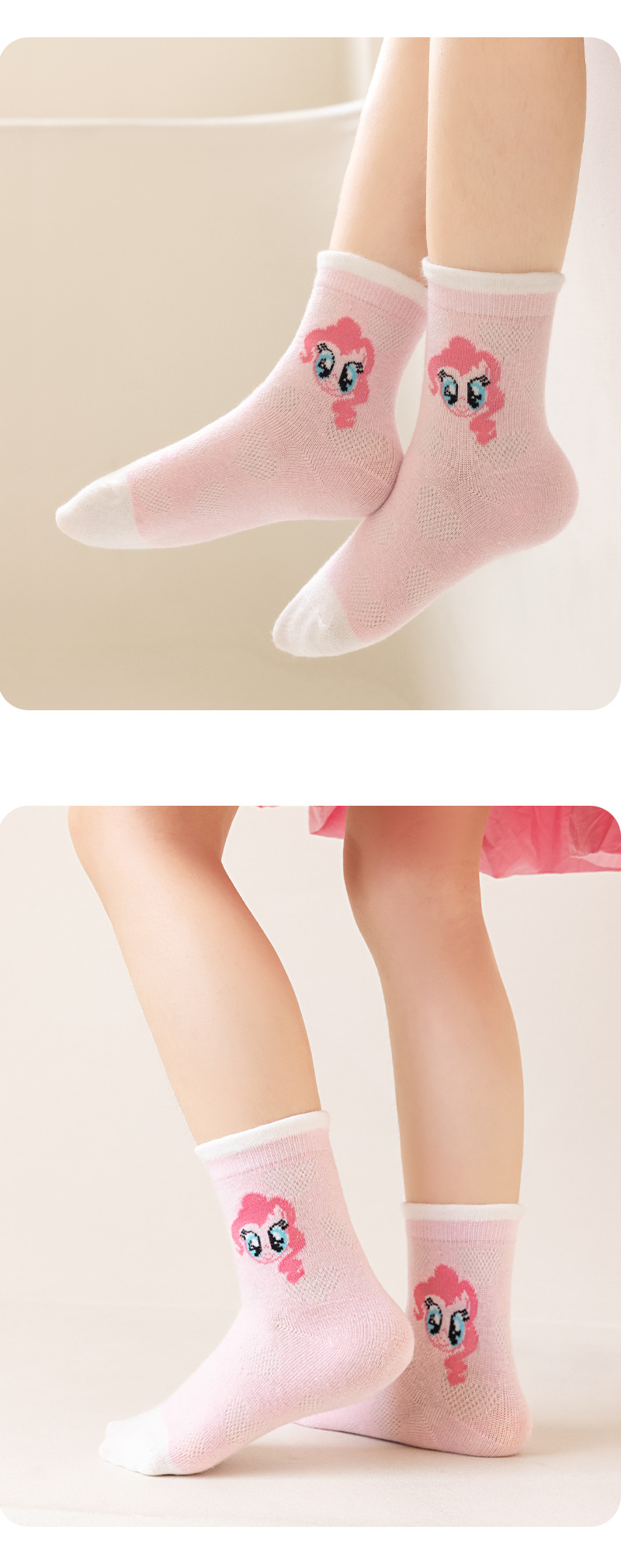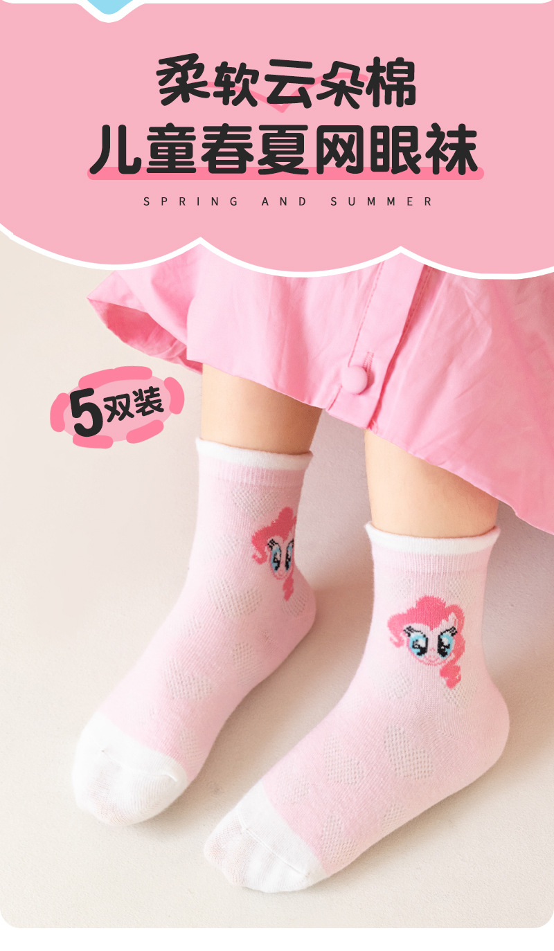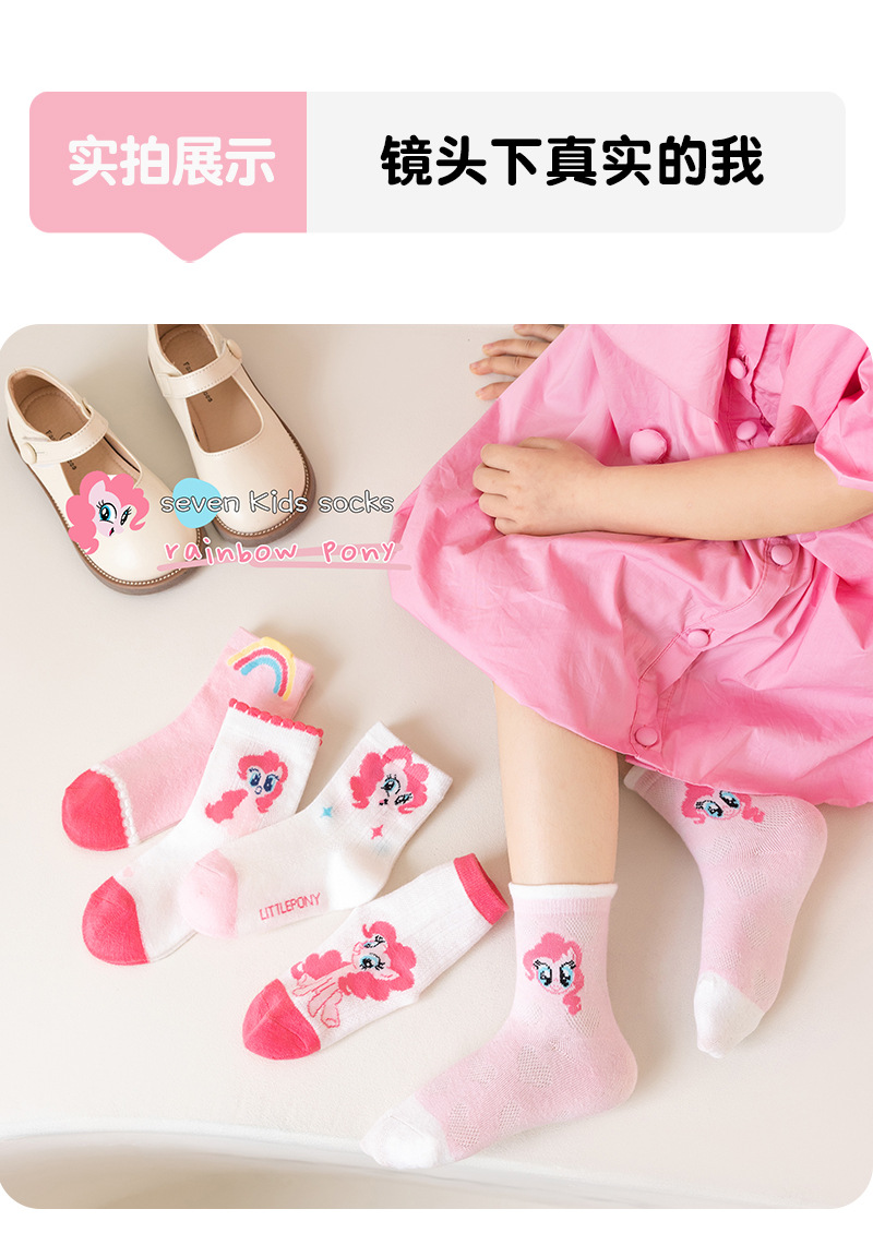 【柔软云朵棉,儿童春夏网眼袜】儿童袜子 2025春夏季新款 网眼卡通粉色 彩虹小马女童中筒袜-QQ