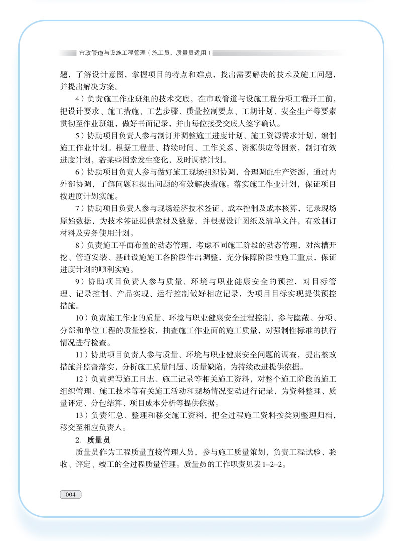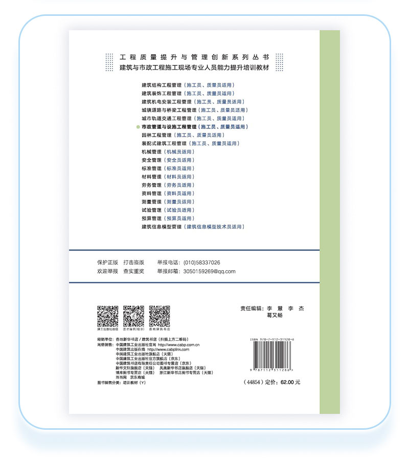 书名:市政管道与设施工程管理(施工员、质量员适用)
