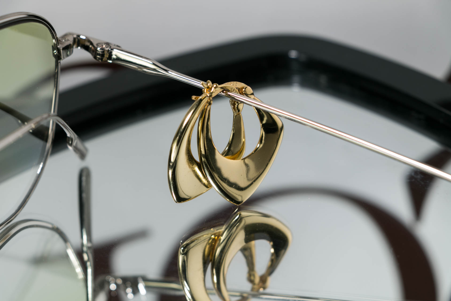 轻盈,佩戴时会晃动,浅金色提亮脸部肤色,是一件可以轻松搭配的耳饰。