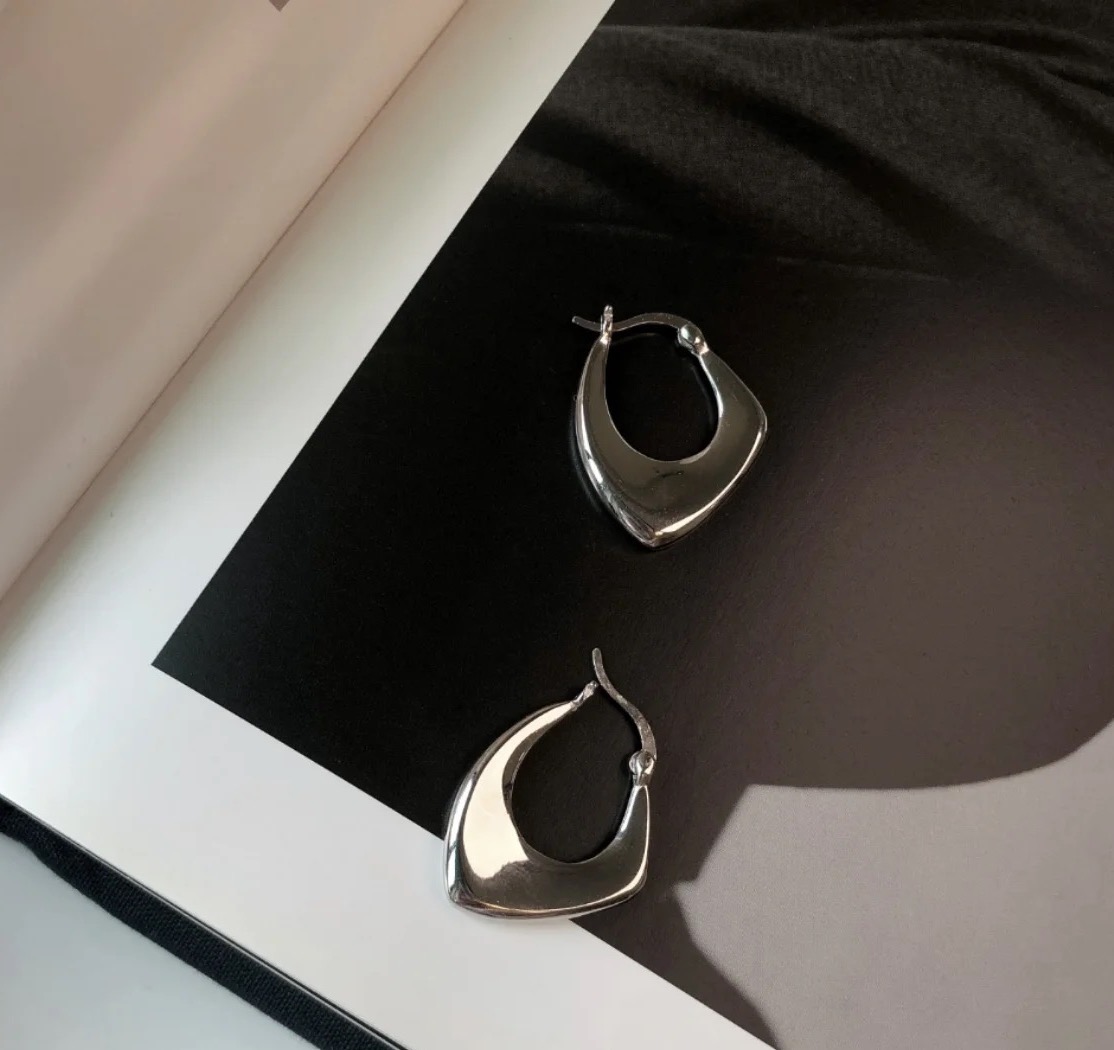 一侧是方,一侧是圆,倾斜的,不规则耳环,灵动优雅。