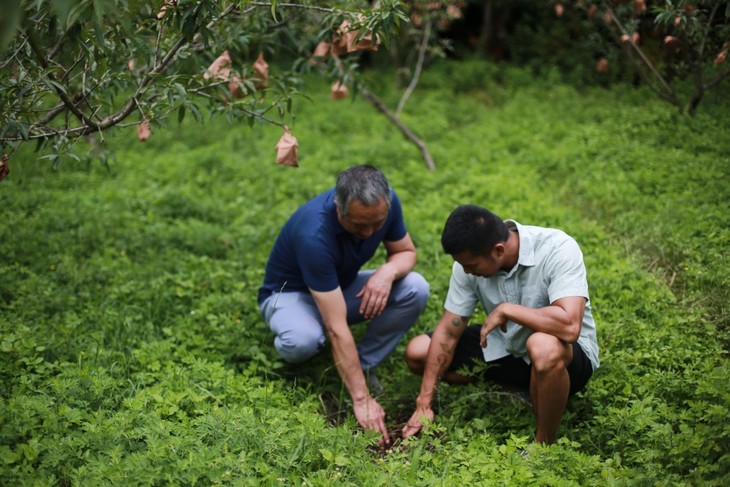 晚秋红心脆桃采用种草补肥、割草还田等最传统的农法,全程只施用张大哥鸡场的有机鸡粪和腐殖土发酵的生物有机肥料。