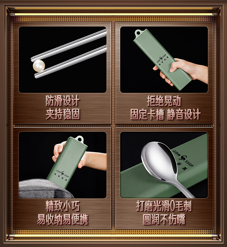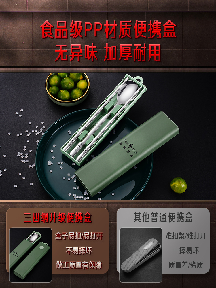有了餐盘,餐具也给大家安排上,花爸挑选了316不锈钢材质的筷子和勺子,安全又轻便,还自带了盒子,固定卡槽,带出门都不会摇摇晃晃发出噪音,适合带饭的学生、打工人或者外出旅行、野餐的人群。