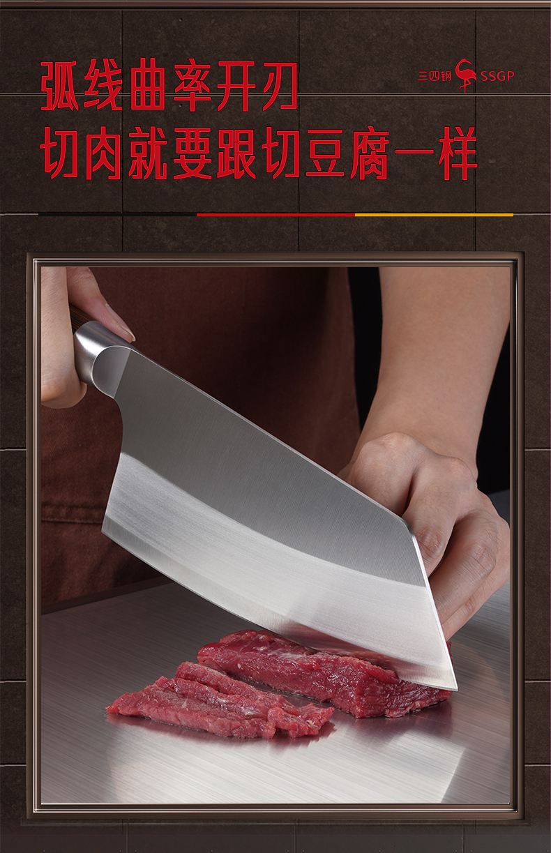1.刀刃锋利,轻松切肉、切蔬果、拍蒜,比较省力,不推荐砍剁