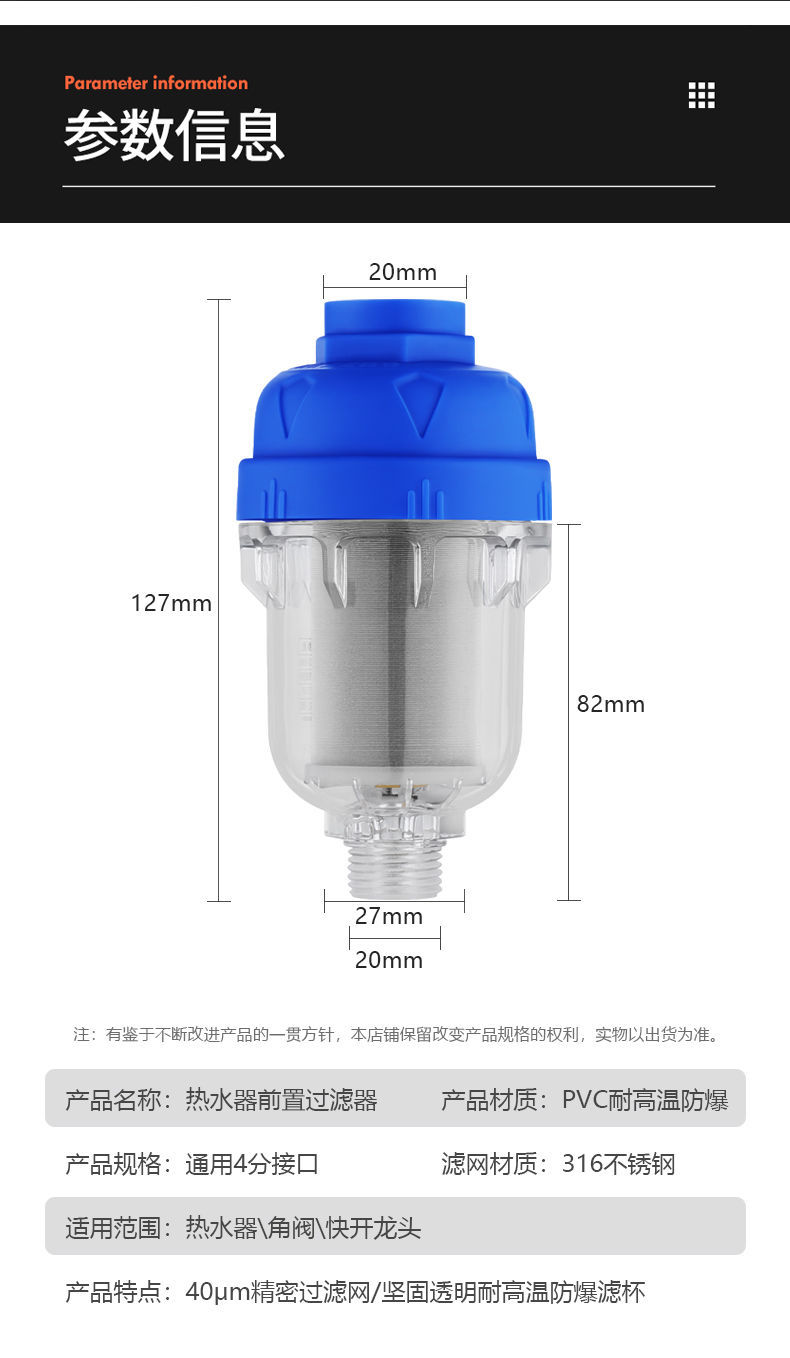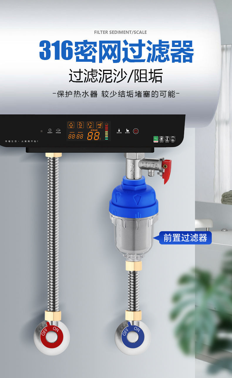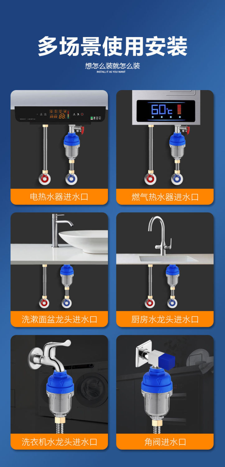 家用电热水器前置过滤器自来水龙头洗衣机花洒水垢滤水净水器配件