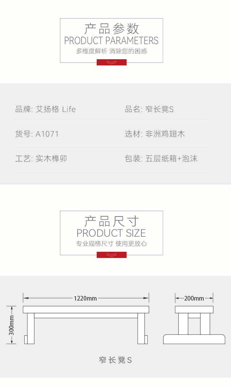 艾扬格 Life 窄长凳S码 (鸡翅木)/瑜伽辅具