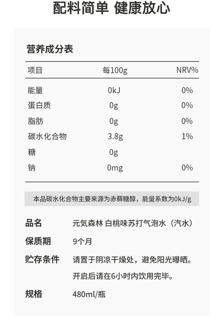 元气森林苏打气泡水白桃味480ml*15瓶/箱