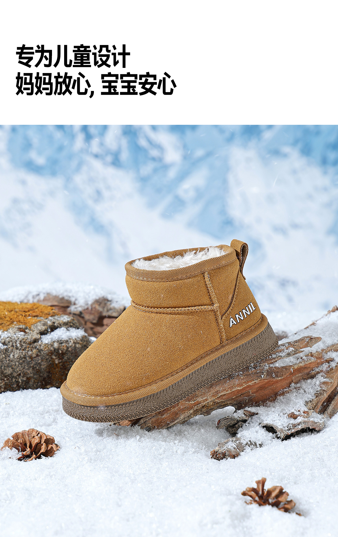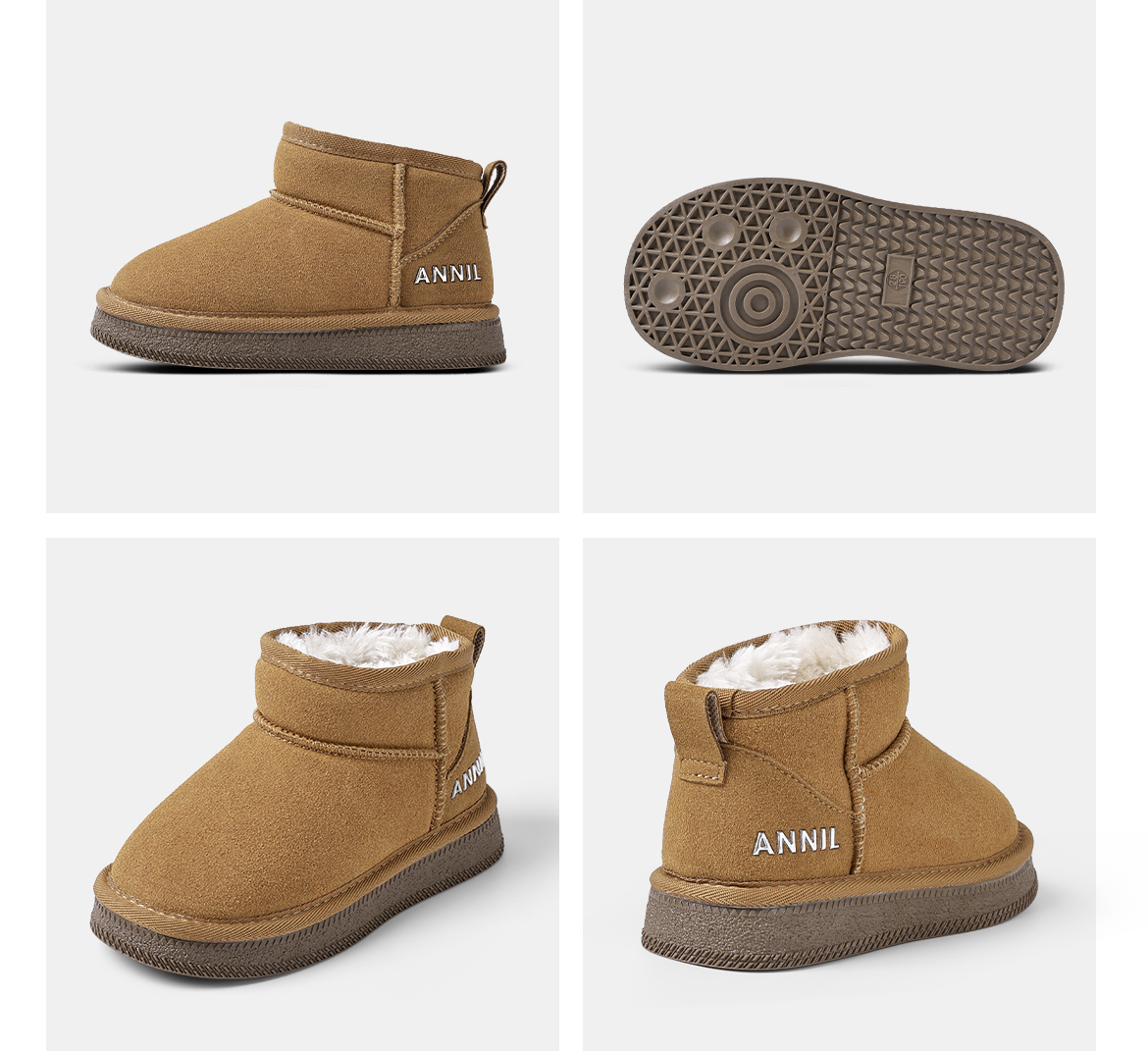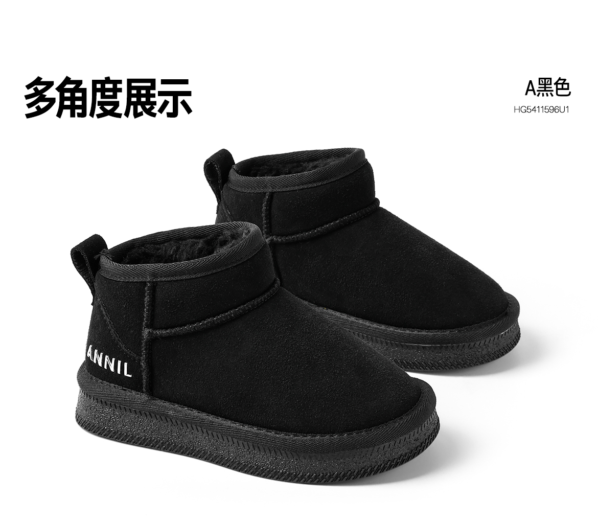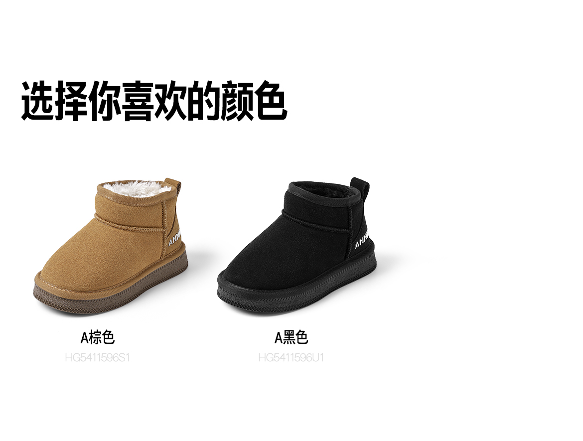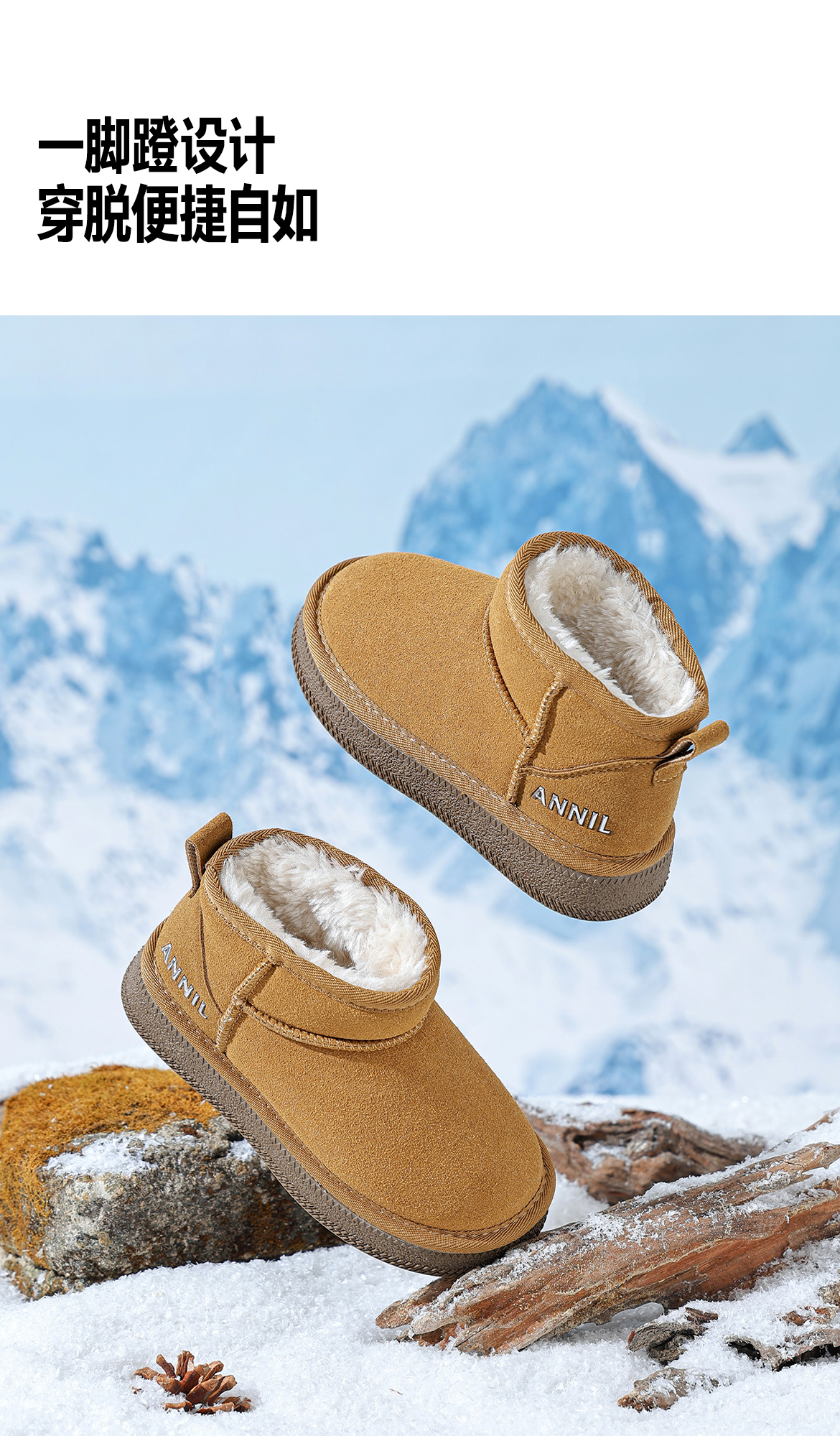 ANNIL/安奈儿童鞋女童可爱加绒雪地靴一体厚底增高冬季加厚棉童鞋HG5411596