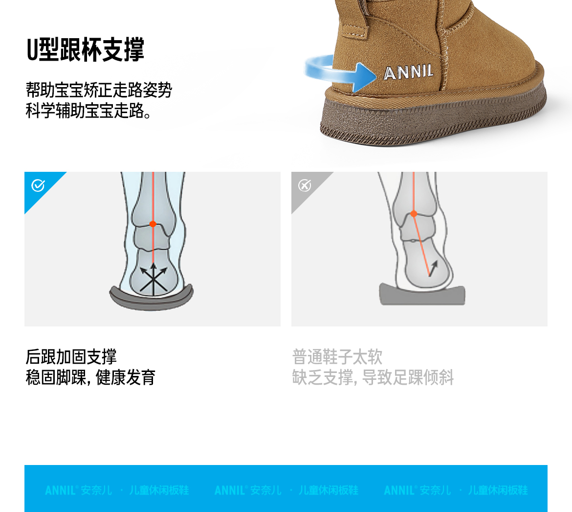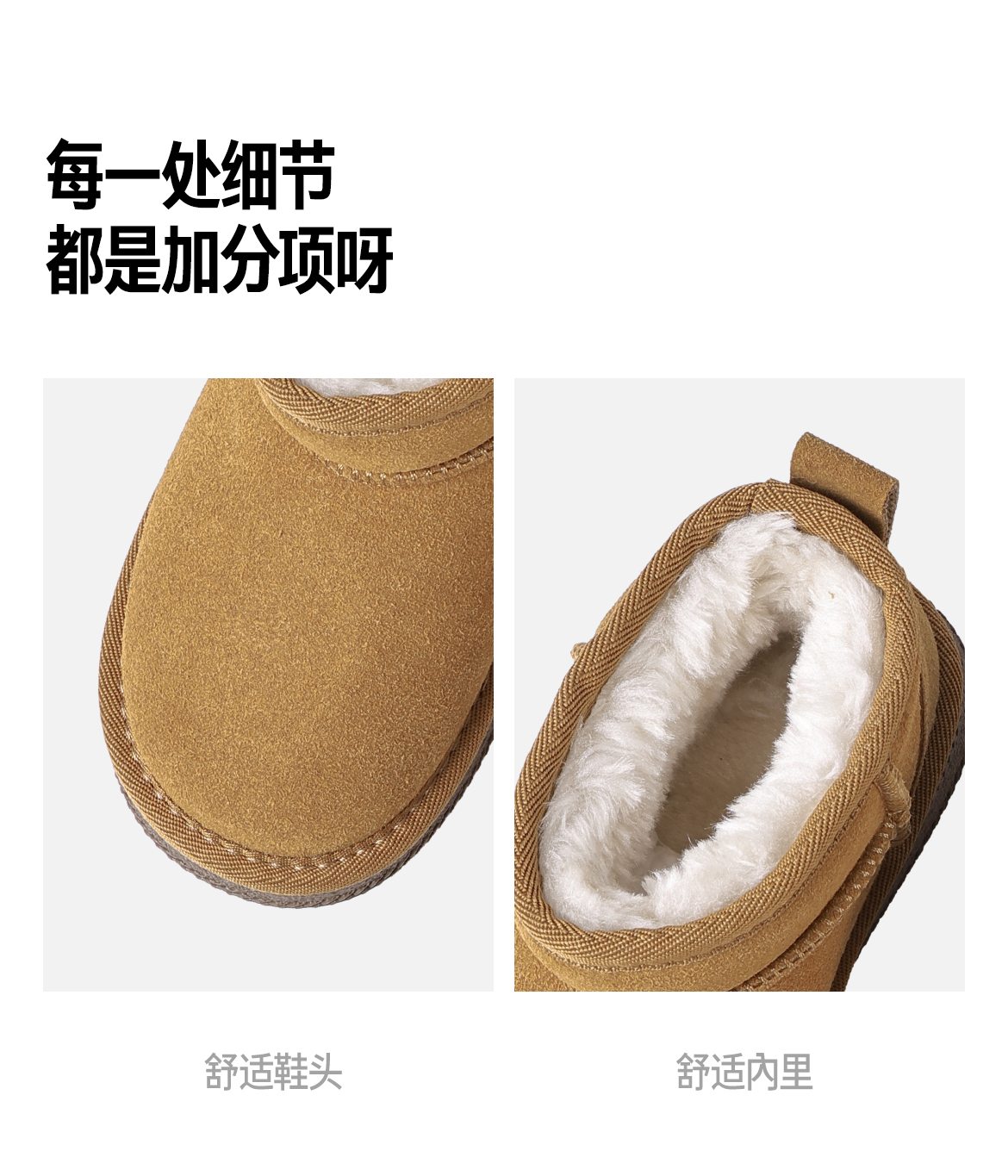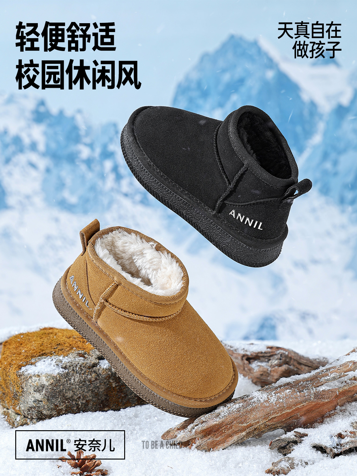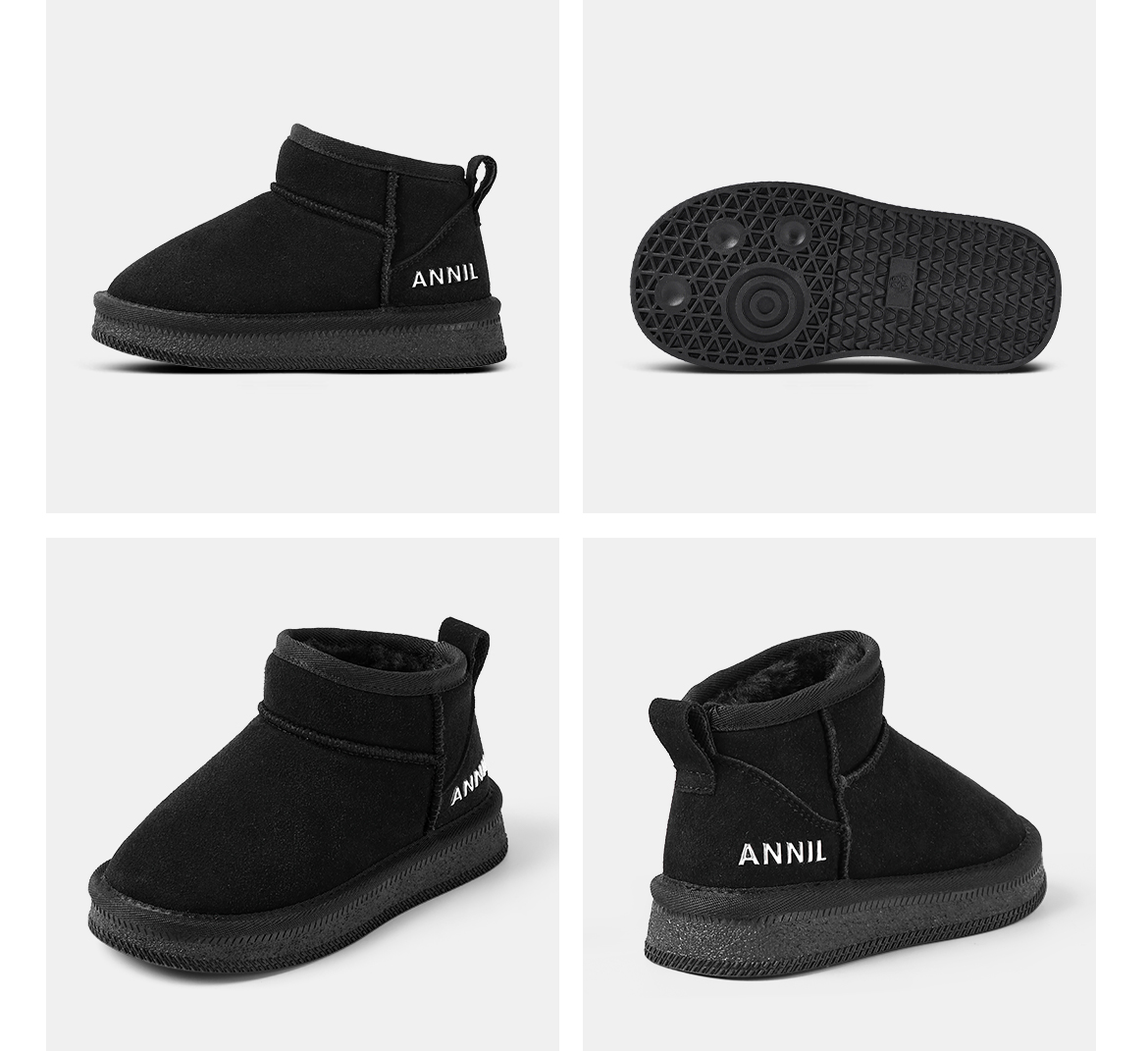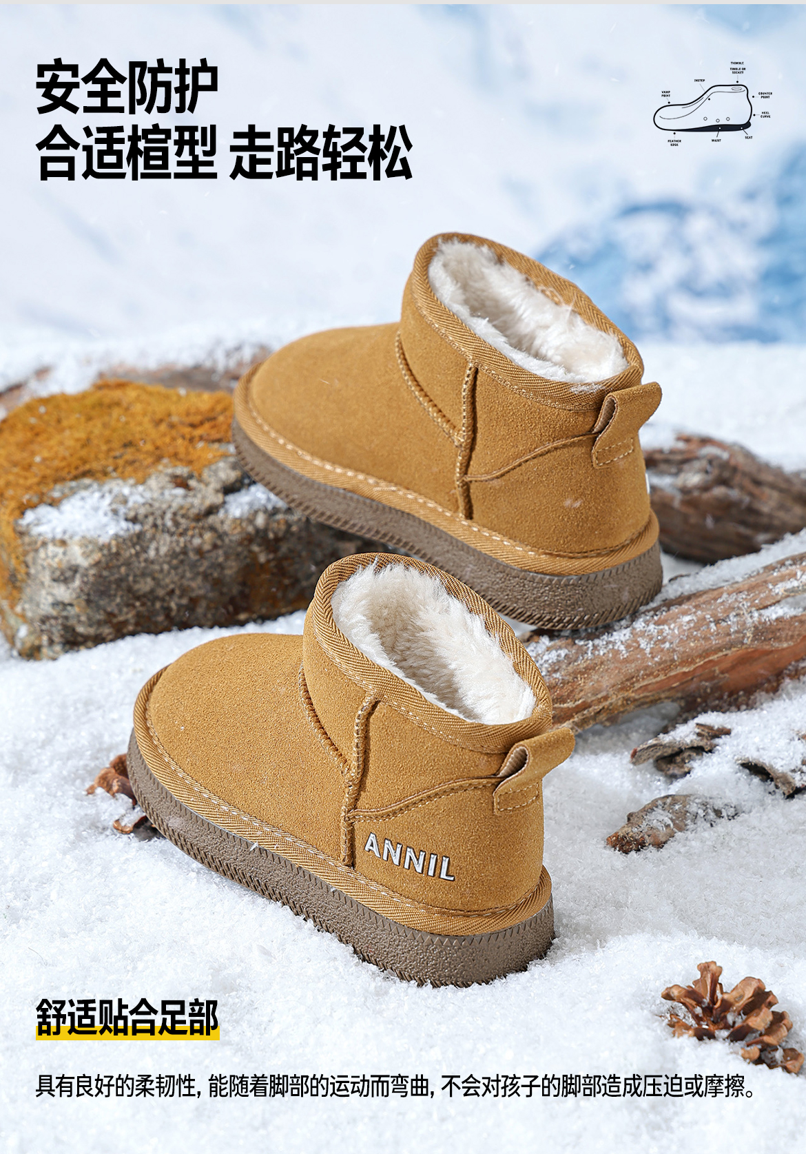 ANNIL/安奈儿童鞋女童可爱加绒雪地靴一体厚底增高冬季加厚棉童鞋HG5411596
