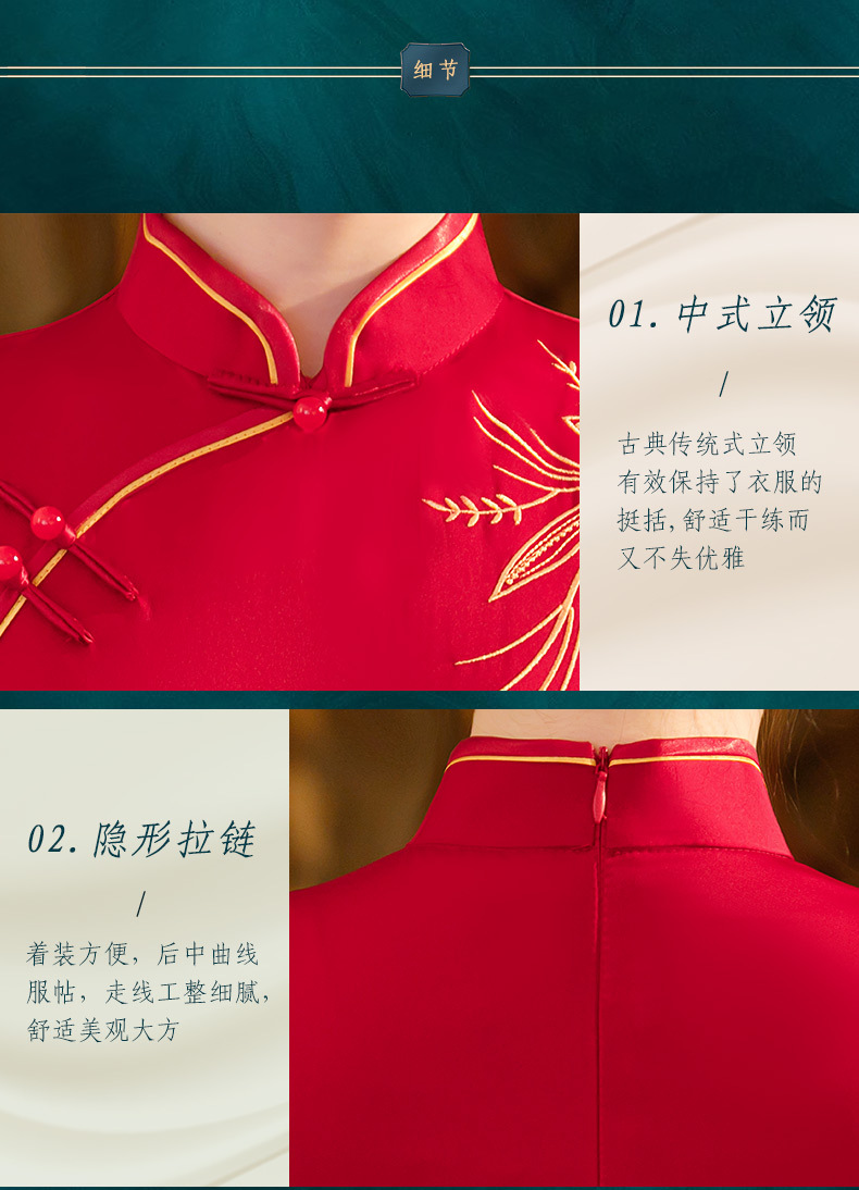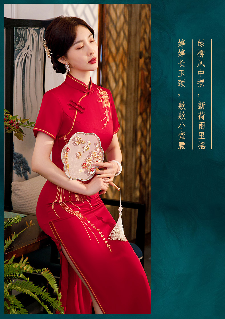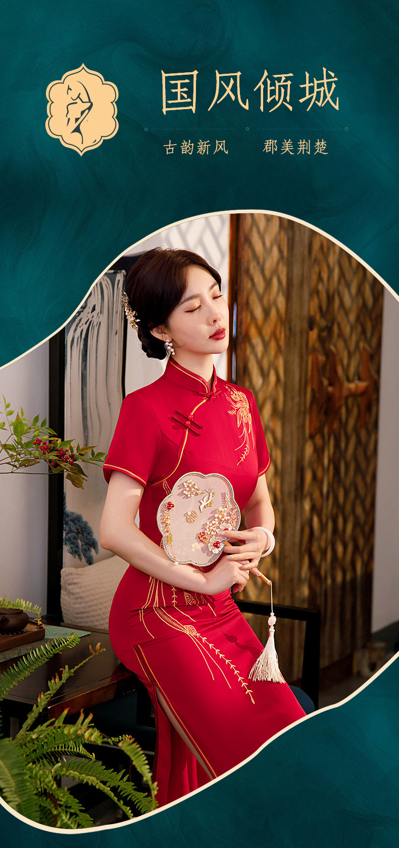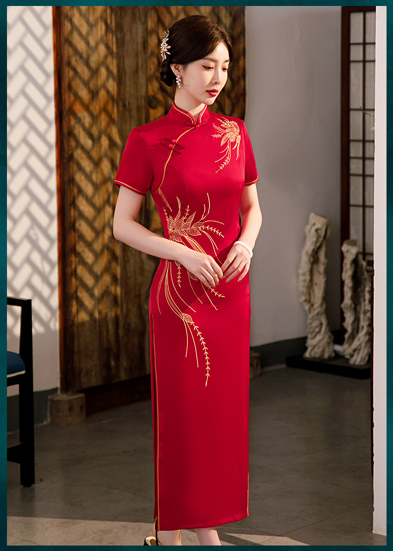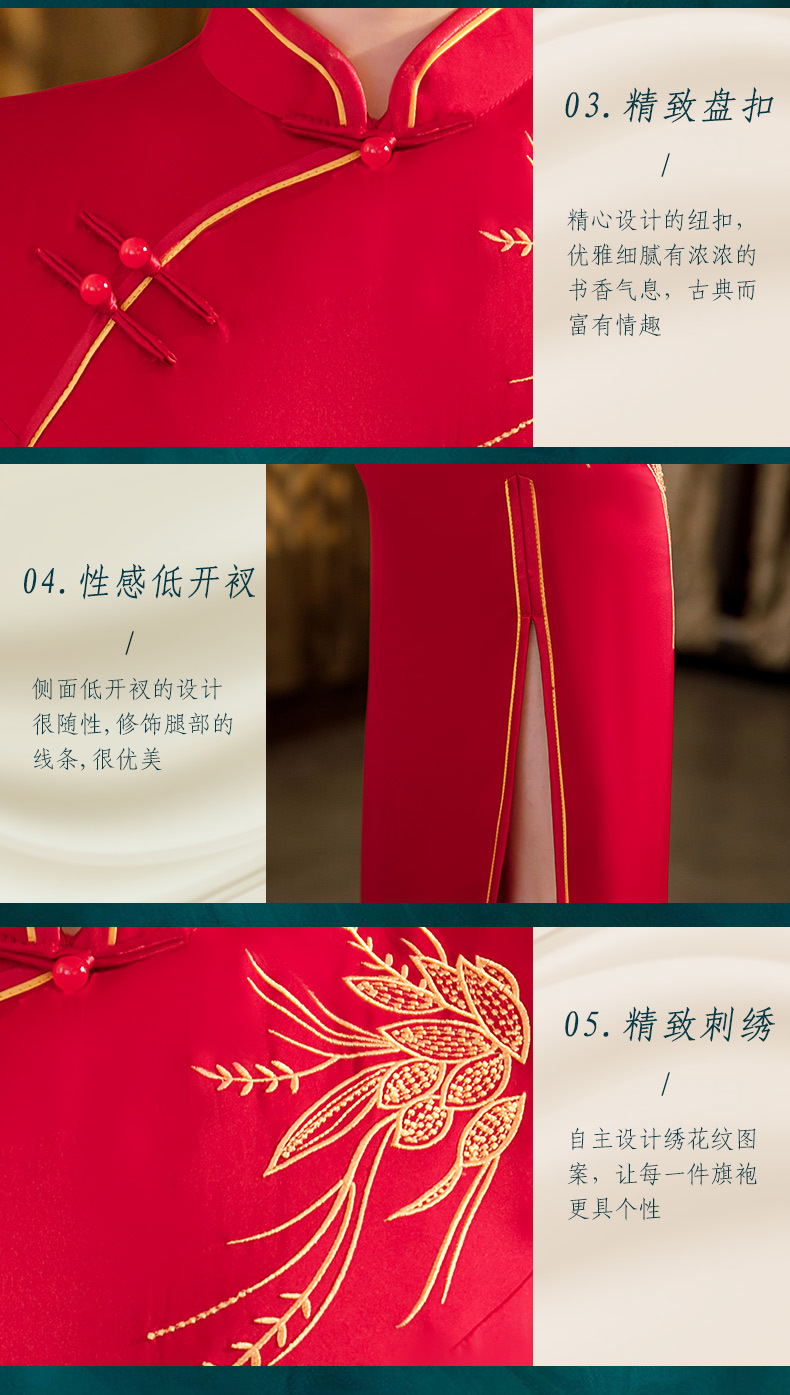 长款修身真丝缎旗袍走秀红色宴会礼服ST-C3016