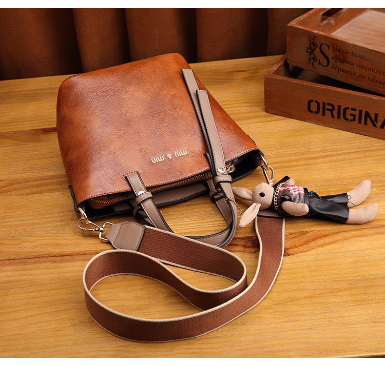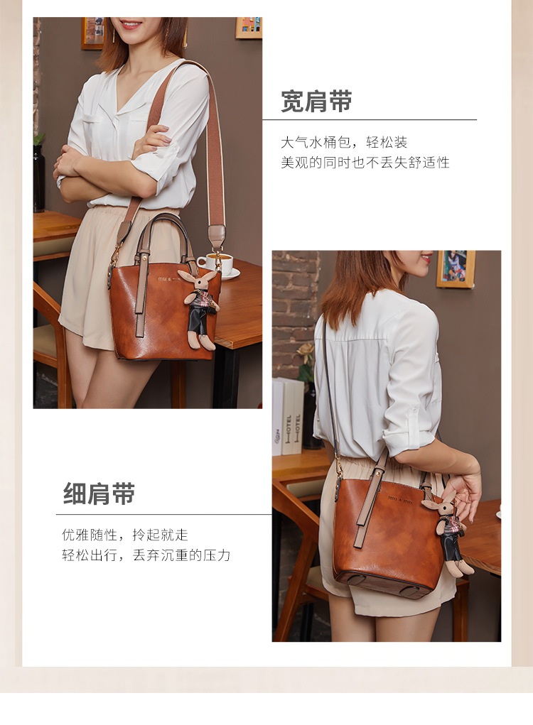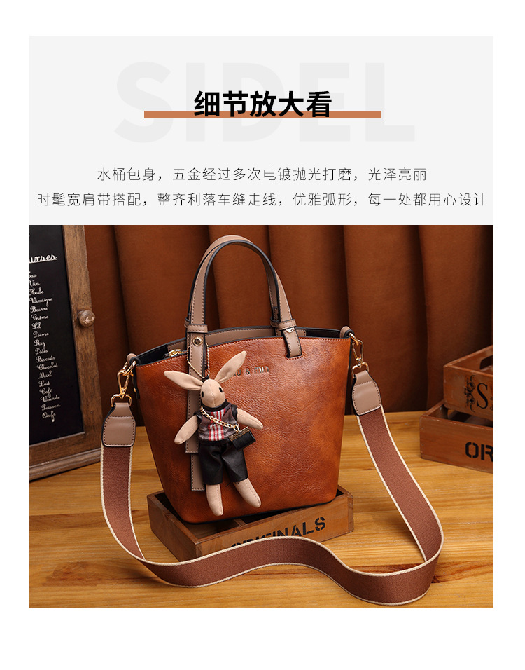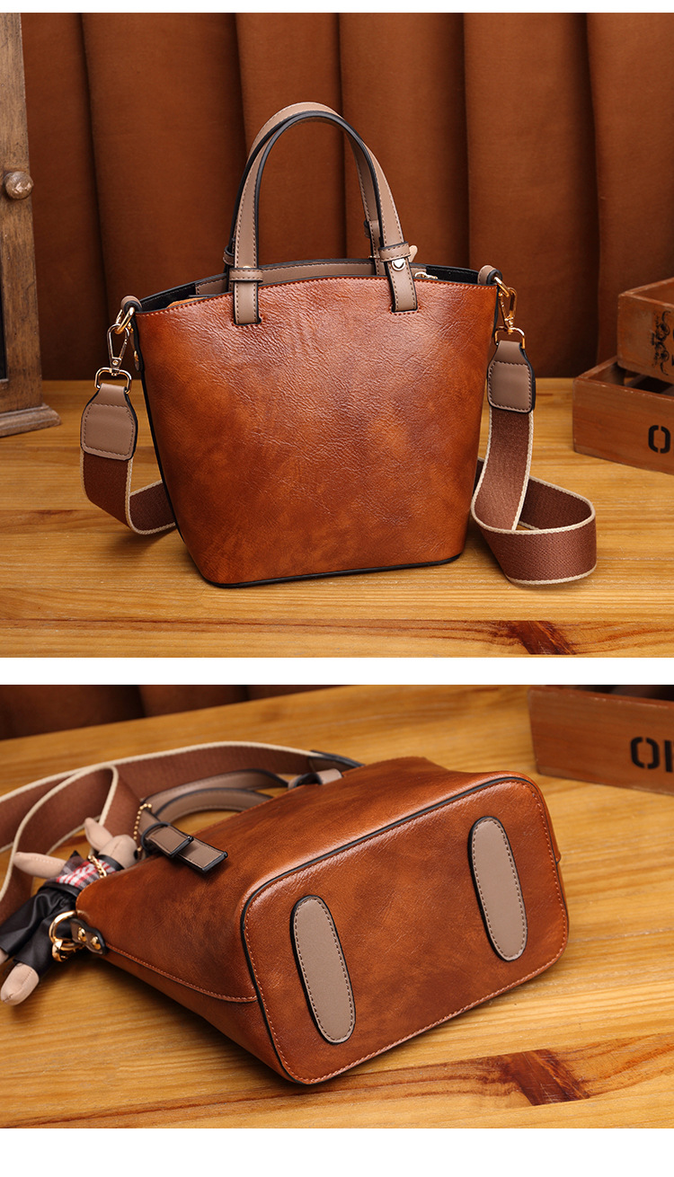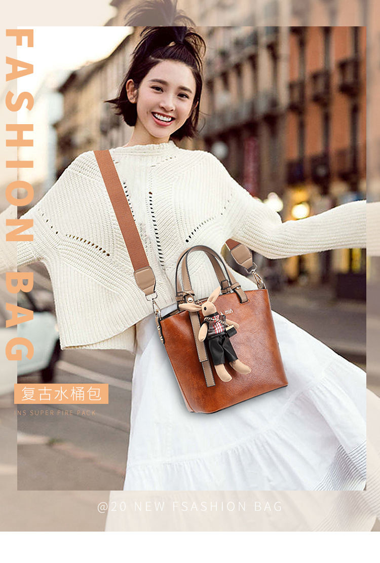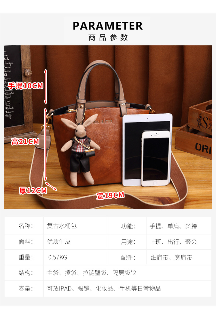 丁摩 真皮小包包女韩版百搭复古斜挎手提单肩水桶包大容量5ZF-3173