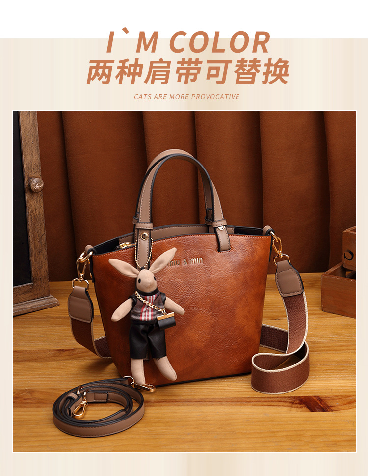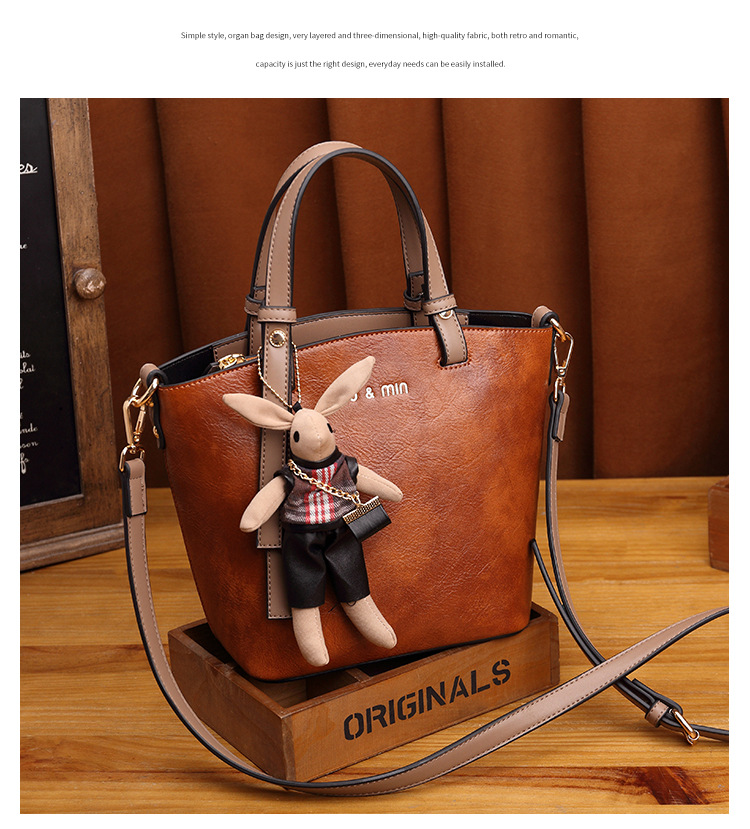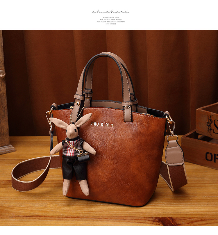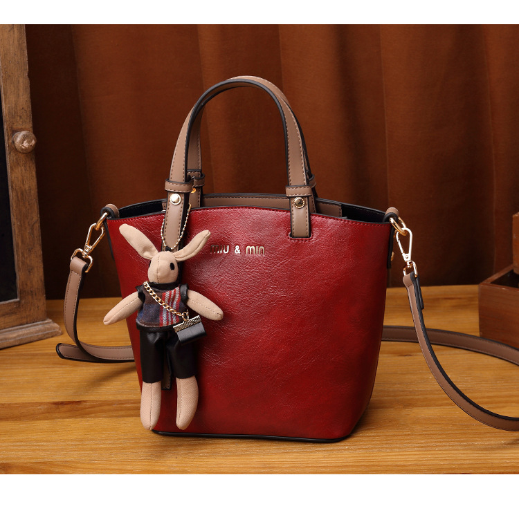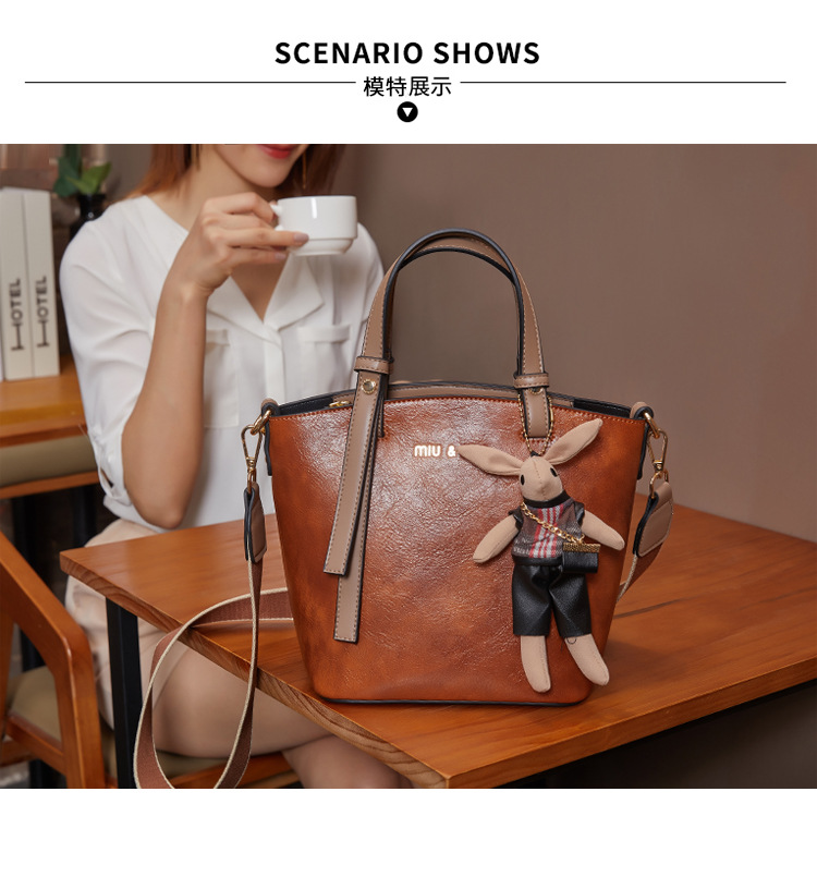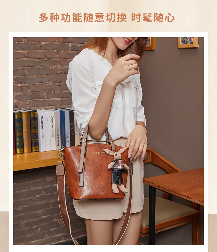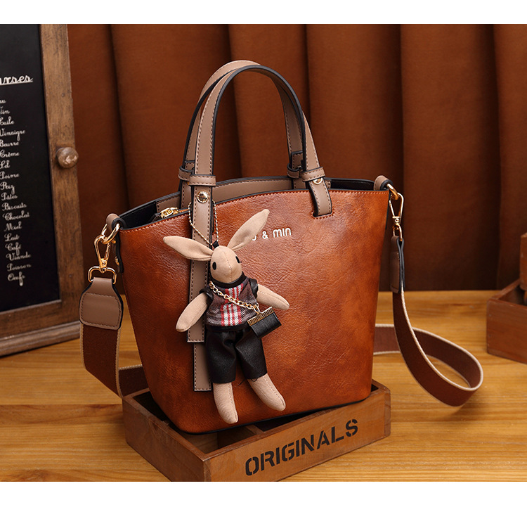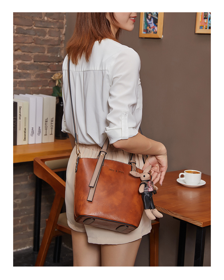 丁摩 真皮小包包女韩版百搭复古斜挎手提单肩水桶包大容量5ZF-3173