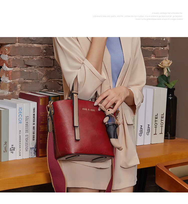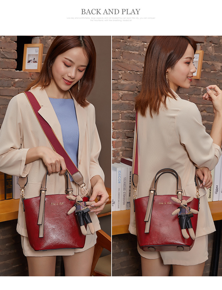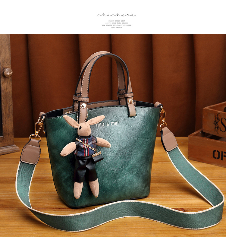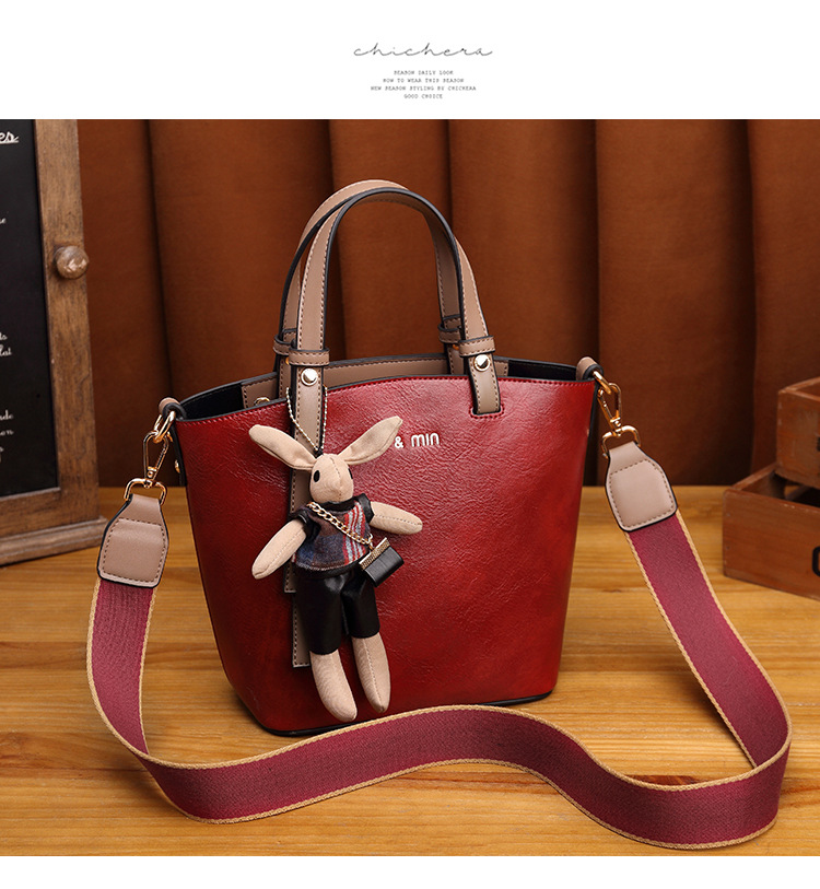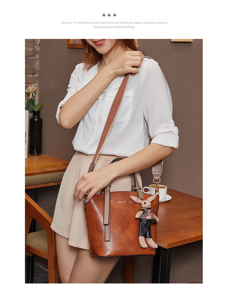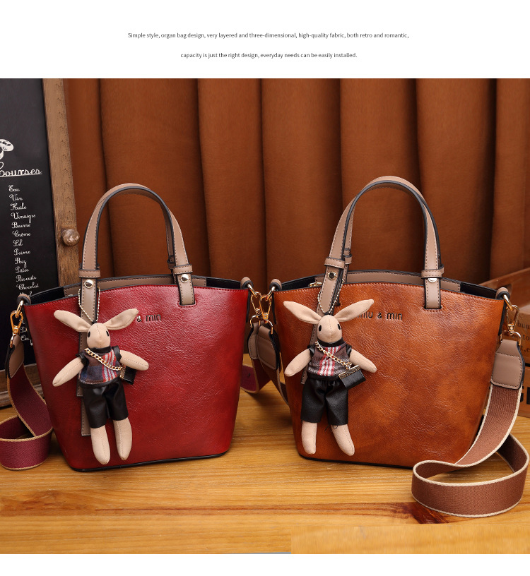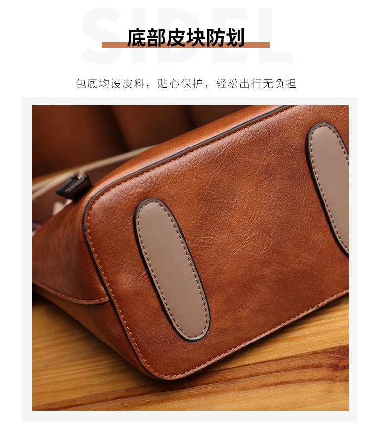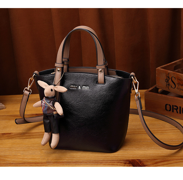 丁摩 真皮小包包女韩版百搭复古斜挎手提单肩水桶包大容量5ZF-3173