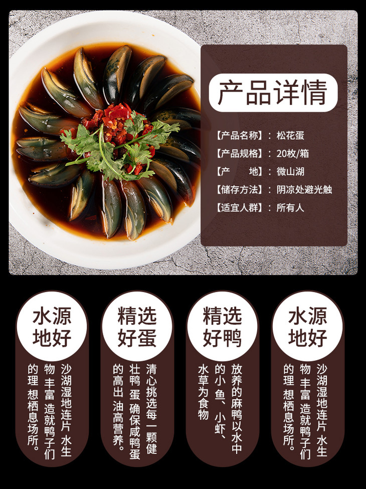 【济宁·微山湖】土琵琶 微山湖特产 松花蛋无铅特产 20枚精品礼盒装溏心糖麻鸭鸭蛋变蛋特大皮蛋