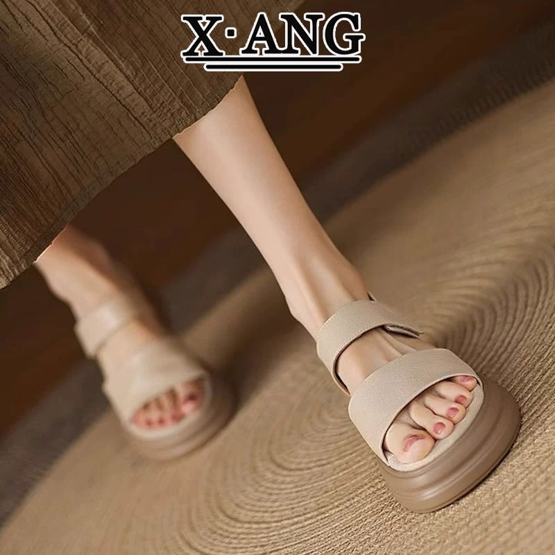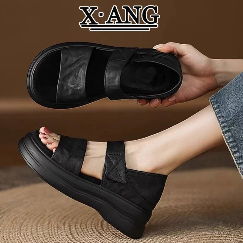 超软底头层牛皮凉鞋,魔术贴休闲沙滩罗马女鞋LJX-568