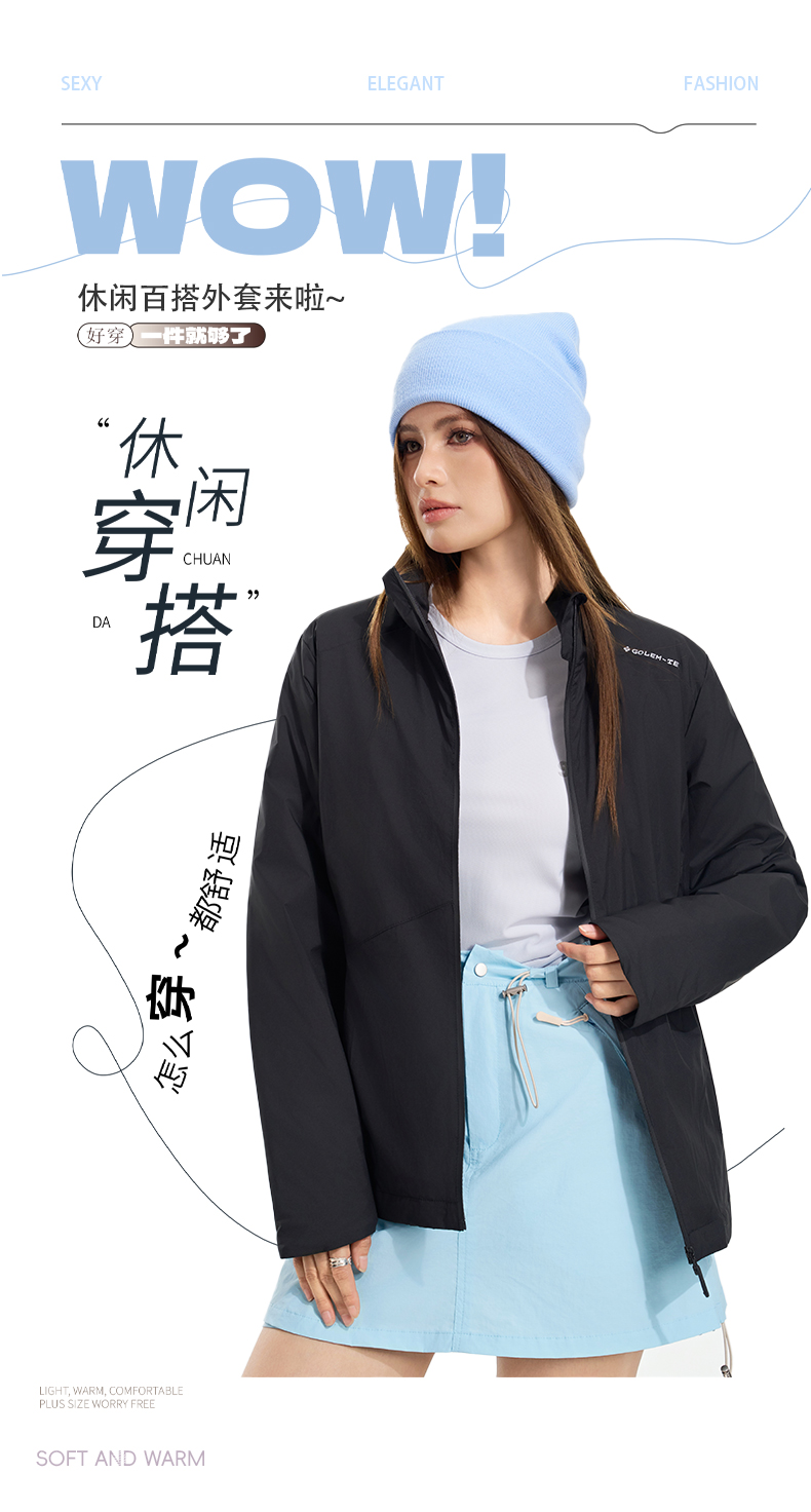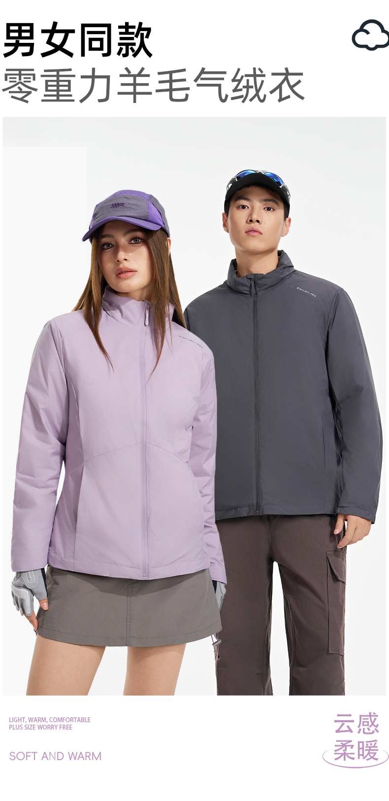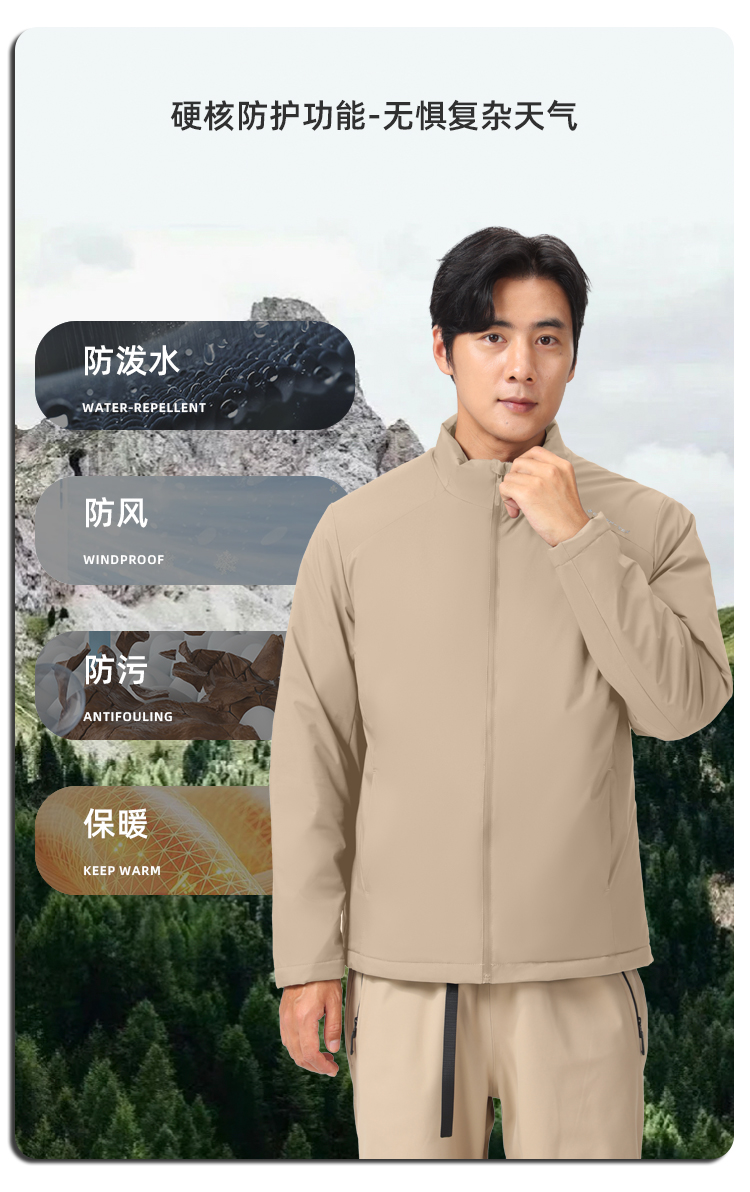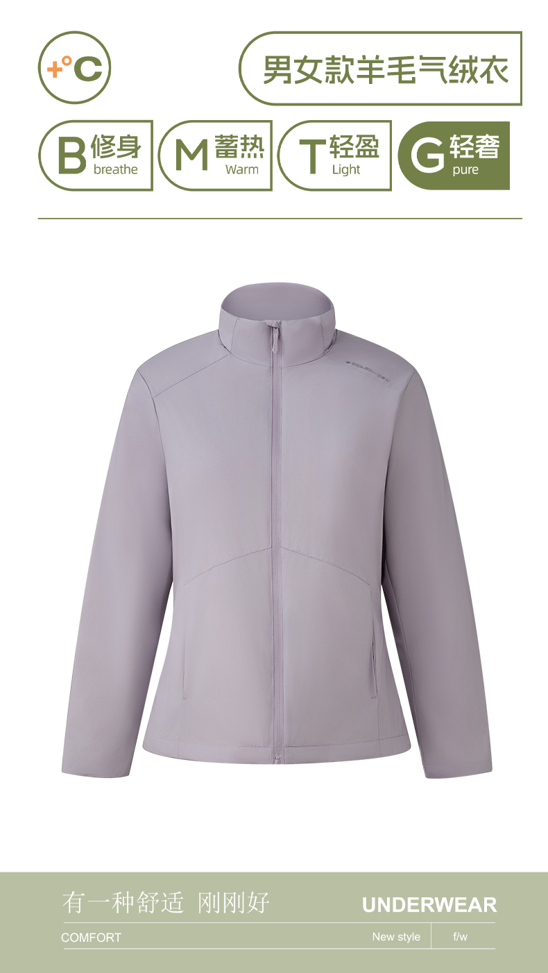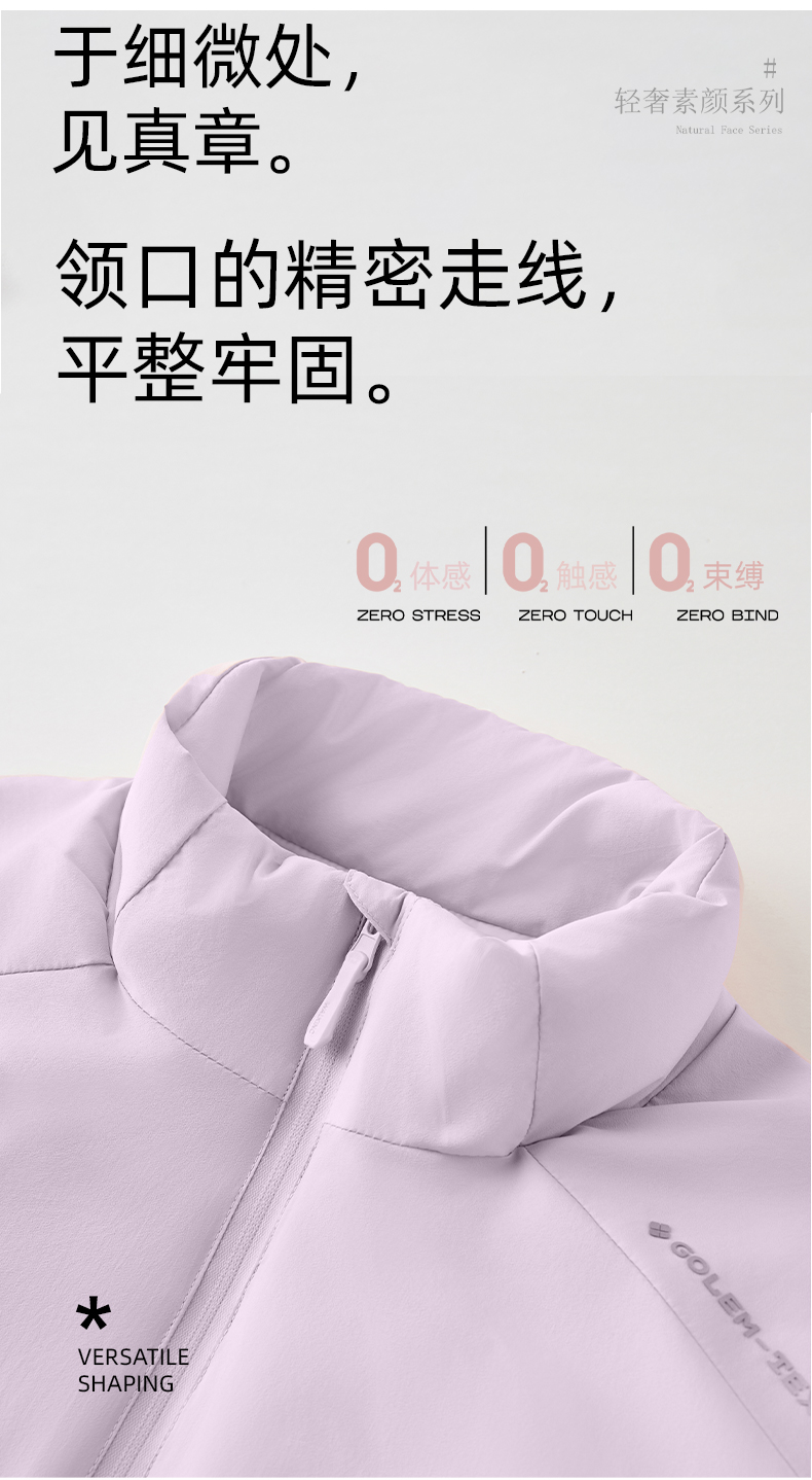 【气绒材料 100%羊毛夹层 防风防泼】“零重力”立领羊毛气绒衣 (简约挺括 防水拉链 特殊压胶技术)